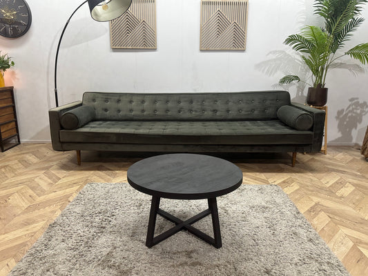 Donker Groene/Antraciet Velvet 3-Zits Bank ~ Losse Kussens Met Afneembare Hoezen