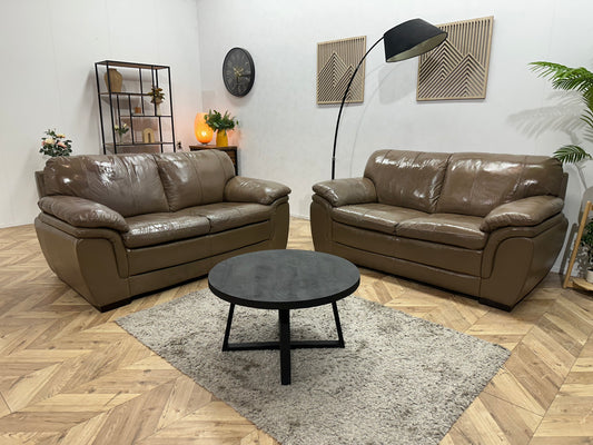 Bruine Echt Lederen Banken Set ~ Vaste Kussens