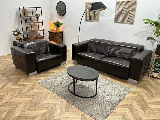 Bruine Echt Lederen 2.5-Zits Bank Inc Fauteuil ~ Geïmpregneerd