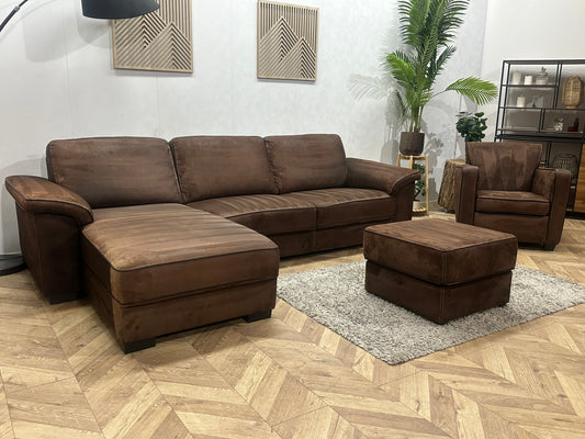 Bruine Suède Stoffen Banken Set Inc Hocker ~ Vaste Kussens