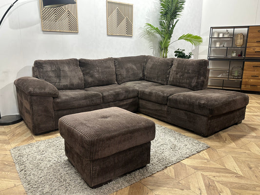 Bruine Ribstof Hoekbank Inc Hocker ~ Vaste Kussens