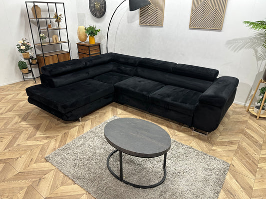 Zwarte Velvet Hoekbank ~ Slaapfunctie ~ Verstelbare Hoofdsteunen