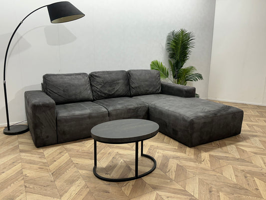 Antraciet Suède Stoffen Hoekbank ~ Losse Rugkussens Met Afneembare Hoezen
