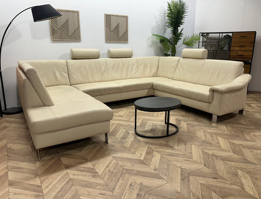 Crème Echt Lederen Ruime U Bank ~ Vaste Kussens