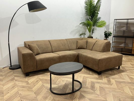 Bruine Suède Lederen Hoekbank ~ Vaste Kussens