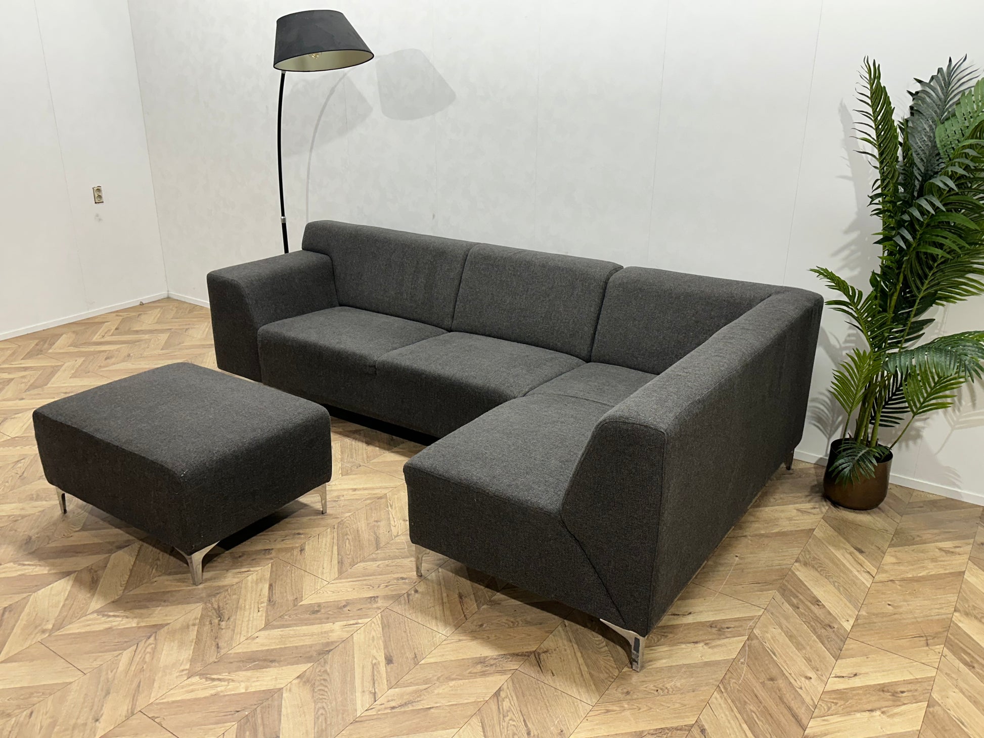 Antraciet Hoekbank Inc Hocker ~ Vaste Kussens