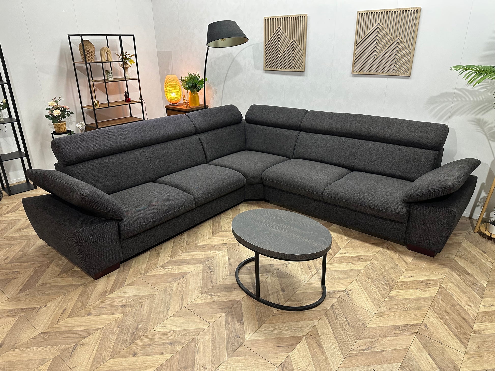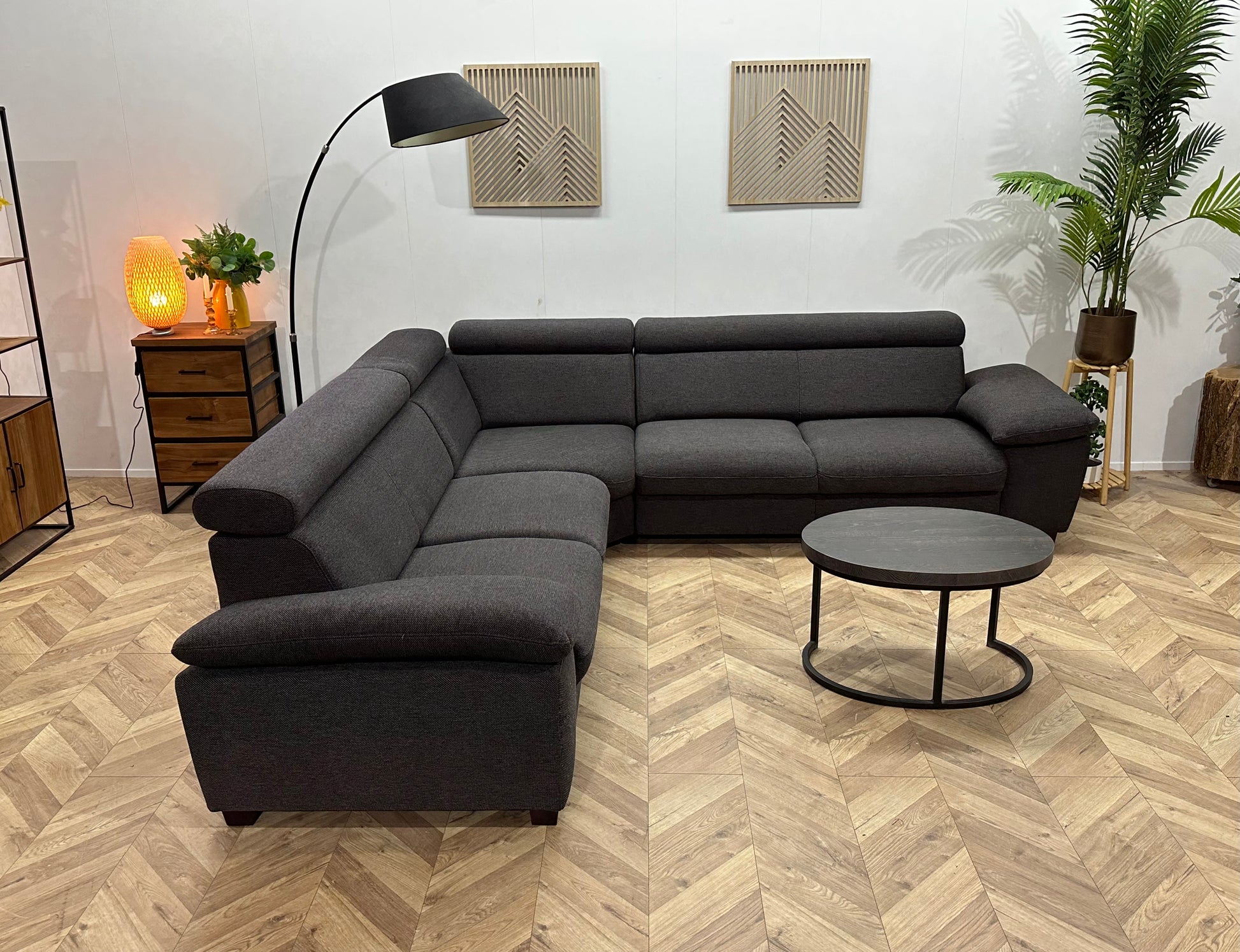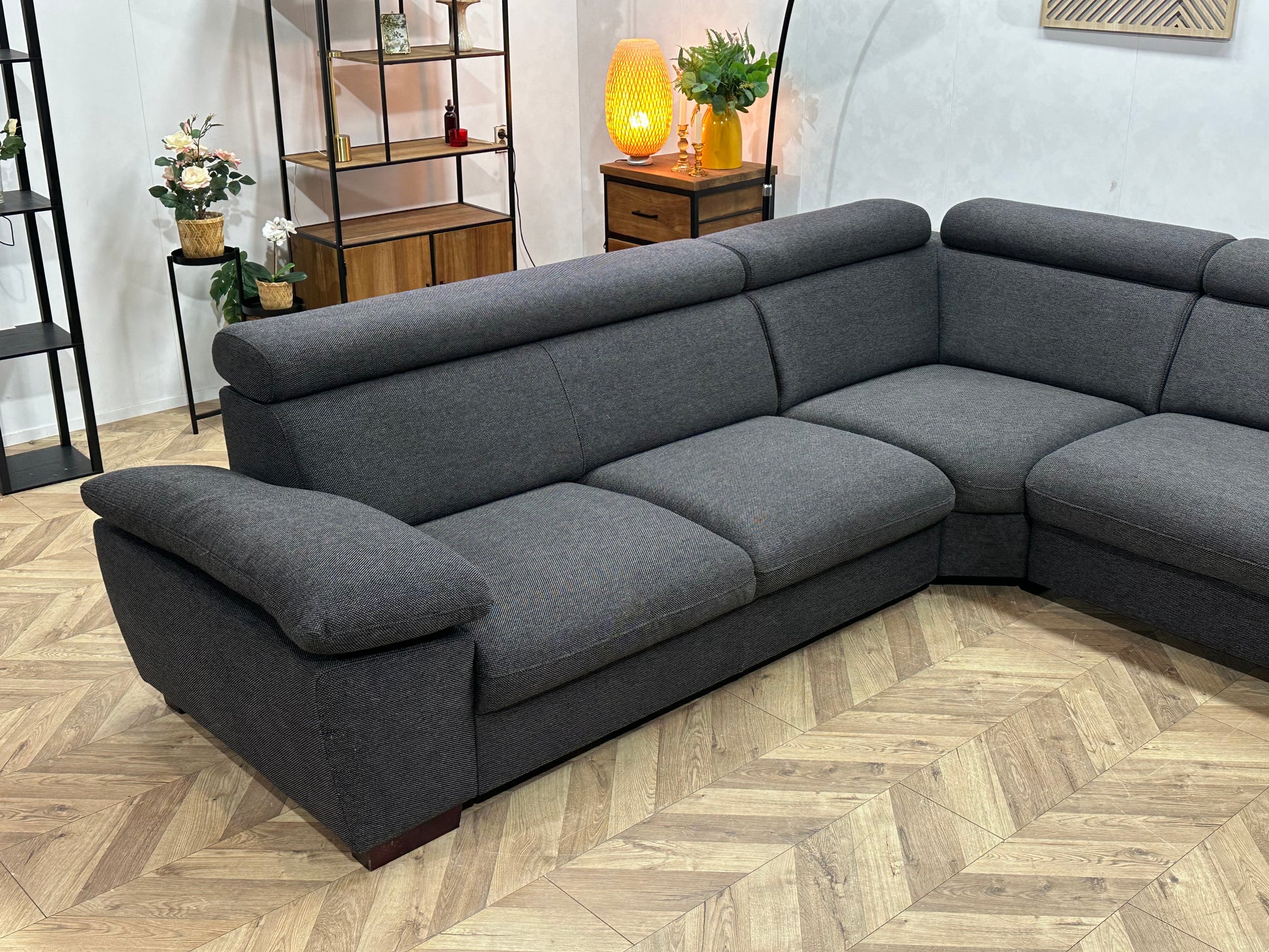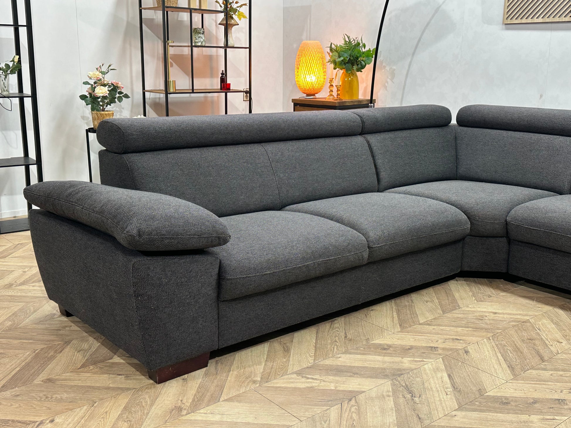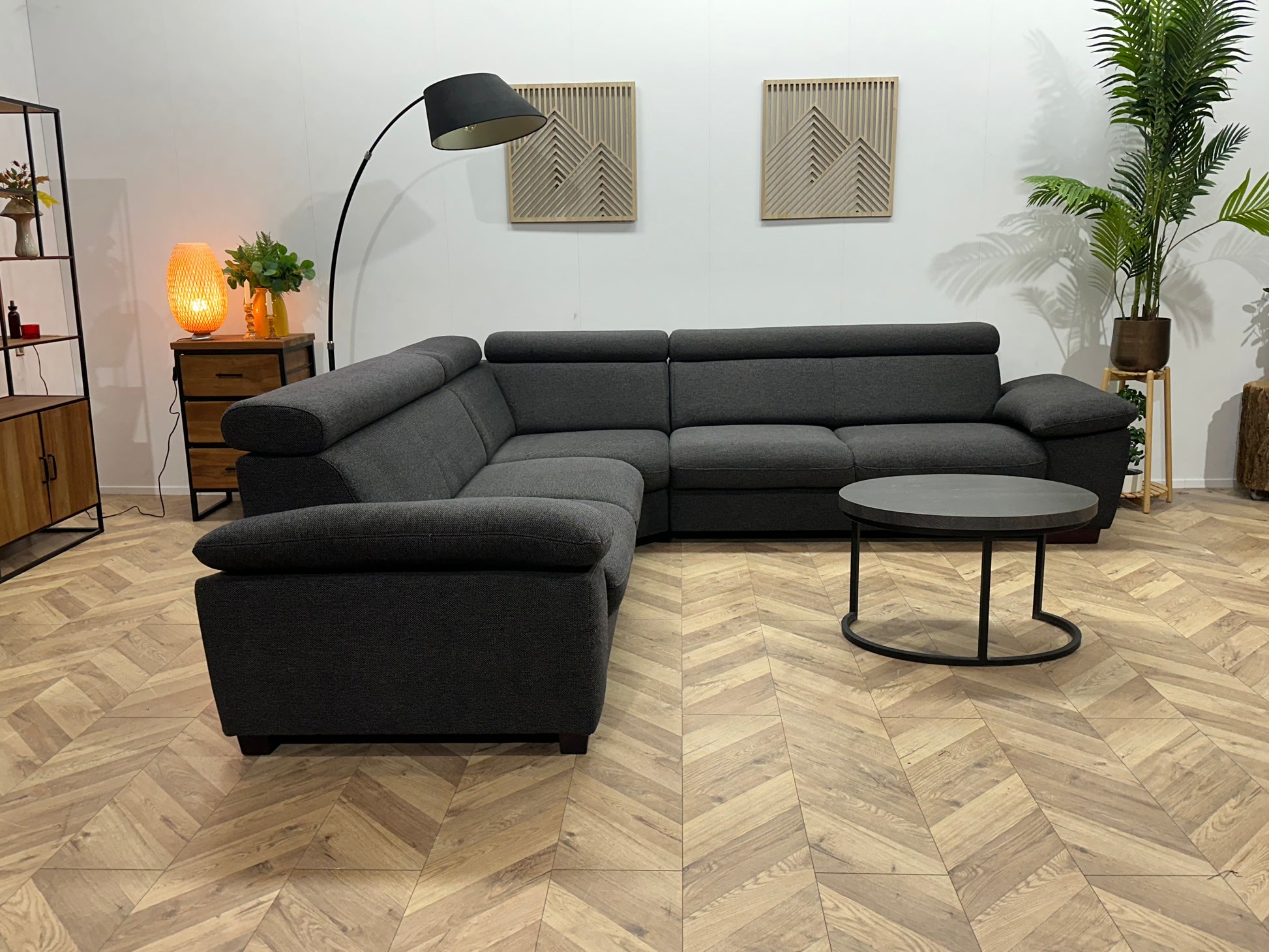 Antraciet Hoekbank ~ Verstelbare Arm/Hoofdsteunen