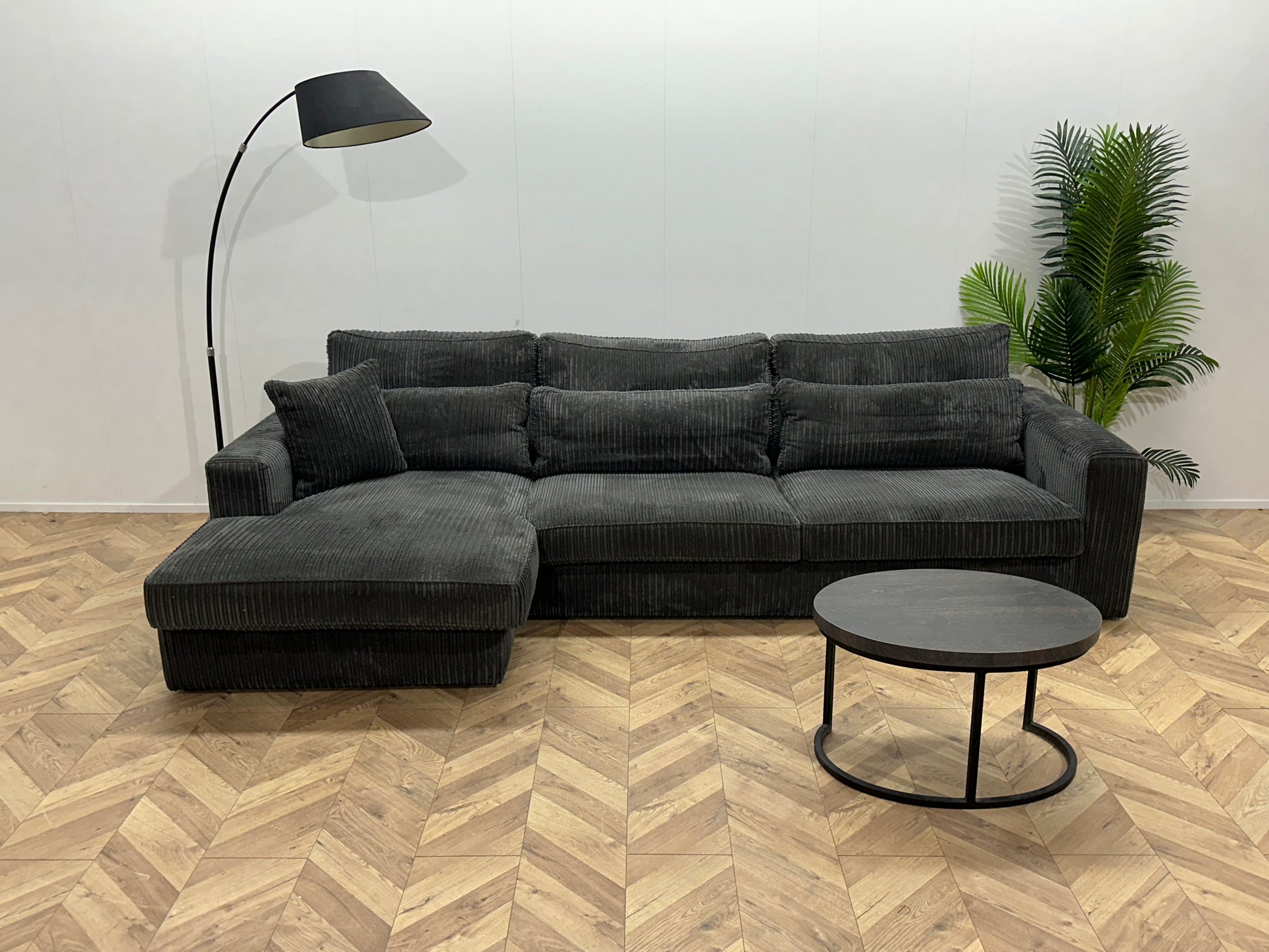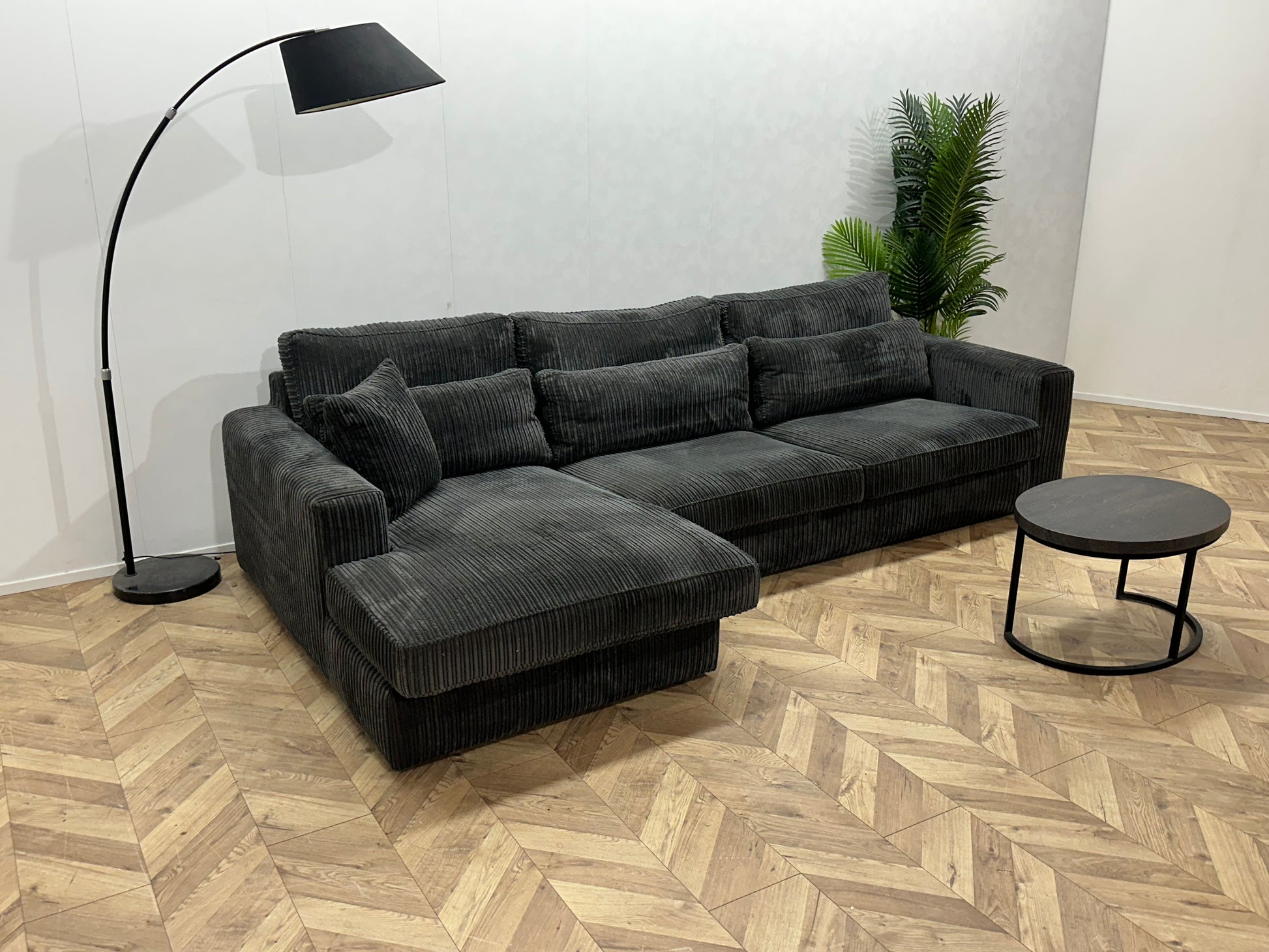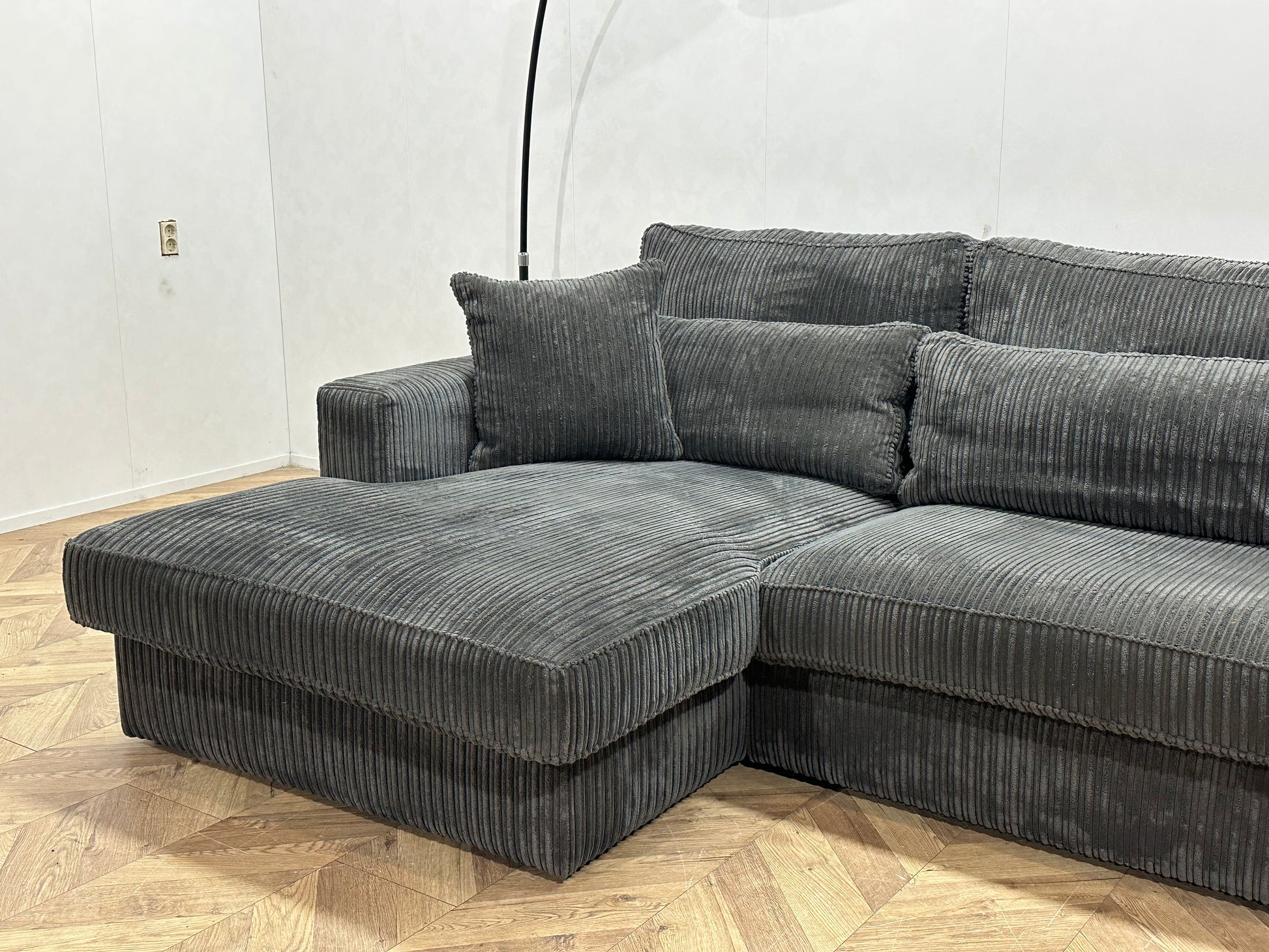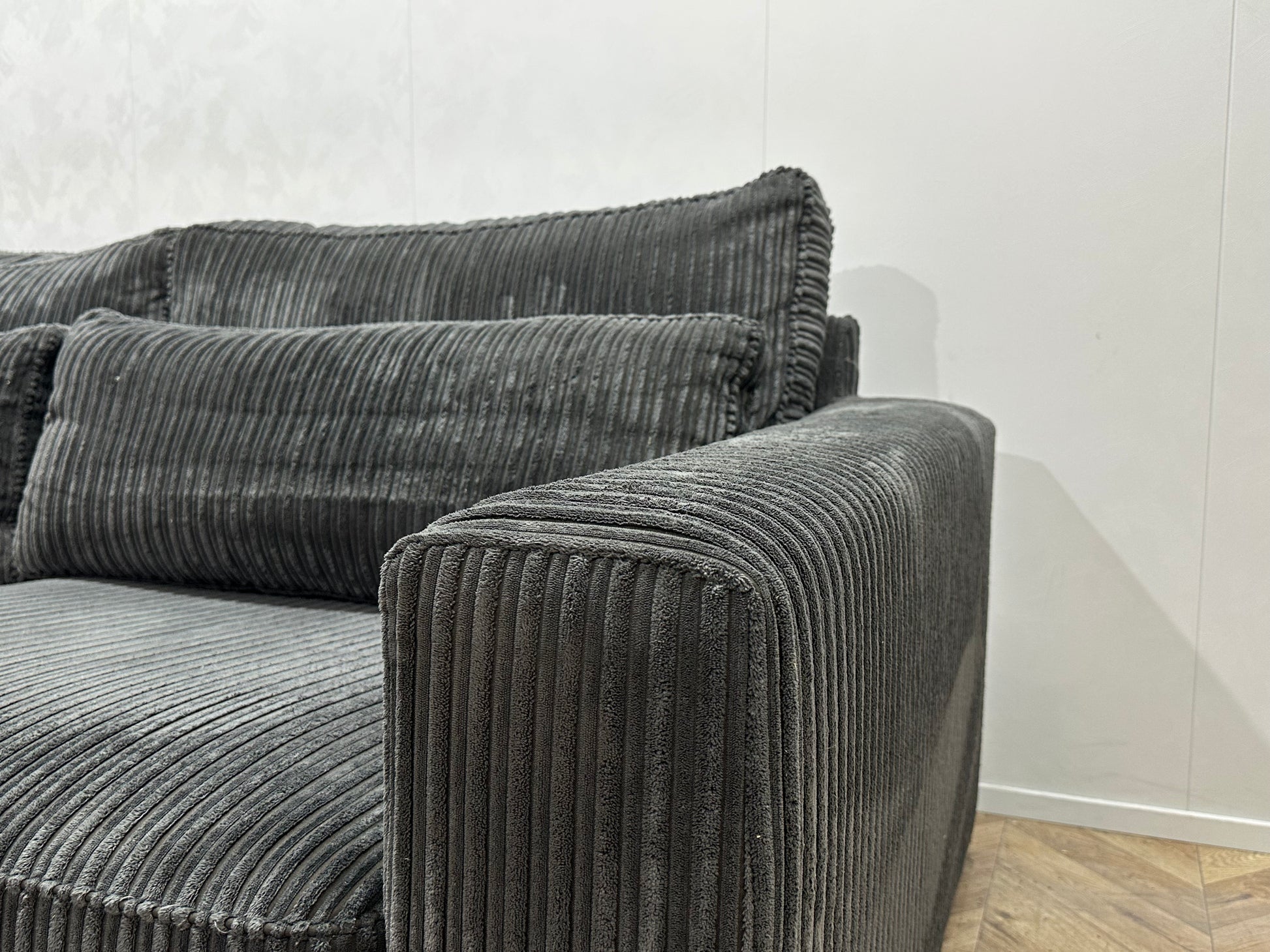 Antraciet Ribstof Hoekbank ~ Losse Kussens Met Afneembare Hoezen