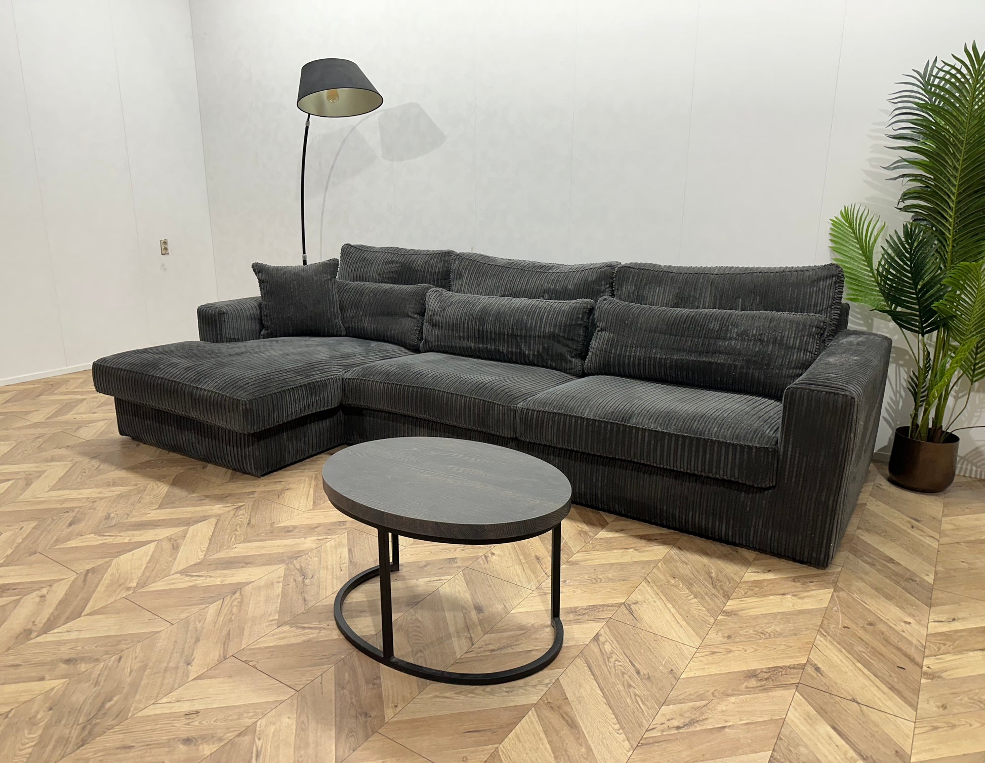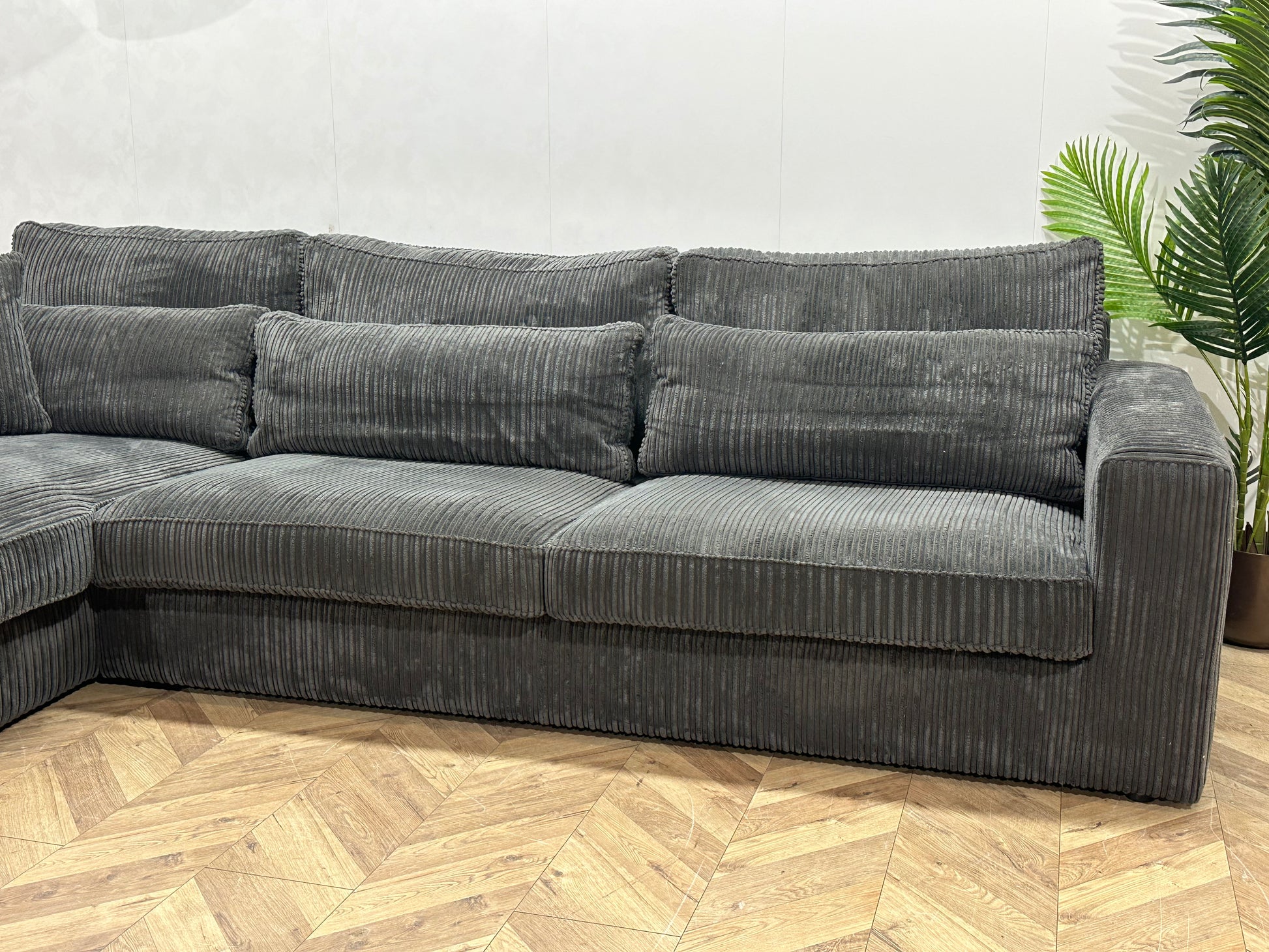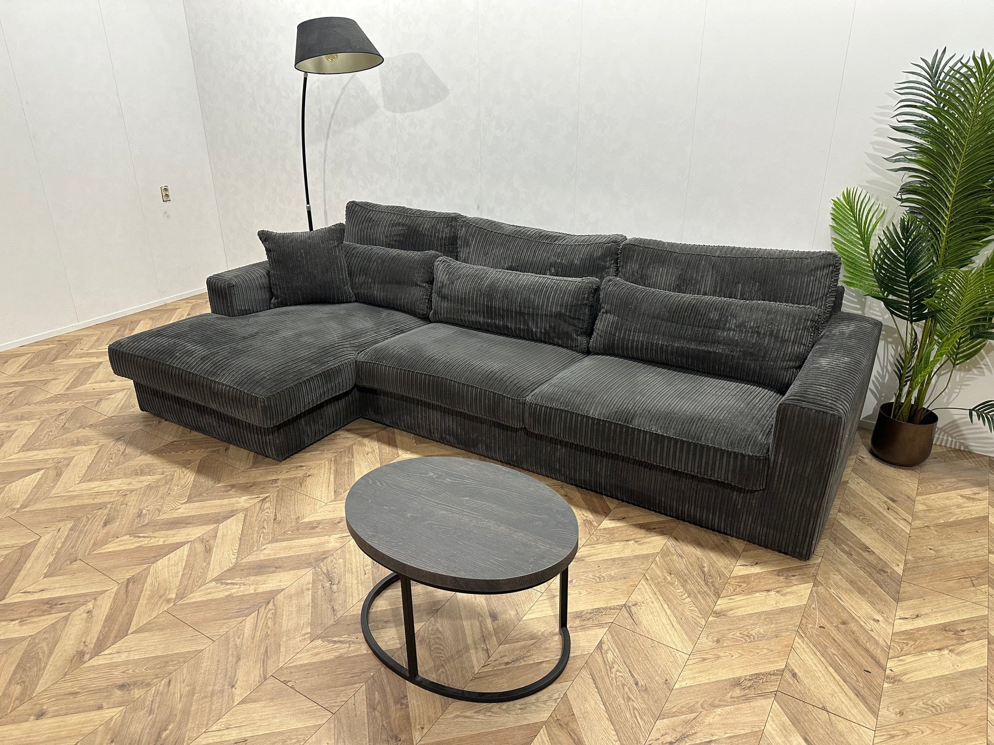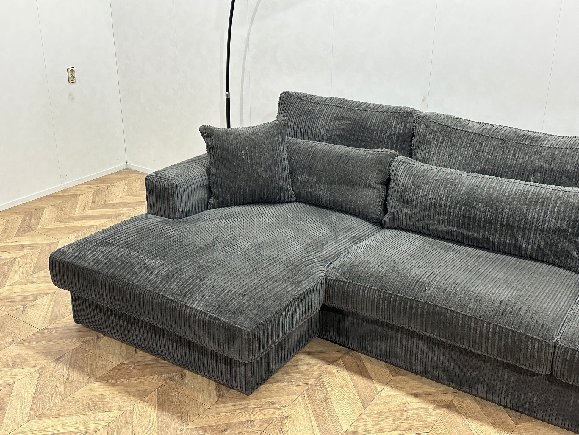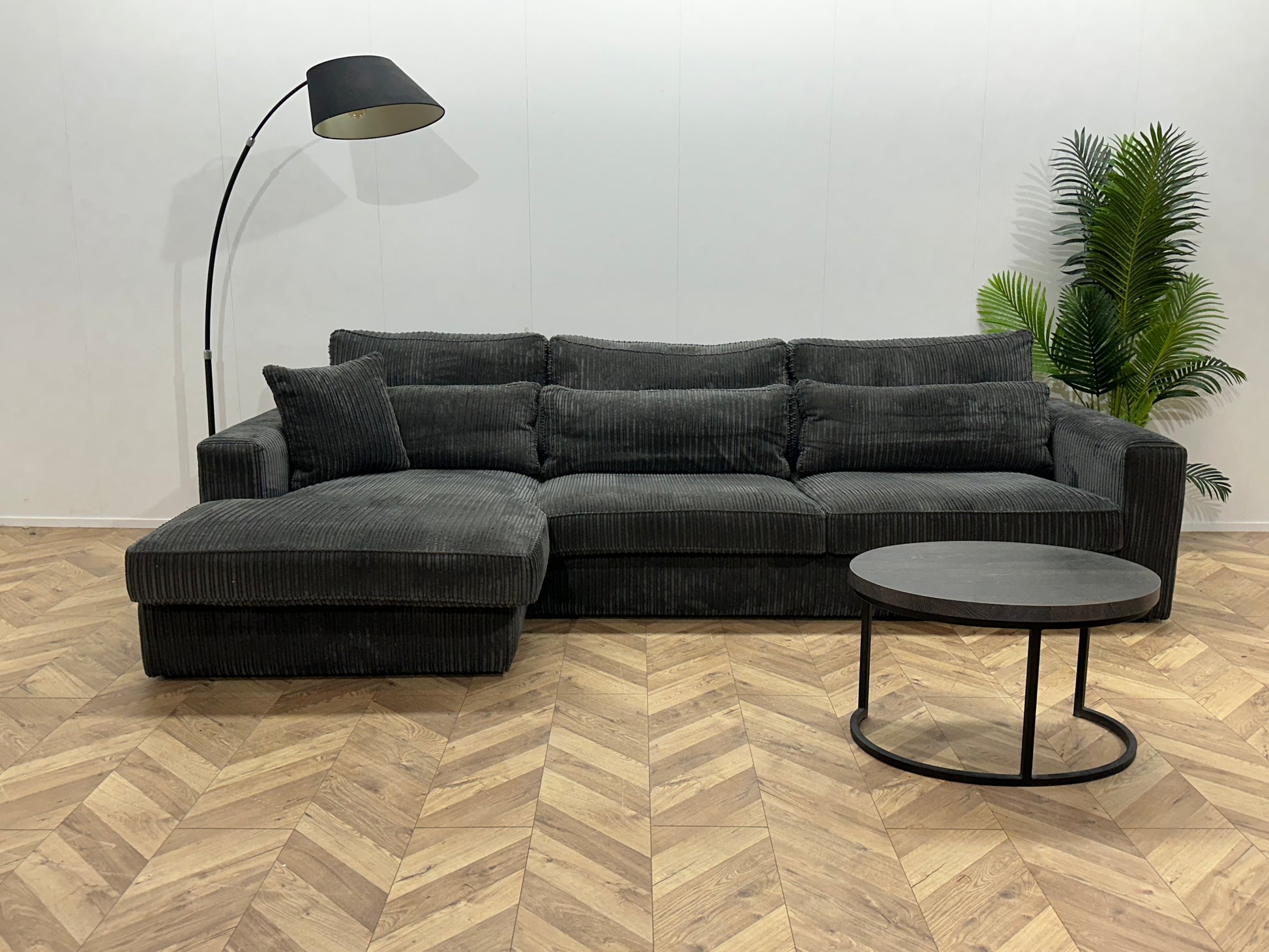 Antraciet Ribstof Hoekbank ~ Losse Kussens Met Afneembare Hoezen