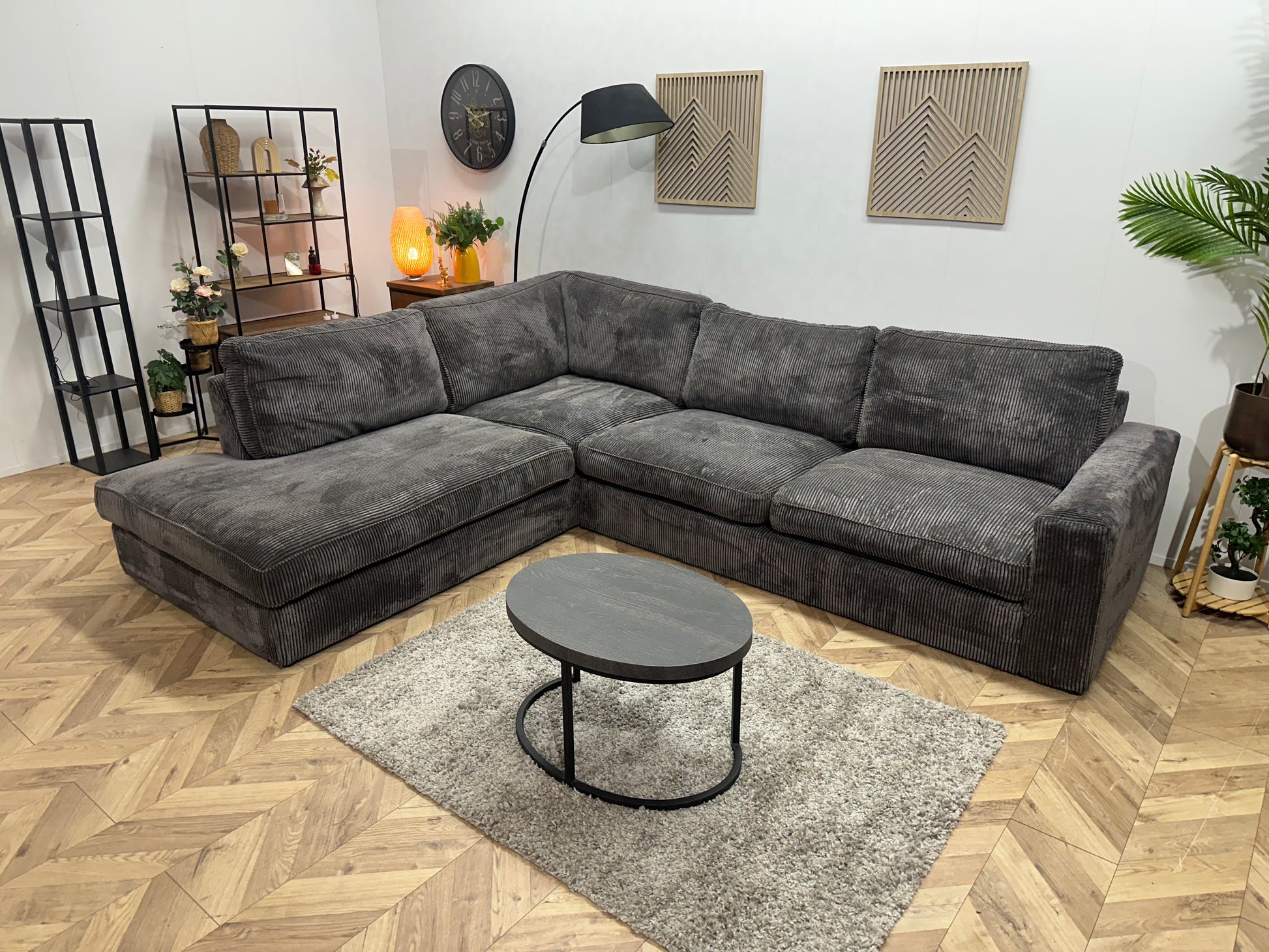 Antraciet Ribstof Hoekbank ~ Losse Kussens Met Afneembare Hoezen