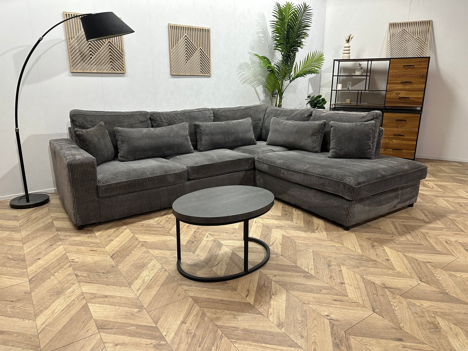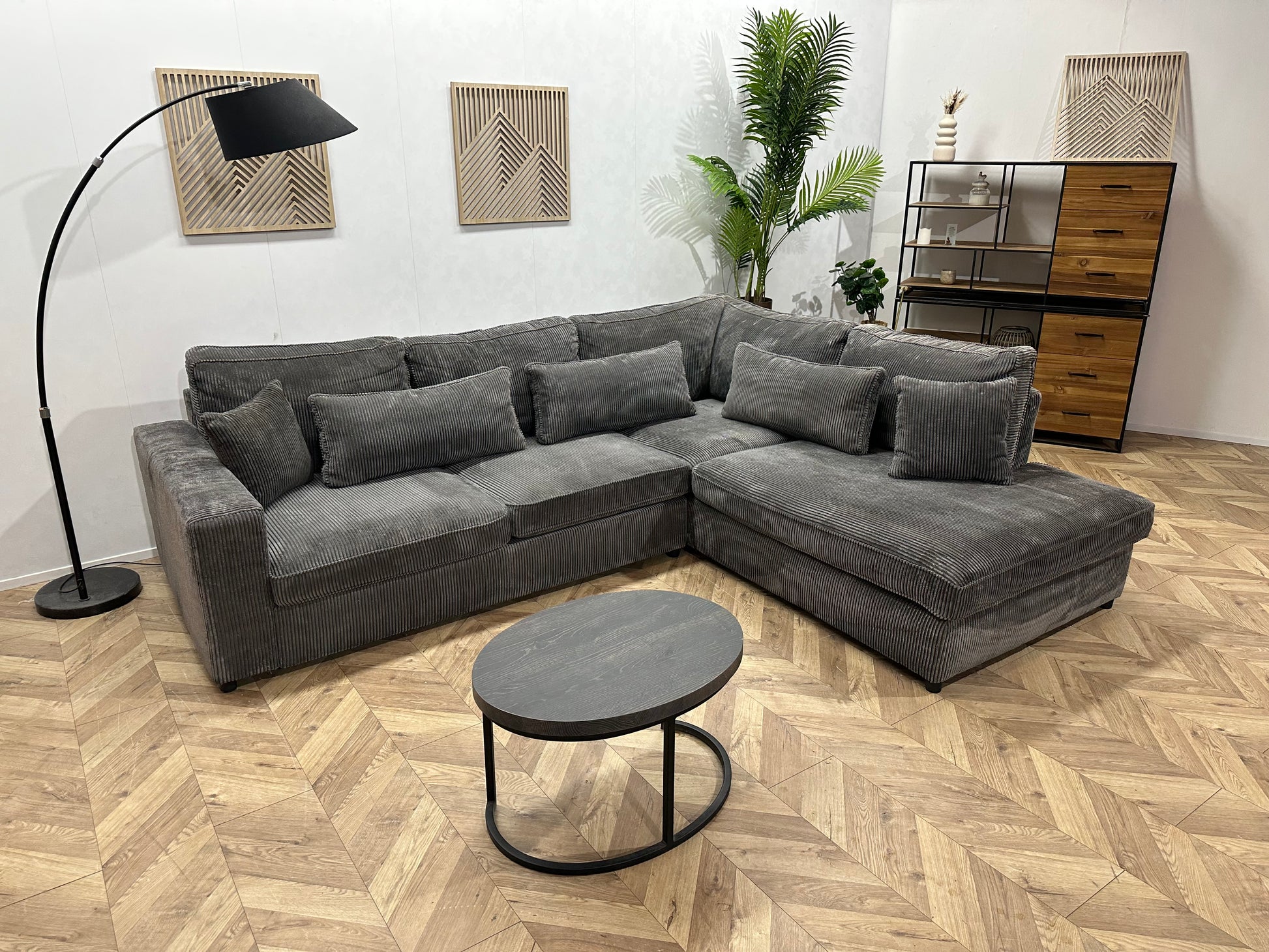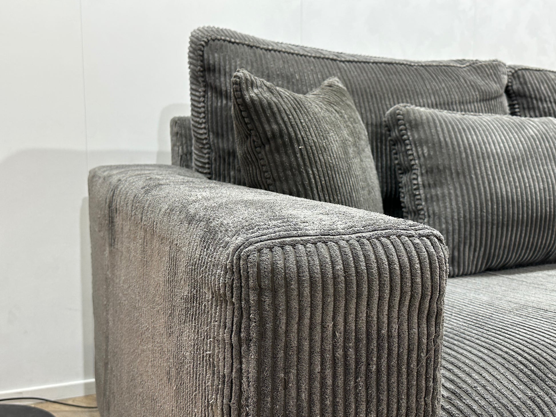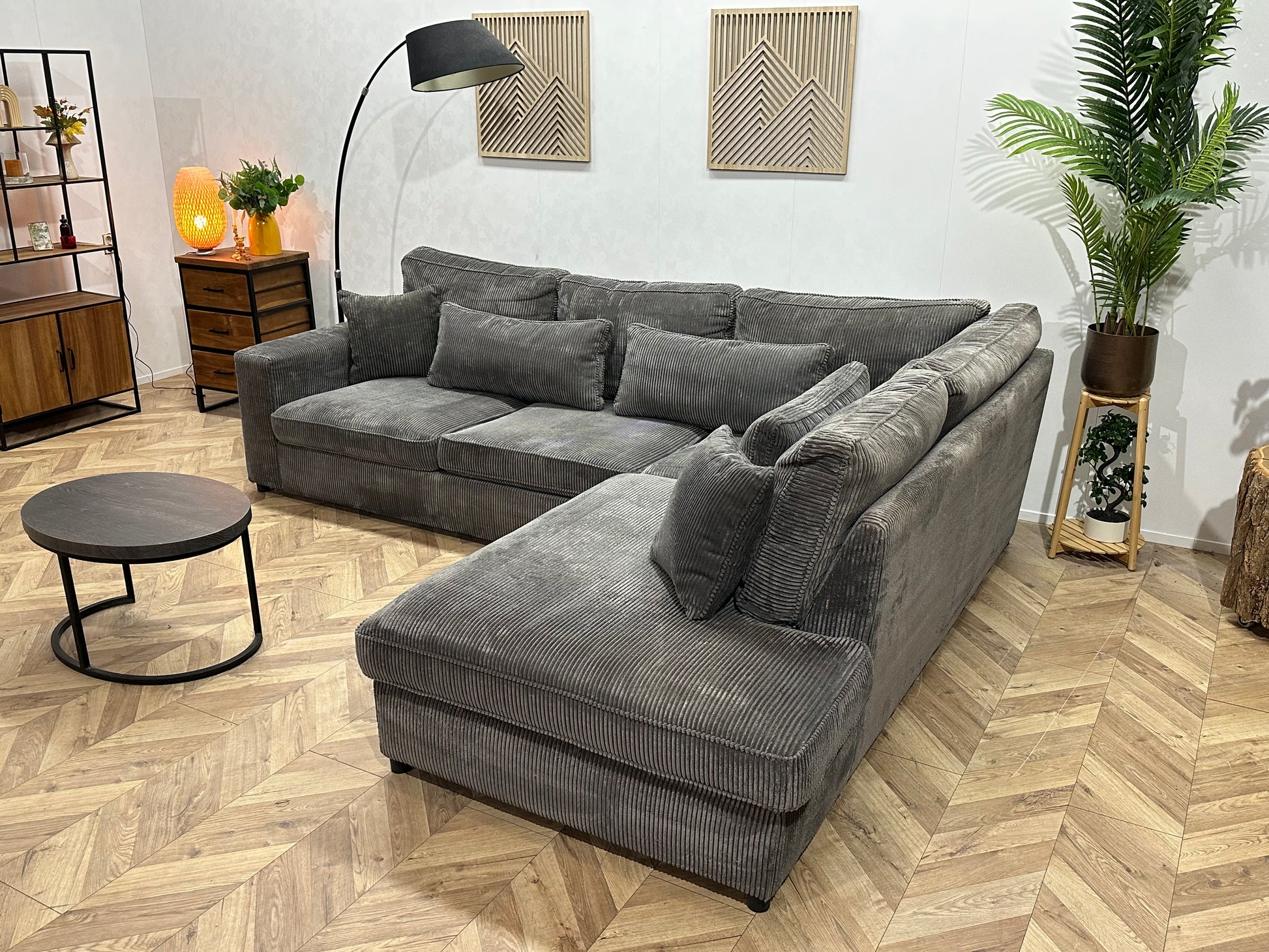 Antraciet Ribstof Hoekbank ~ Losse Kussens Met Afneembare Hoezen ~ Slaapfunctie