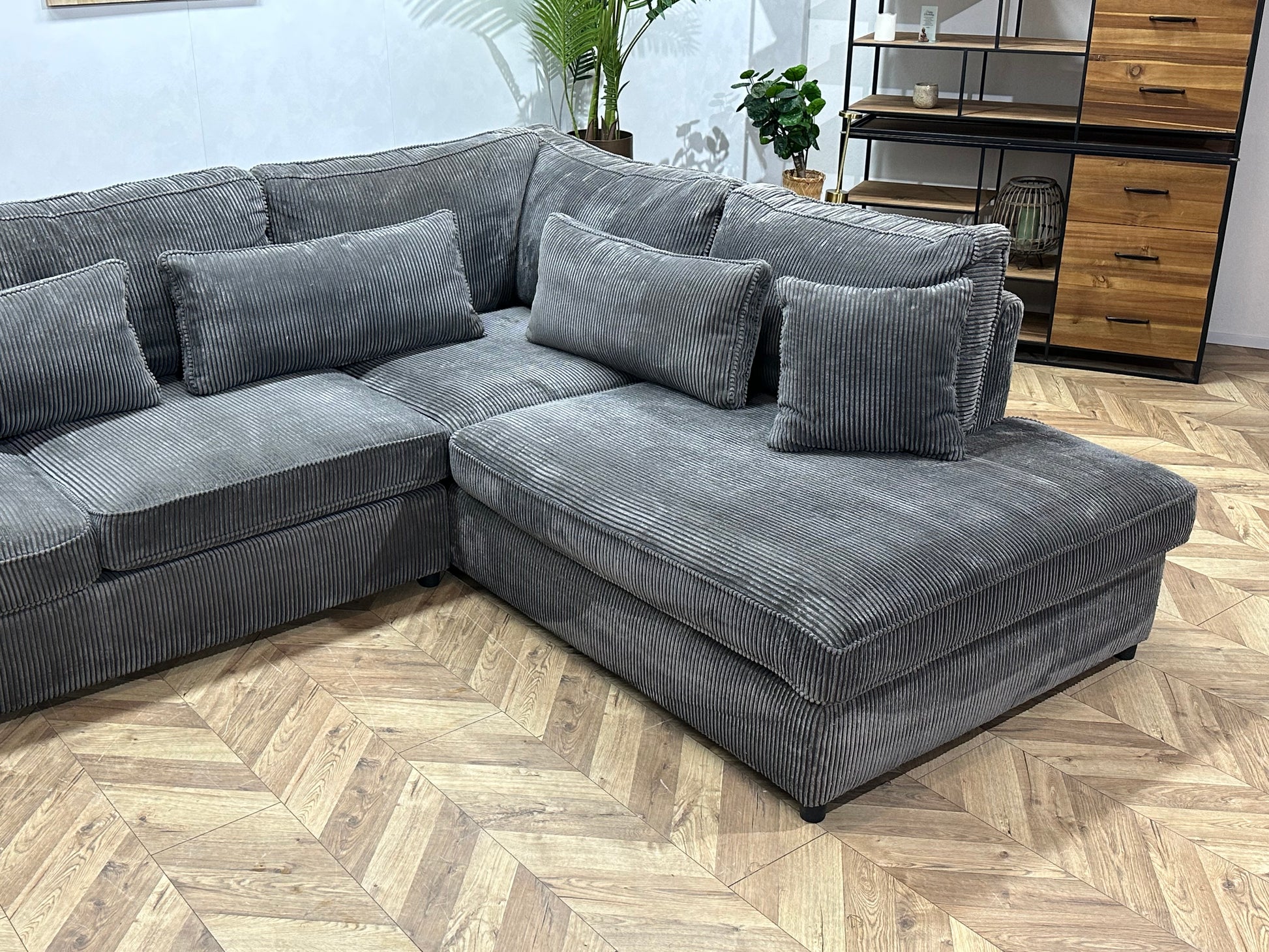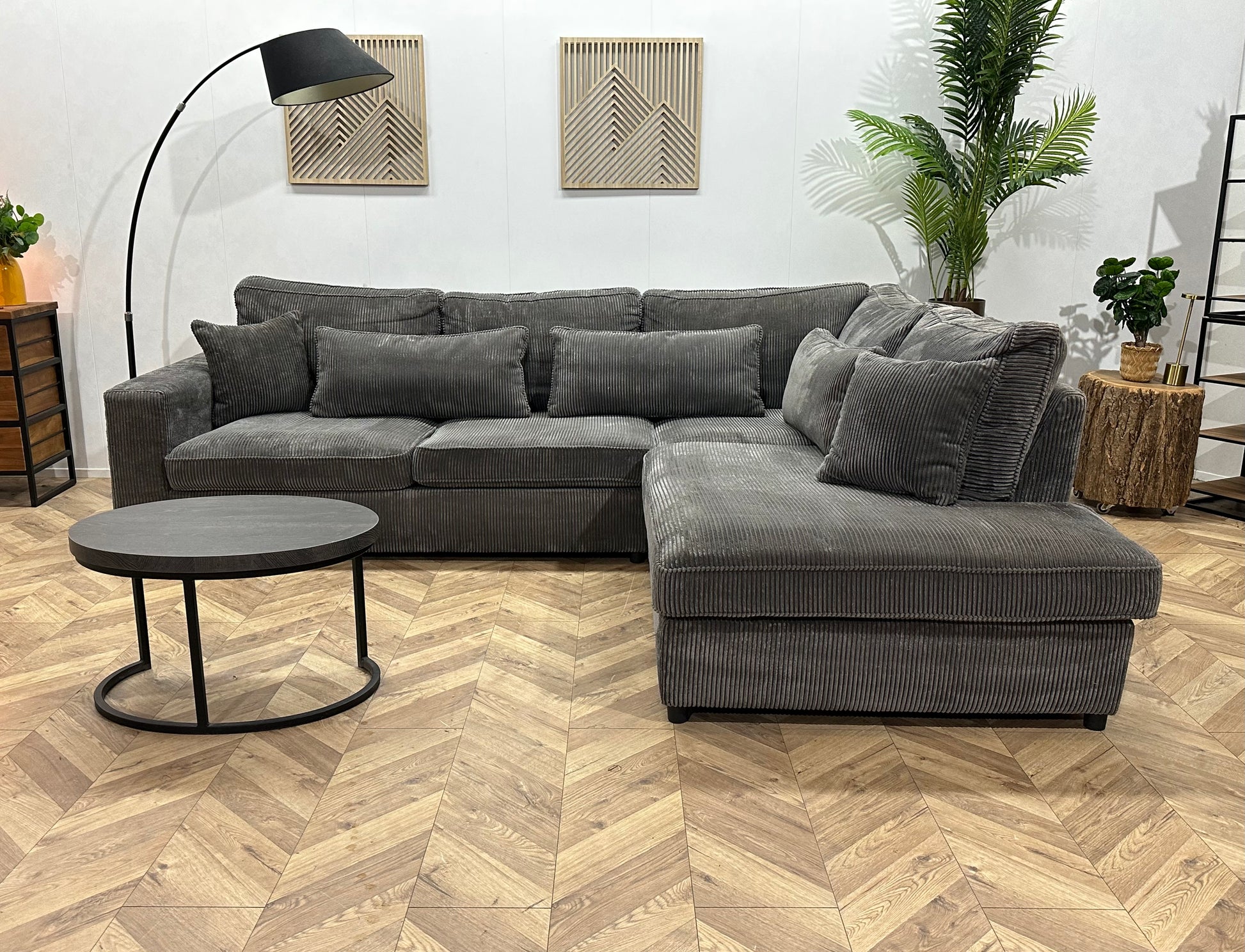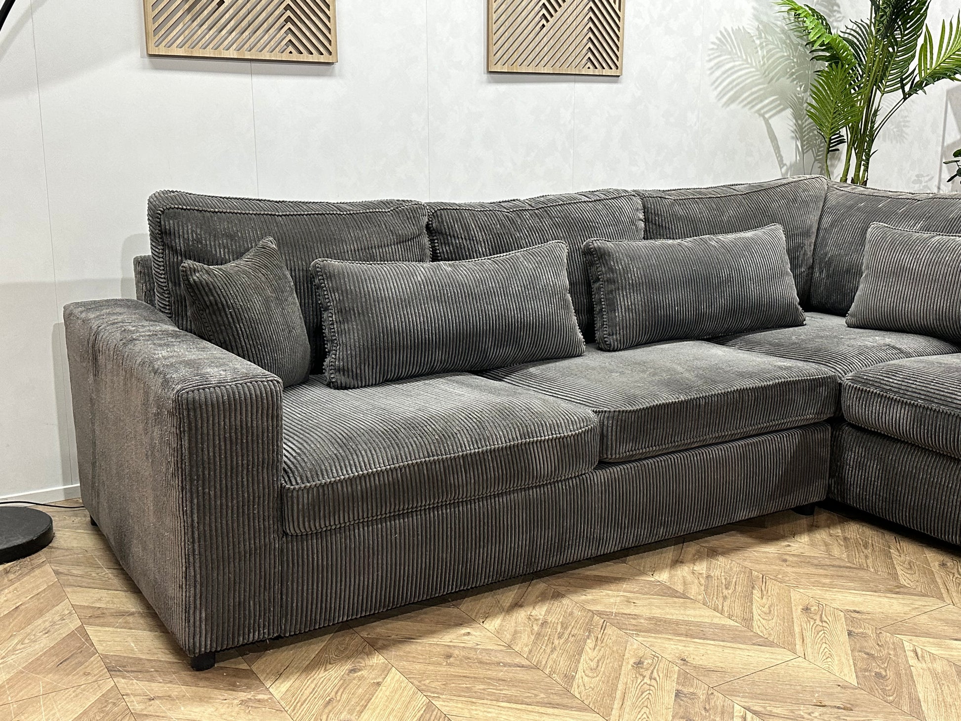 Antraciet Ribstof Hoekbank ~ Losse Kussens Met Afneembare Hoezen ~ Slaapfunctie
