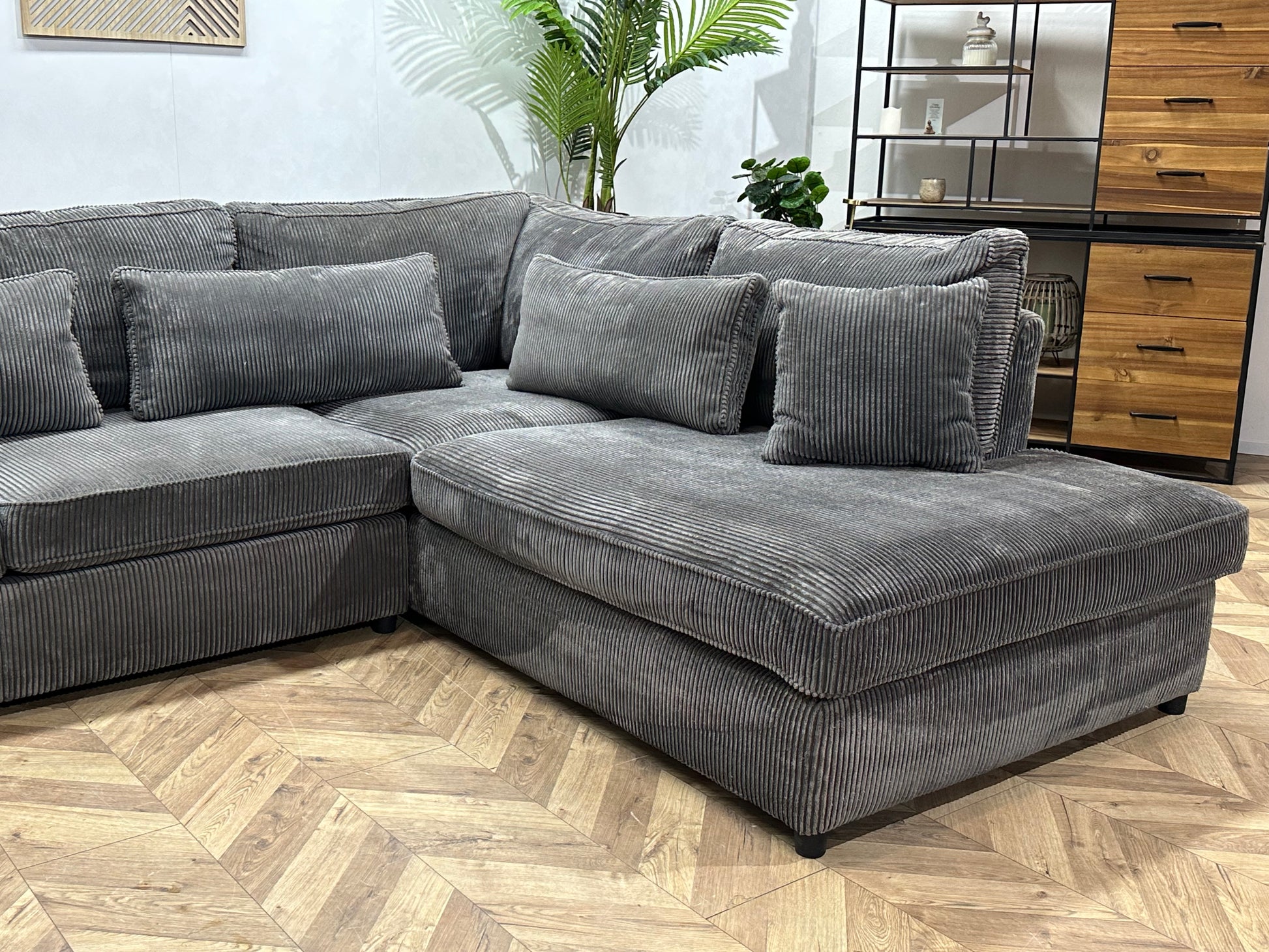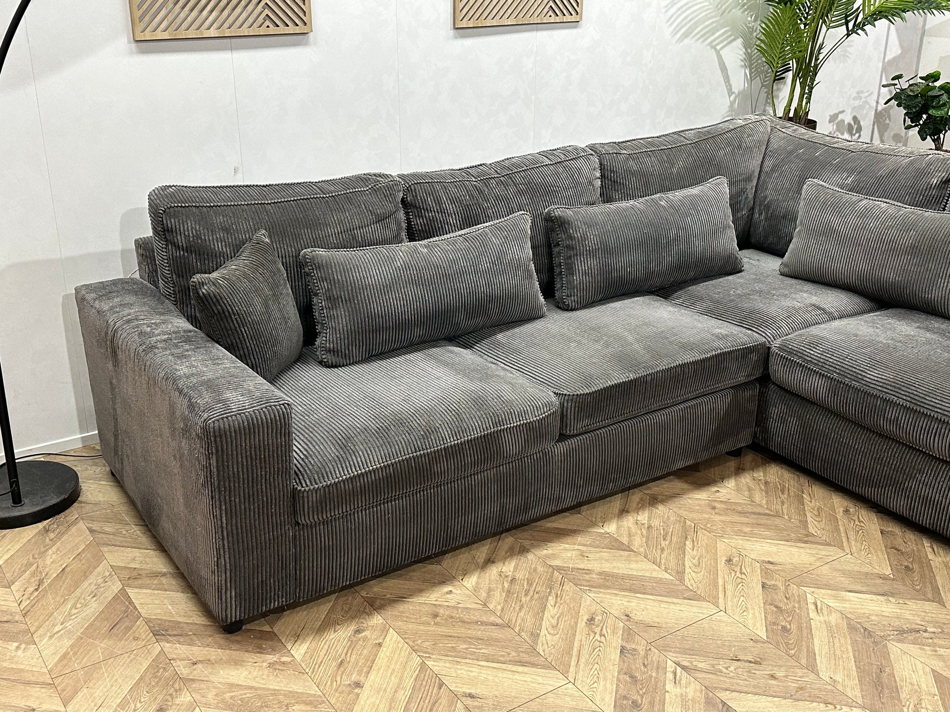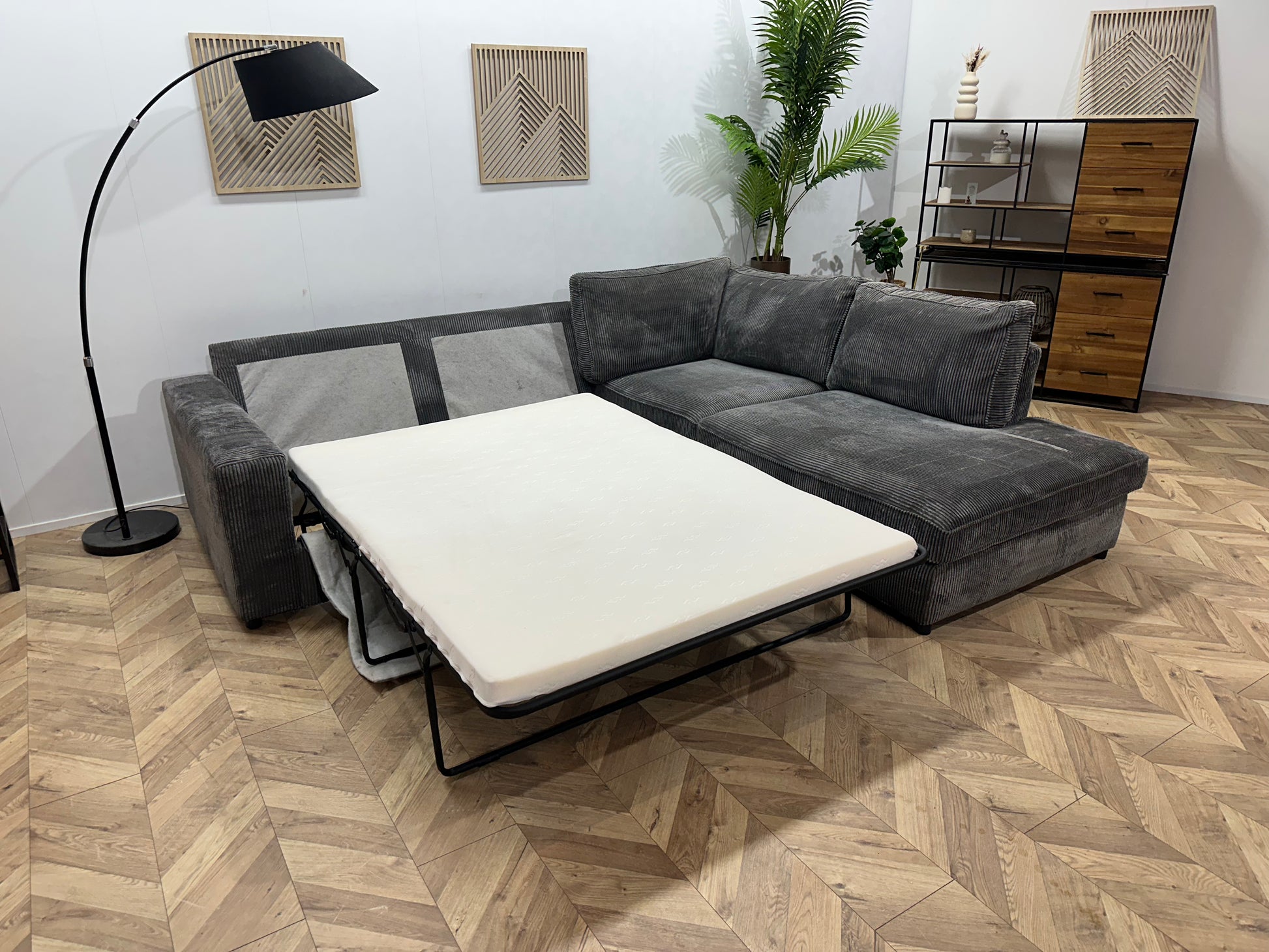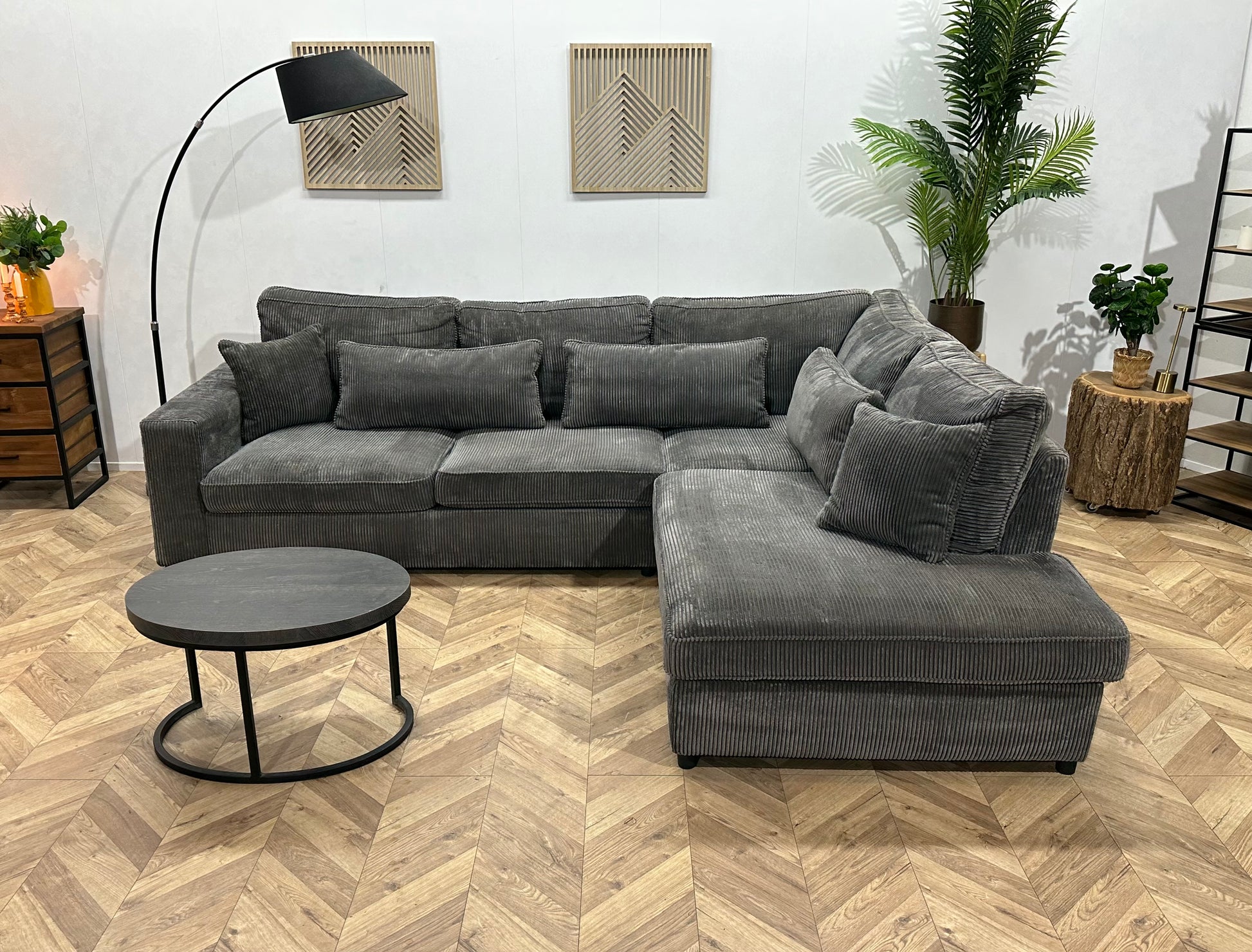 Antraciet Ribstof Hoekbank ~ Losse Kussens Met Afneembare Hoezen ~ Slaapfunctie