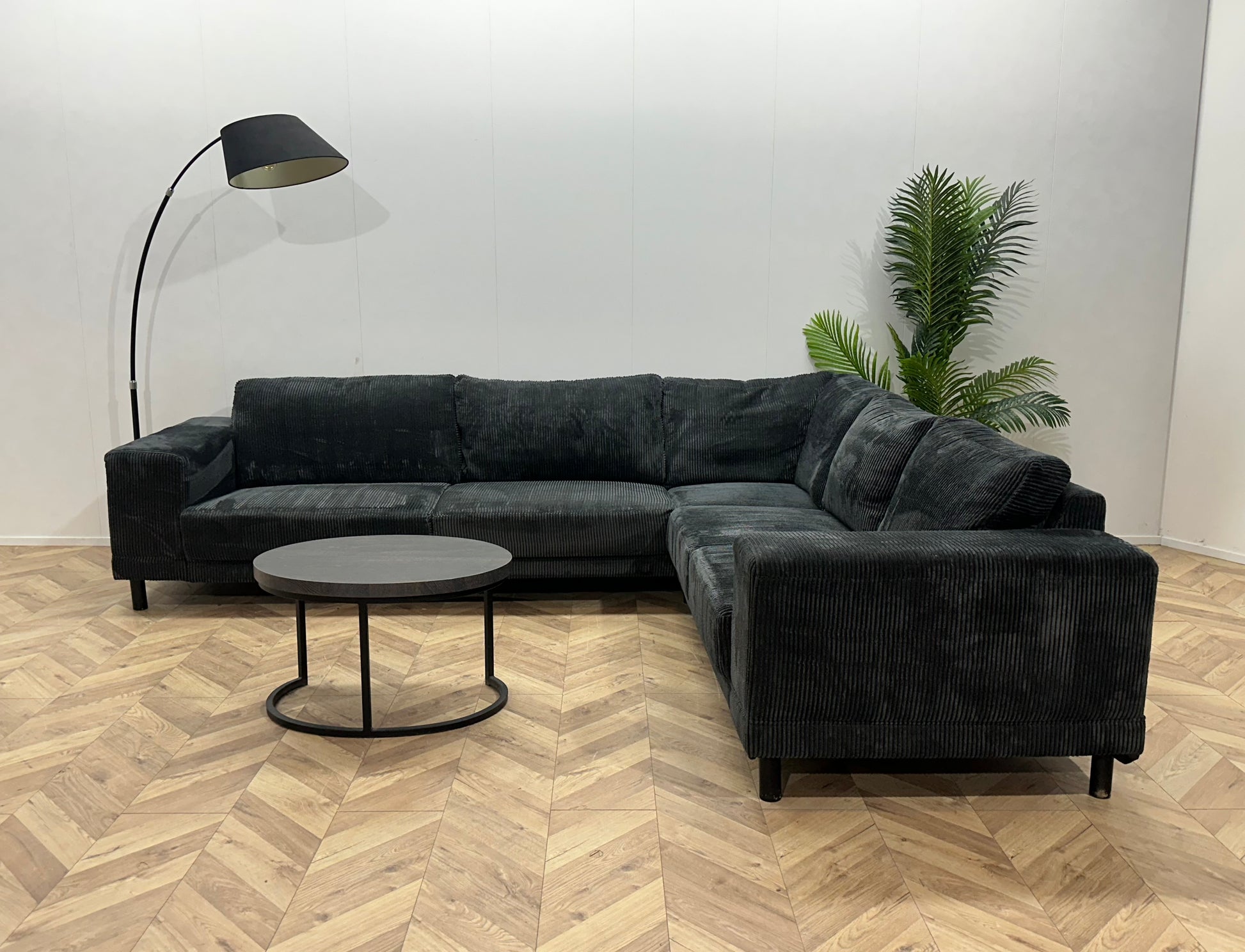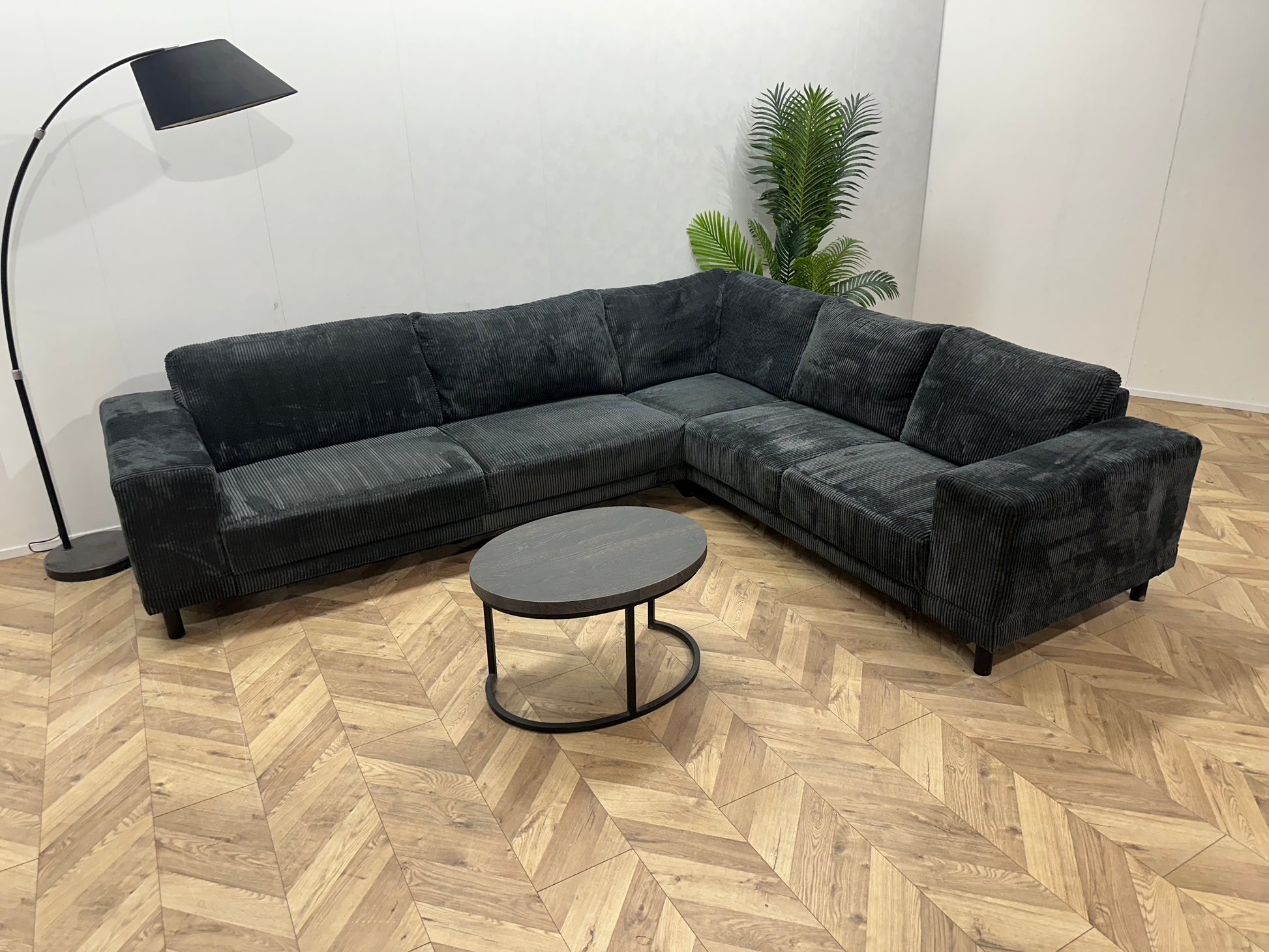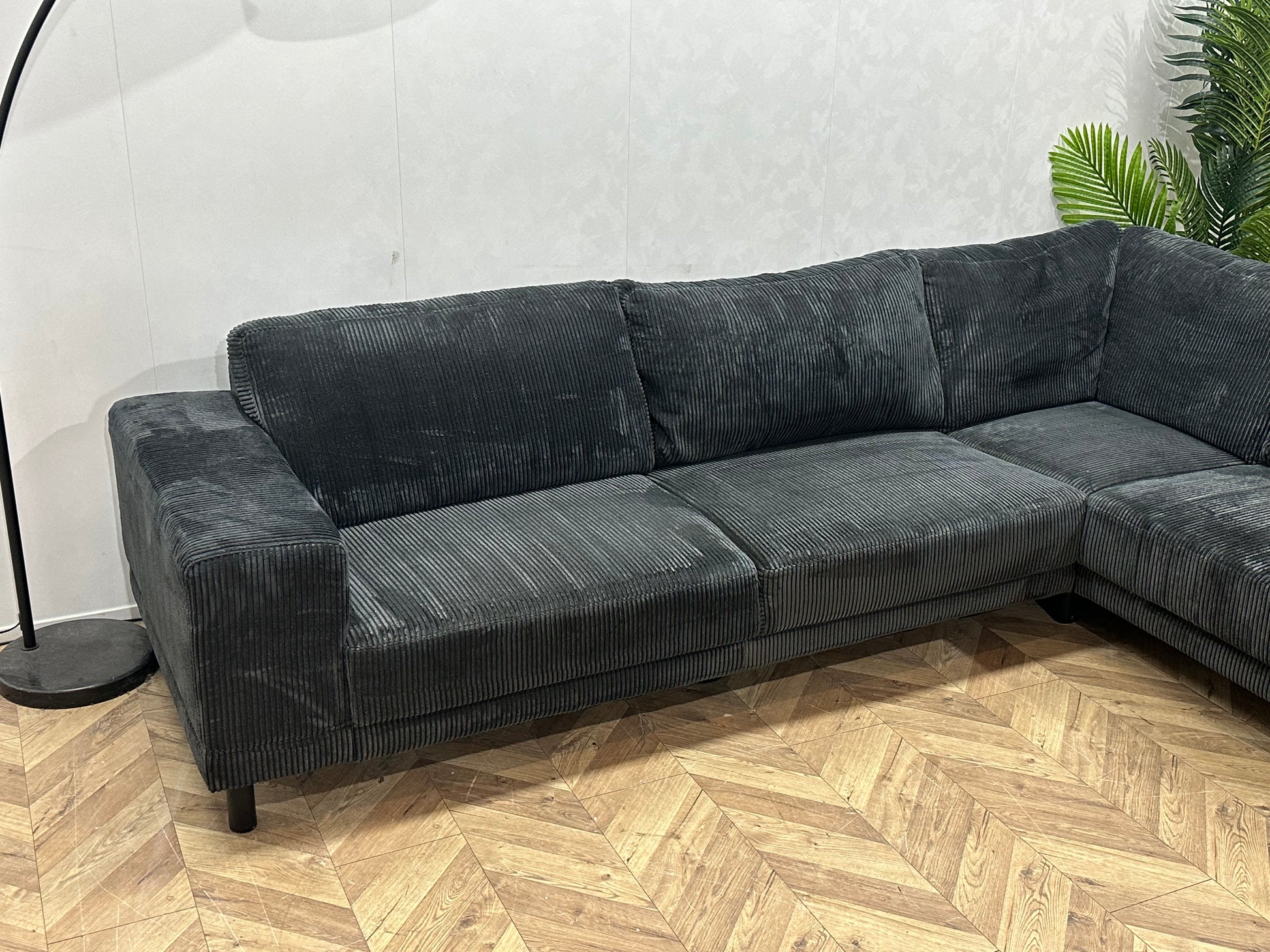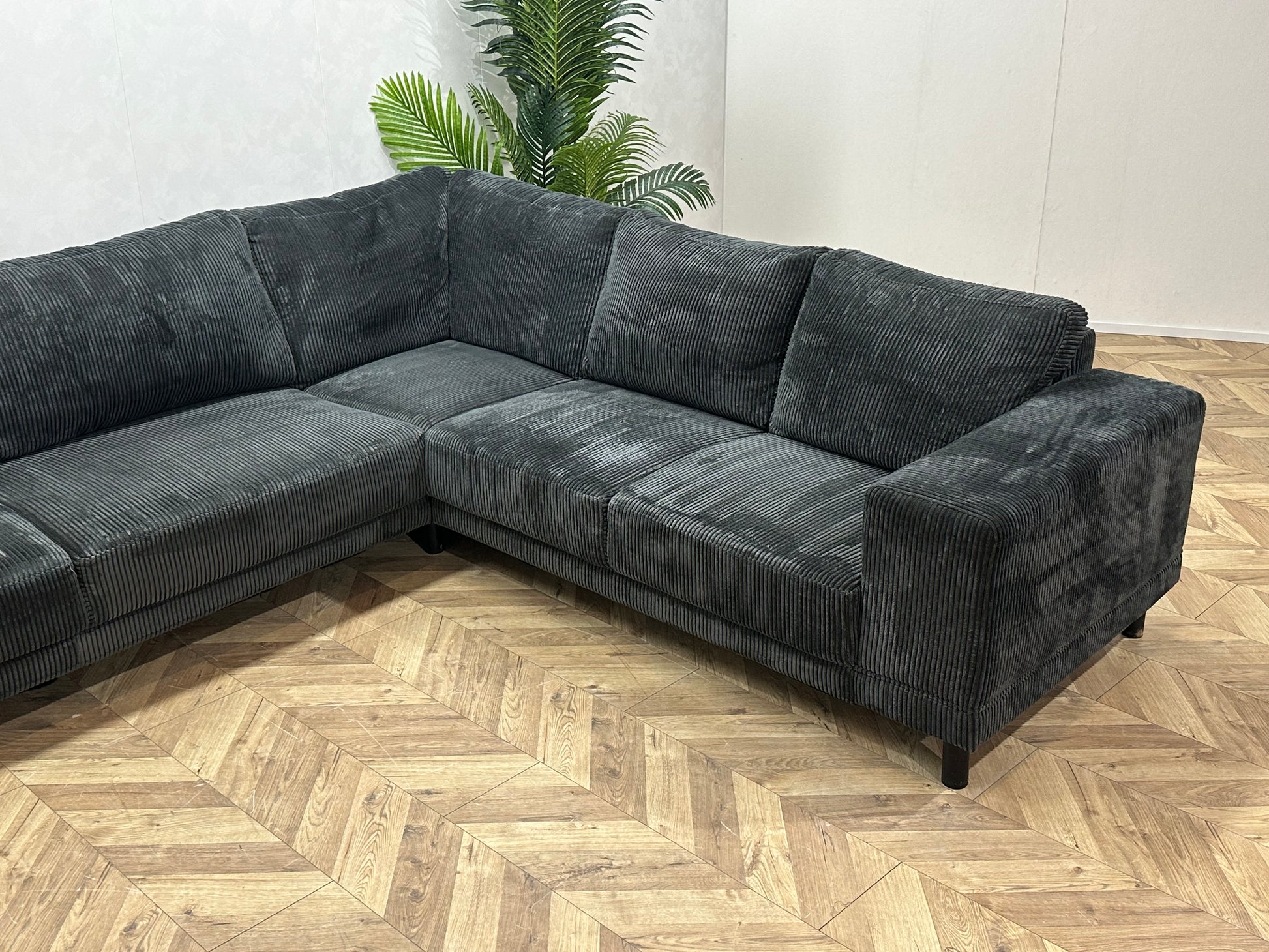 Antraciet Ribstof Hoekbank ~ Vaste Kussens