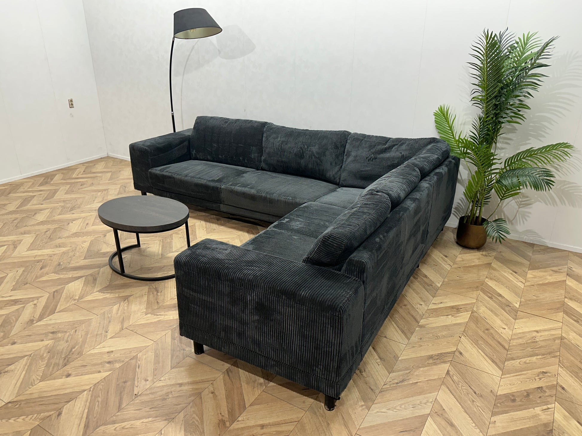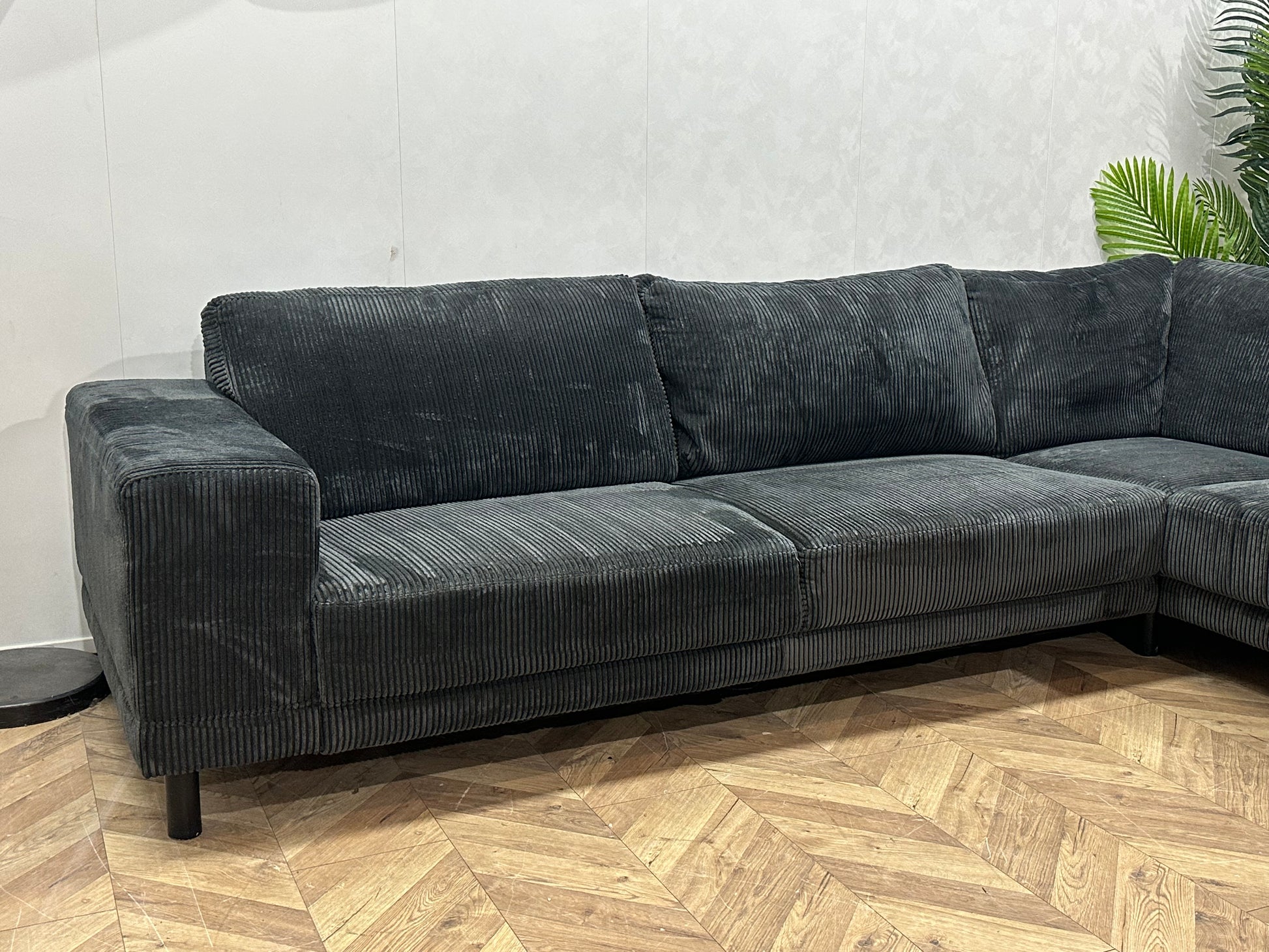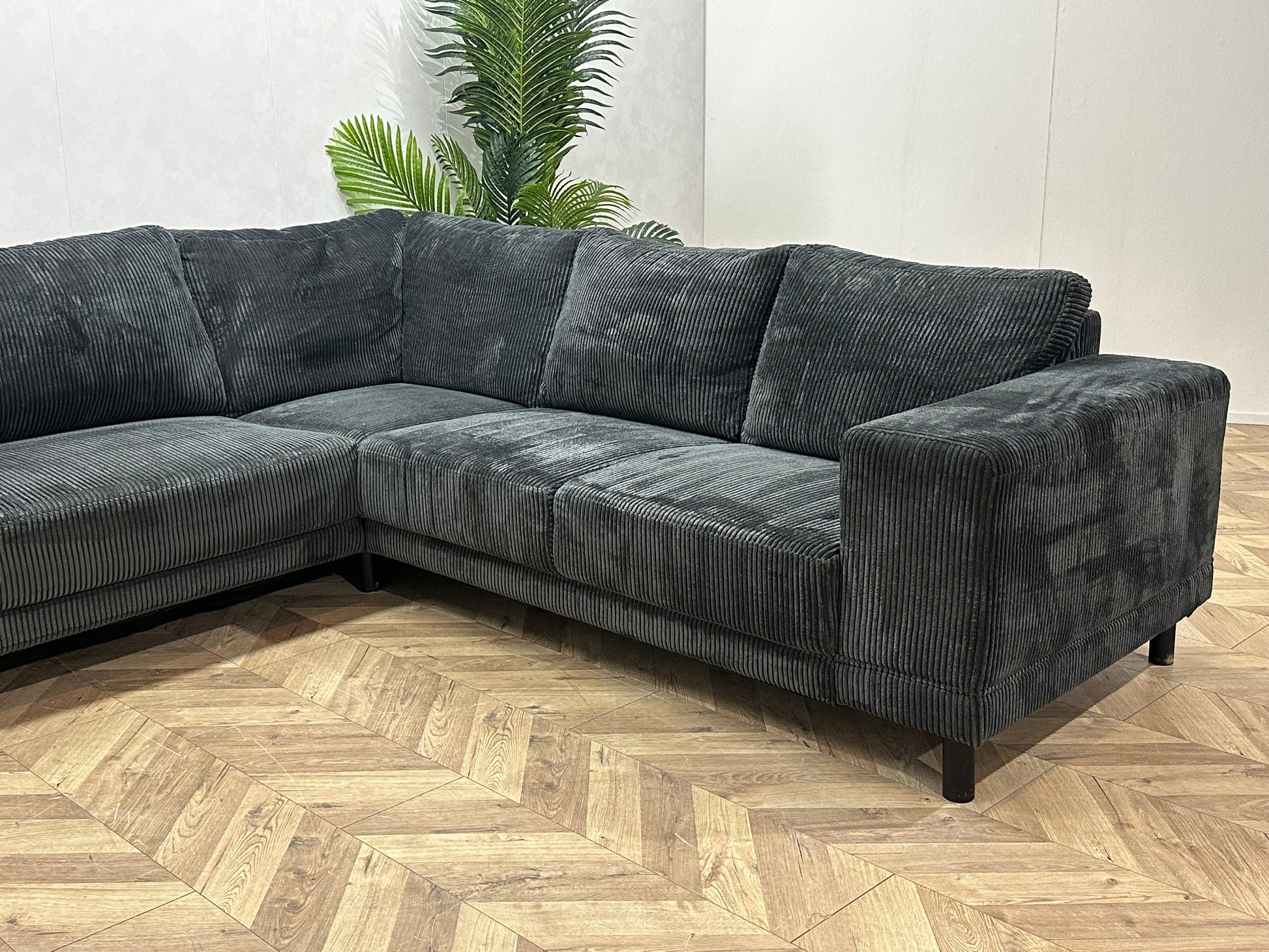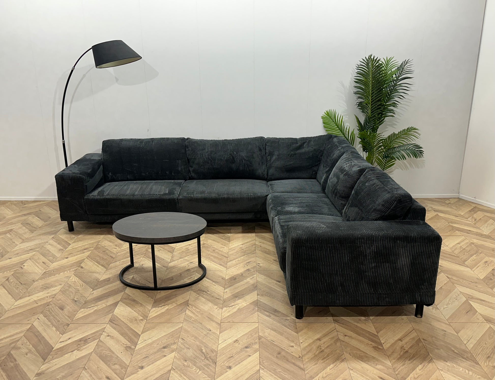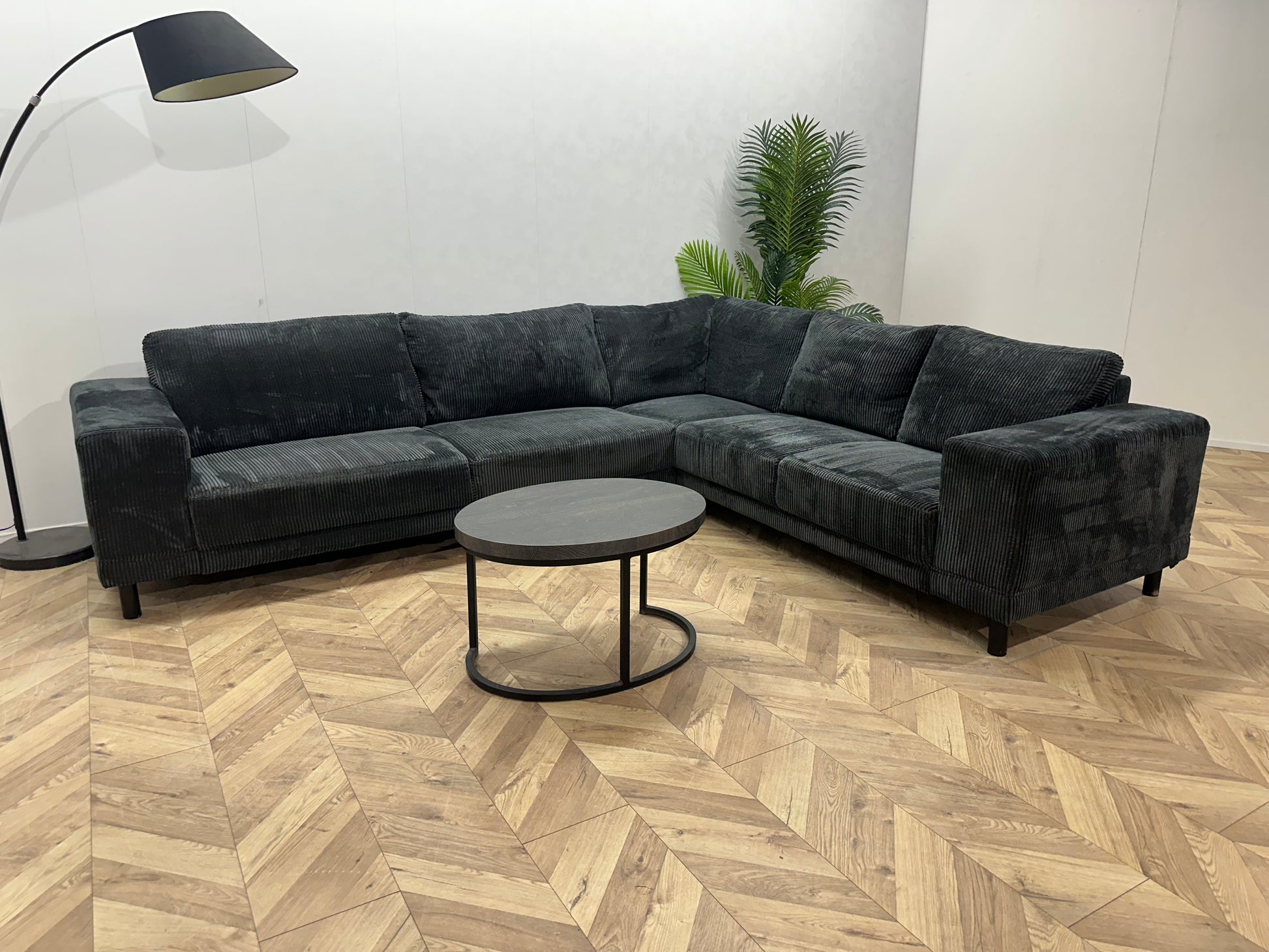 Antraciet Ribstof Hoekbank ~ Vaste Kussens