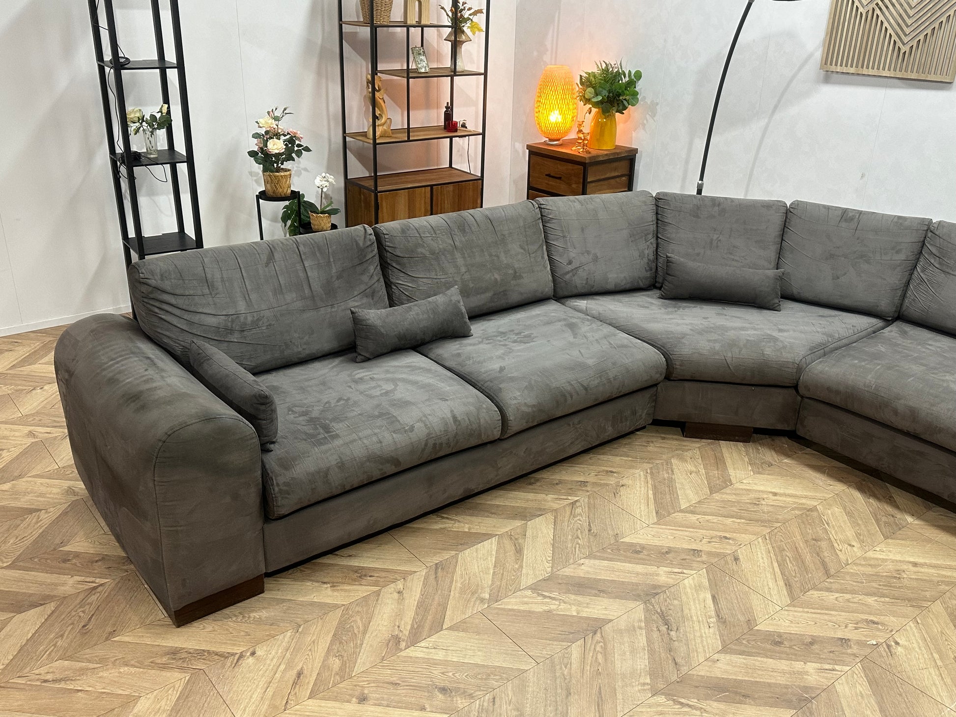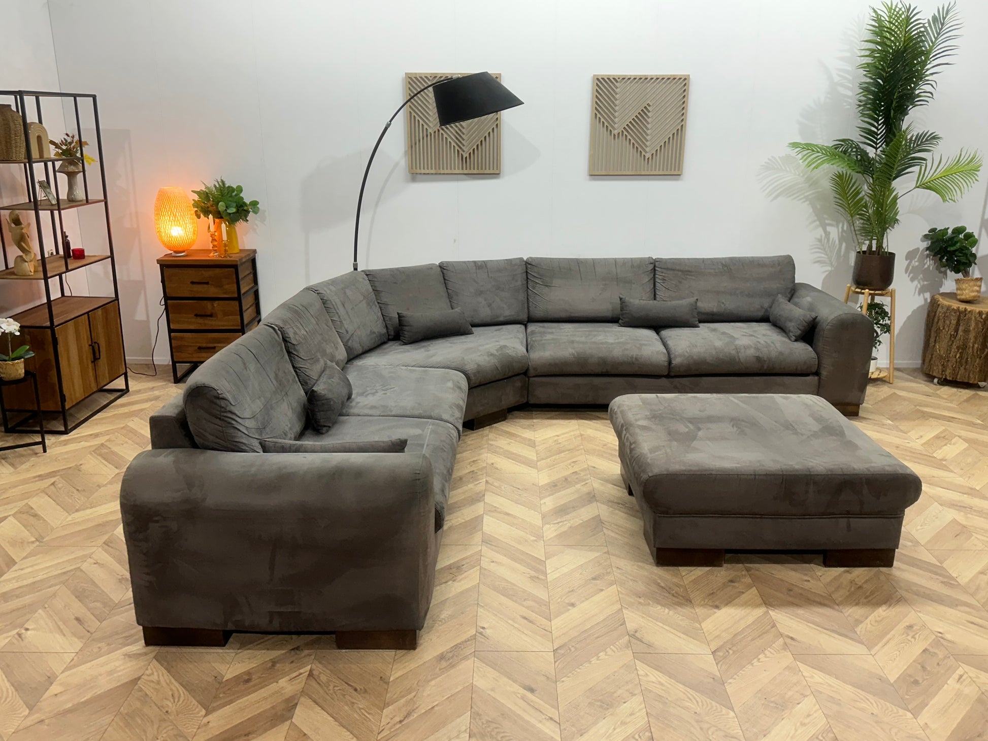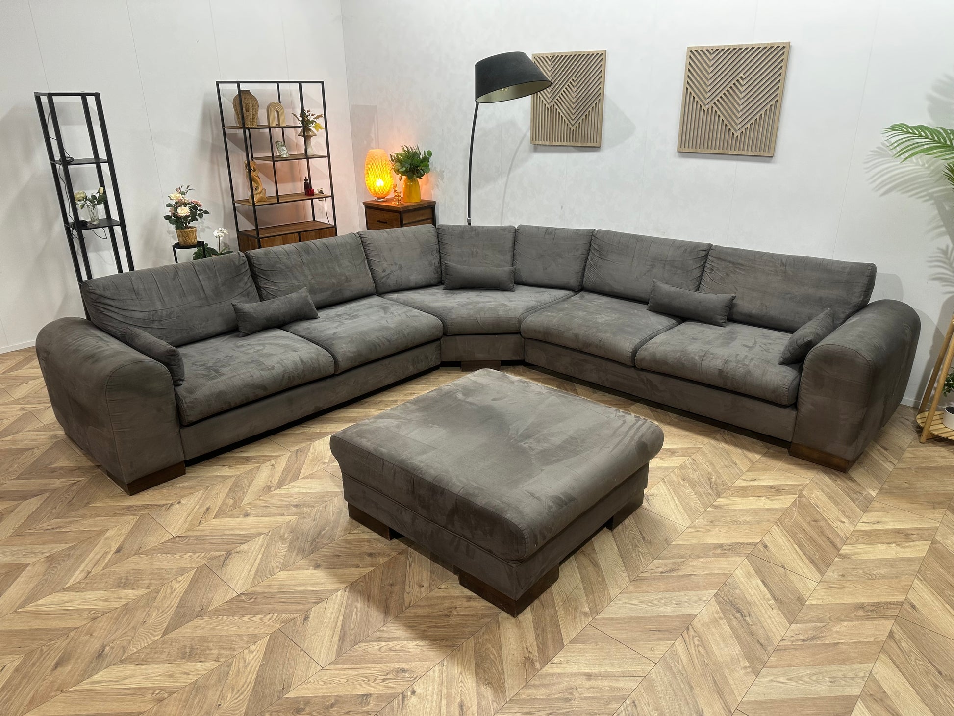 Antraciet Suède Stoffen Hoekbank Inc Hocker ~ Losse Kussens Met Afneembare Hoezen