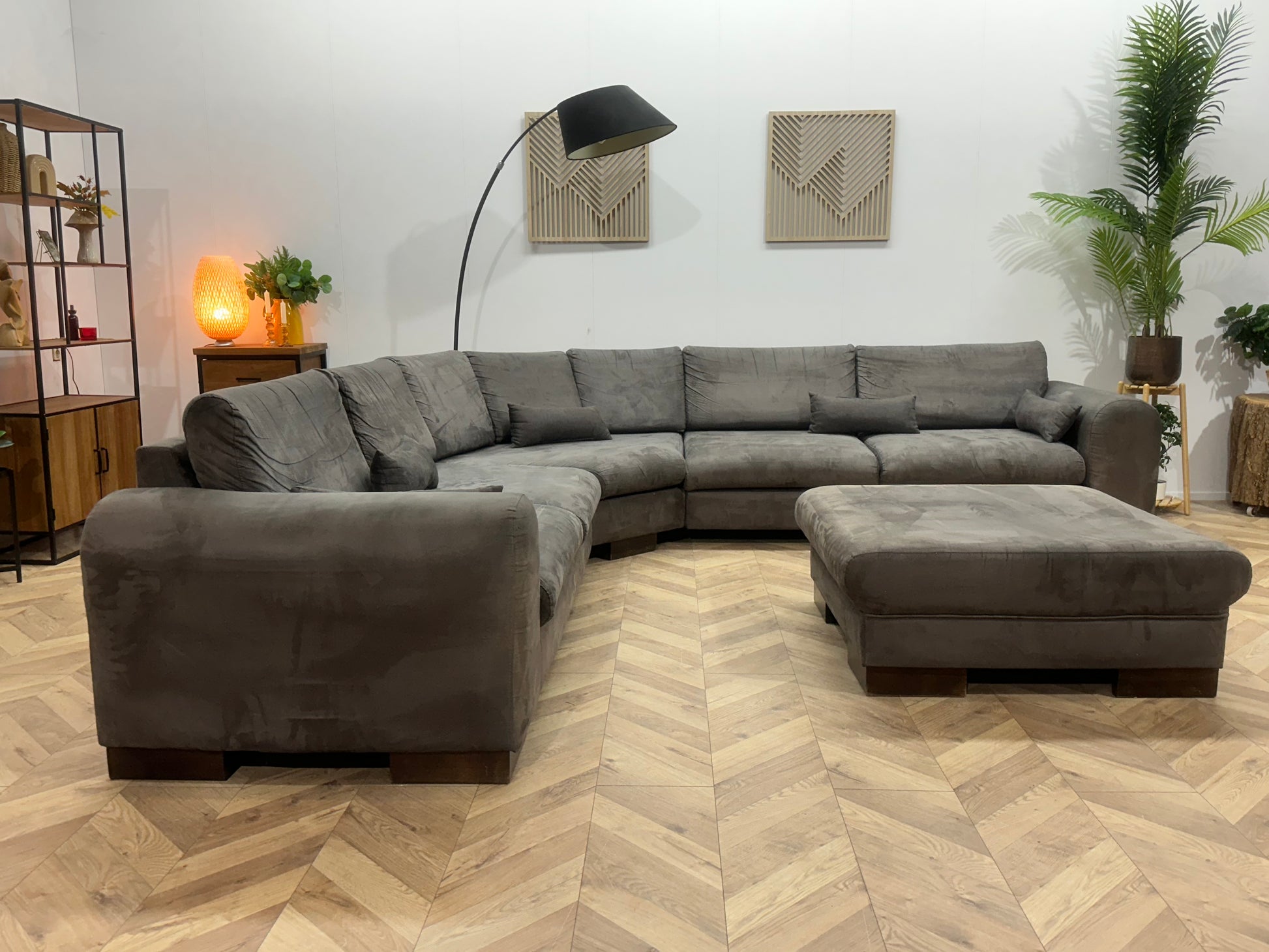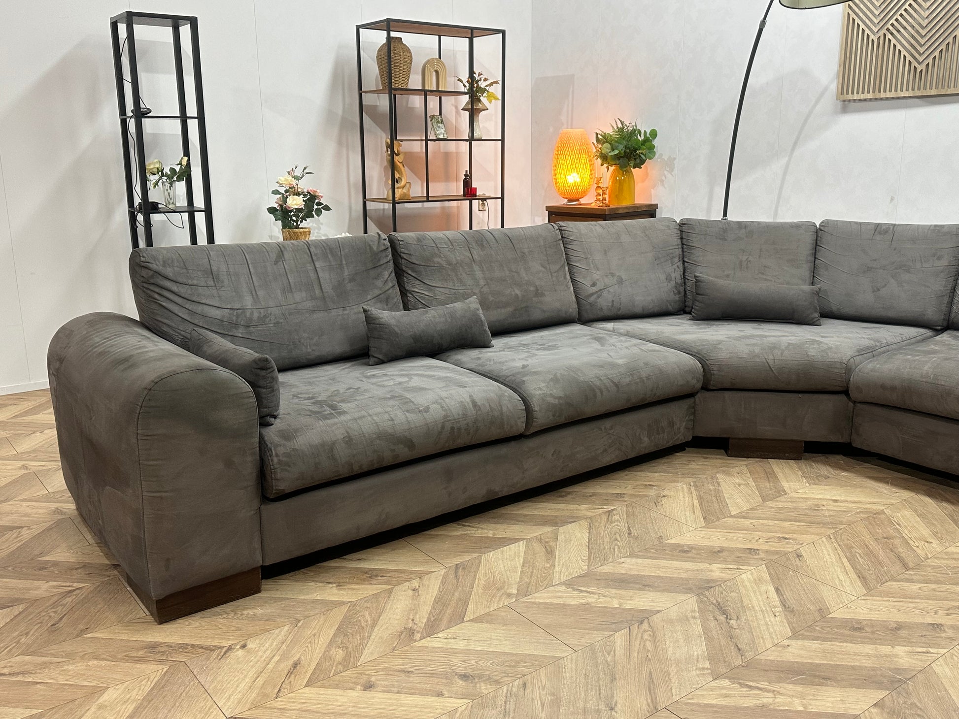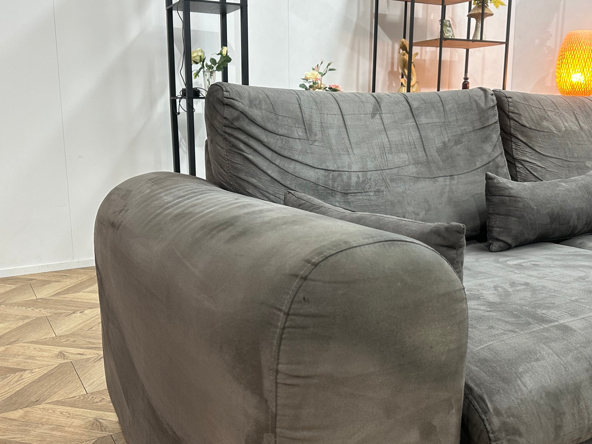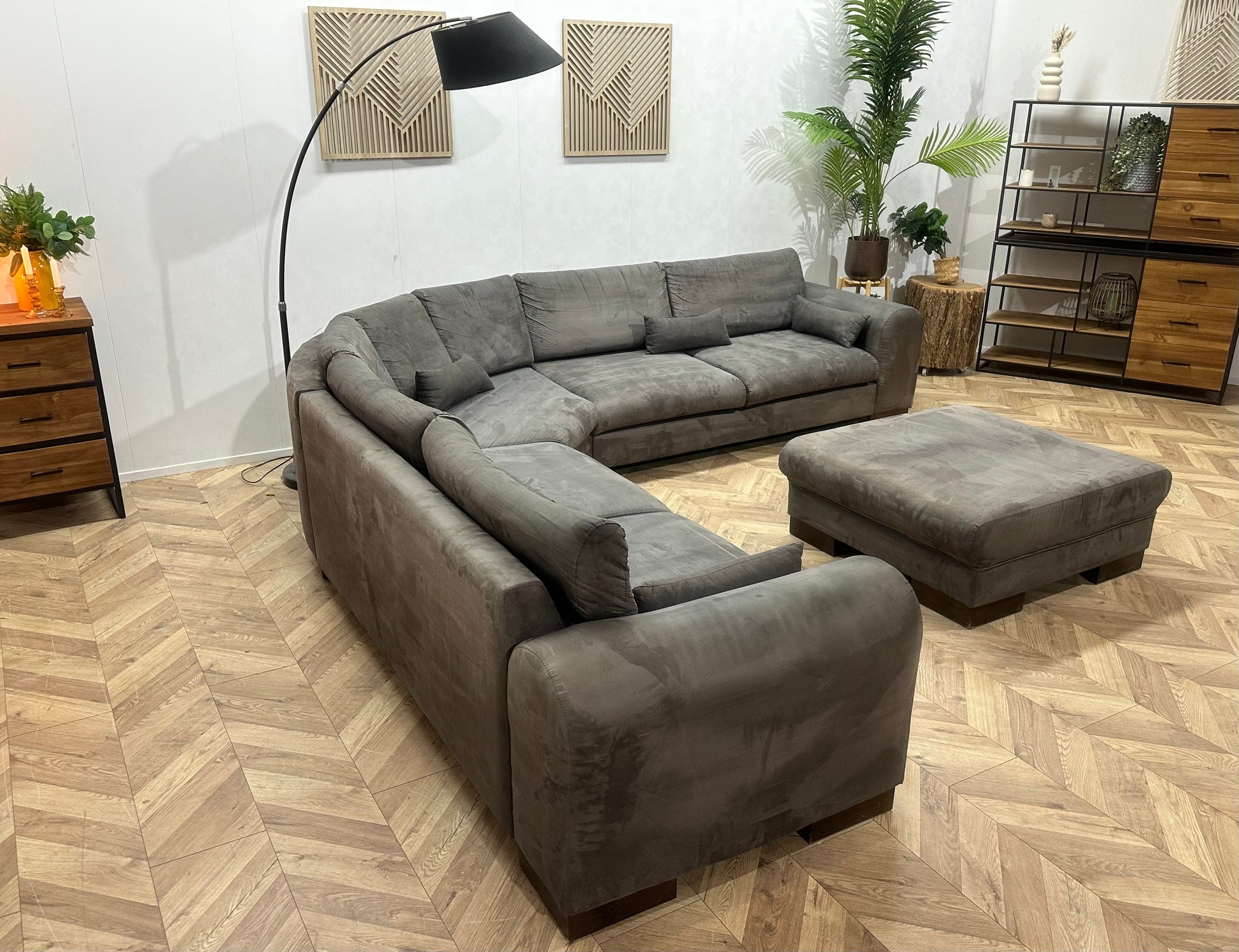 Antraciet Suède Stoffen Hoekbank Inc Hocker ~ Losse Kussens Met Afneembare Hoezen
