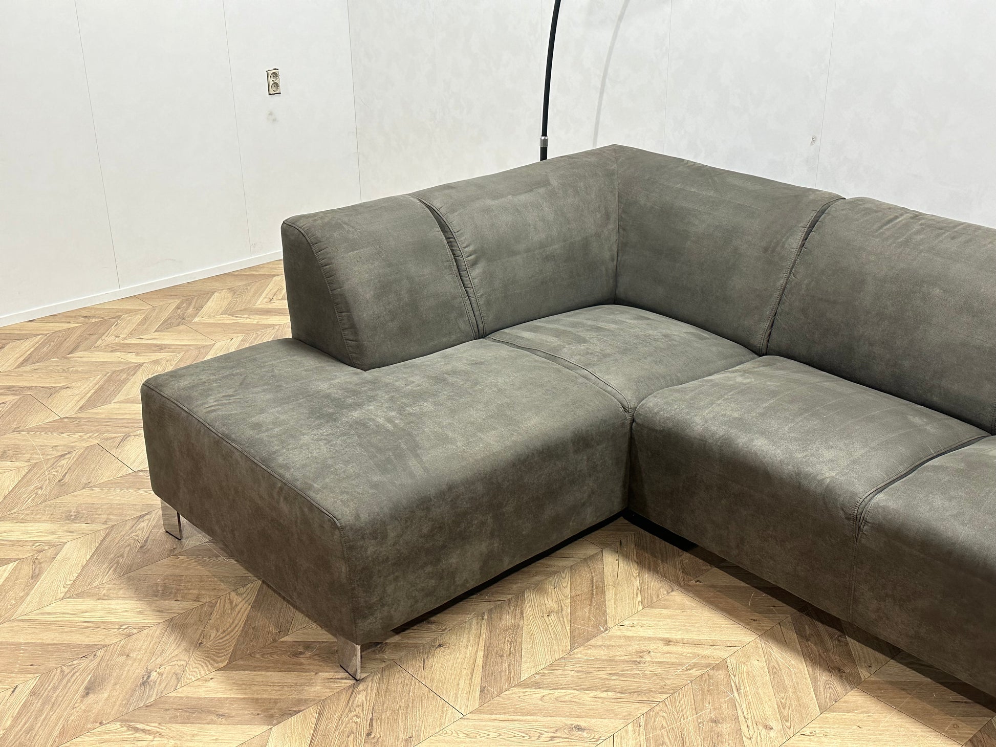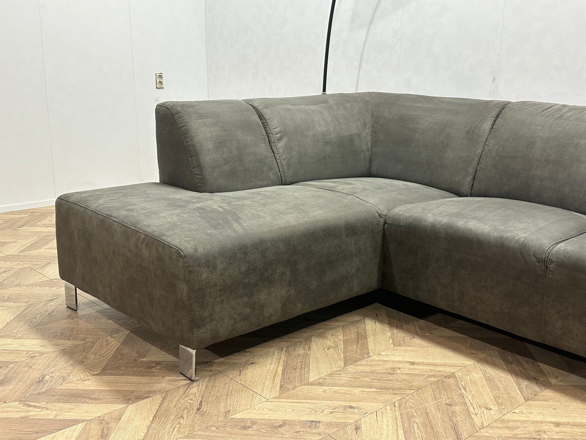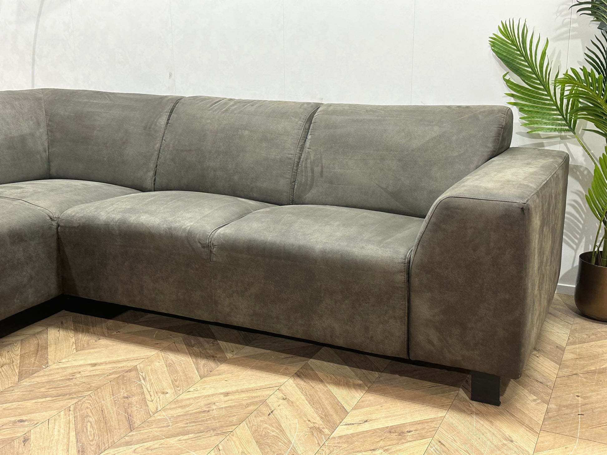 Antraciet Suède Stoffen Hoekbank ~ Vaste Kussens