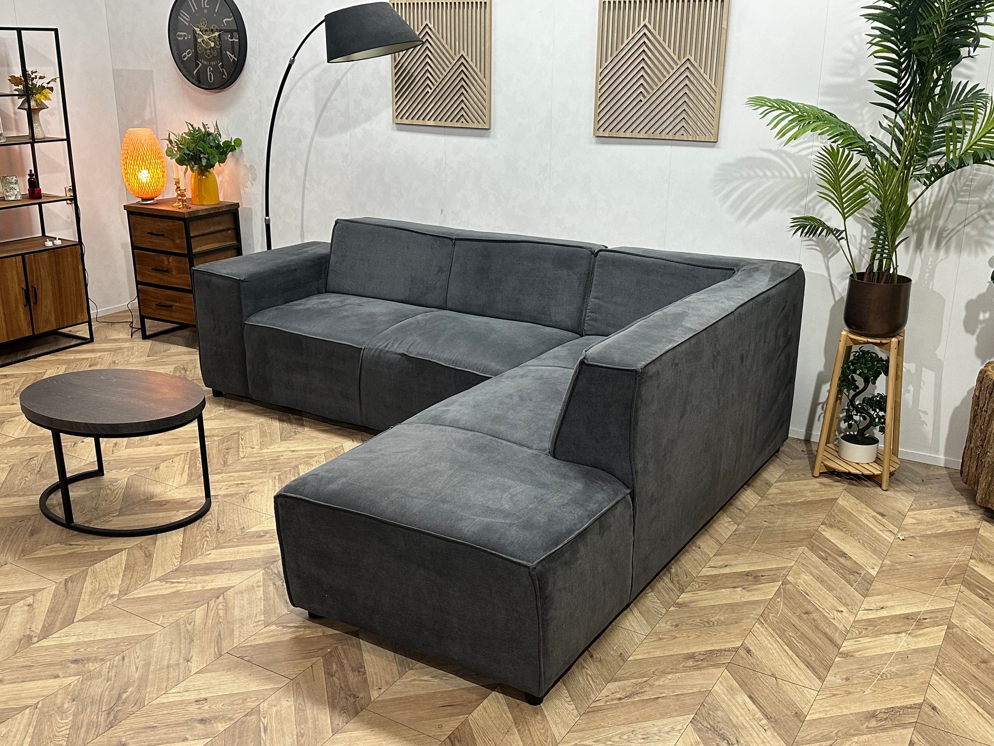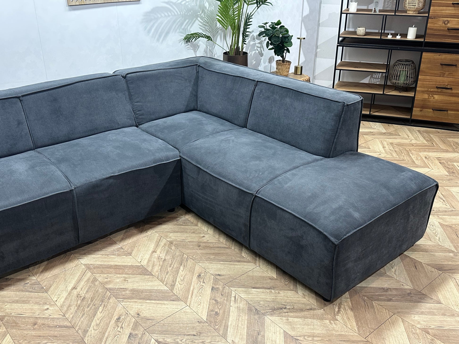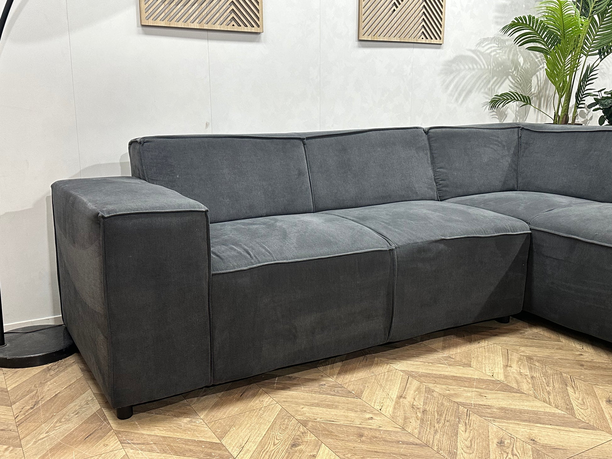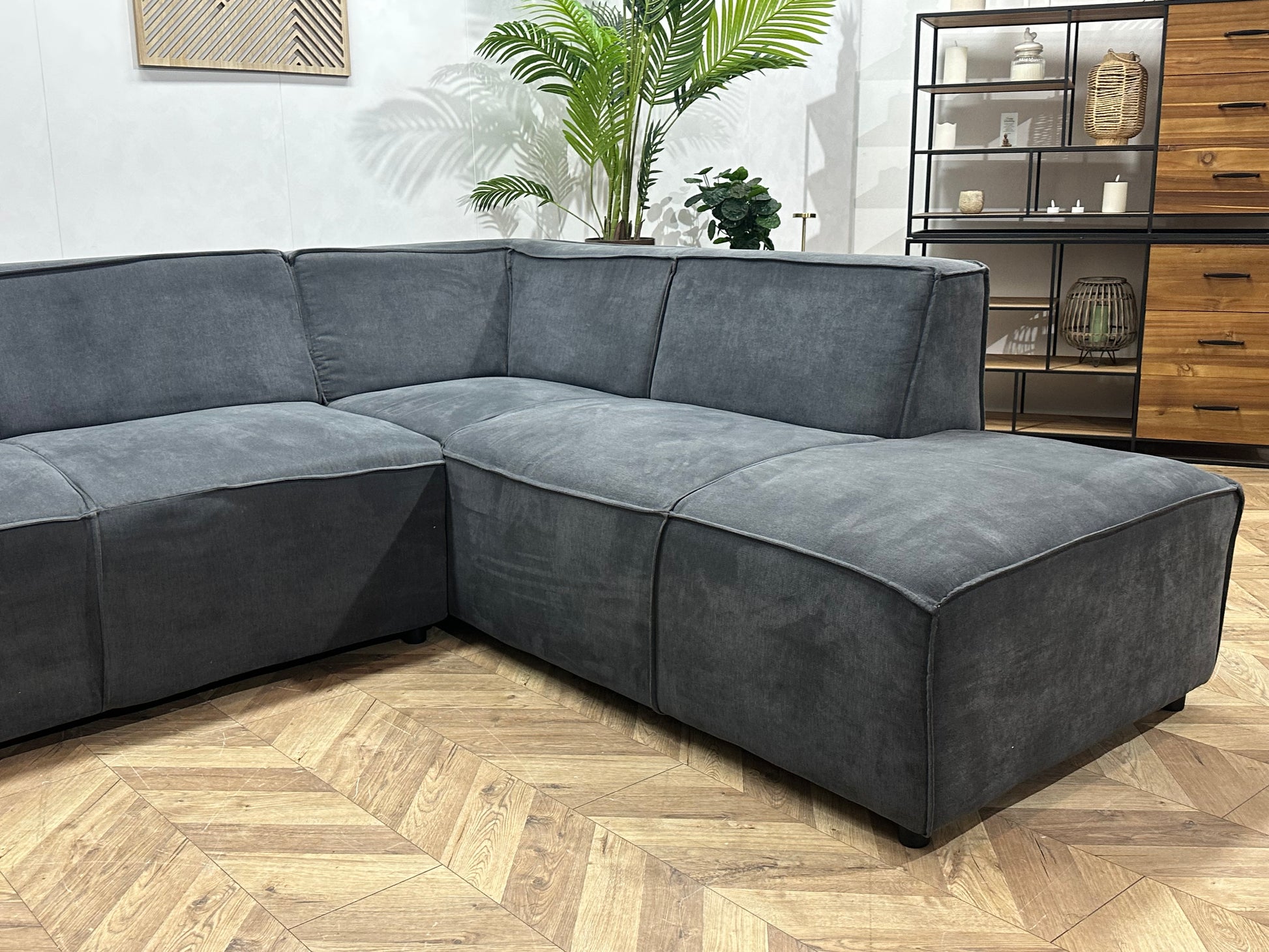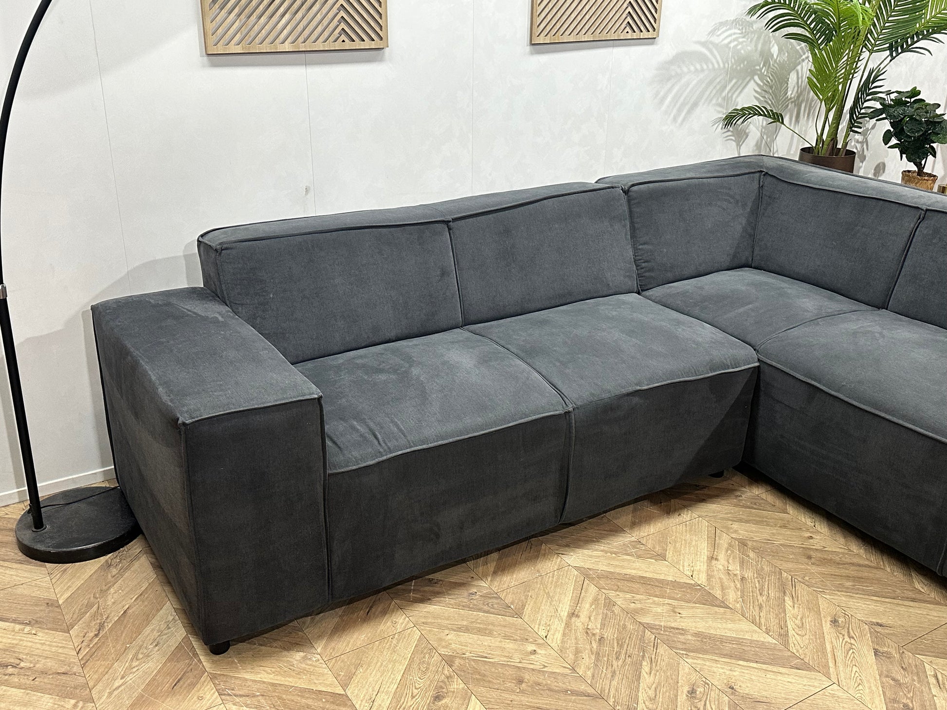 Antraciet Suède Stoffen Hoekbank ~ Vaste Kussens