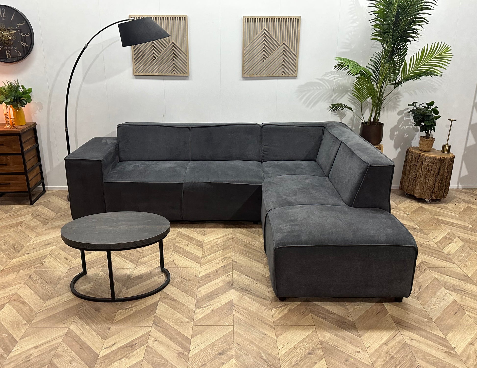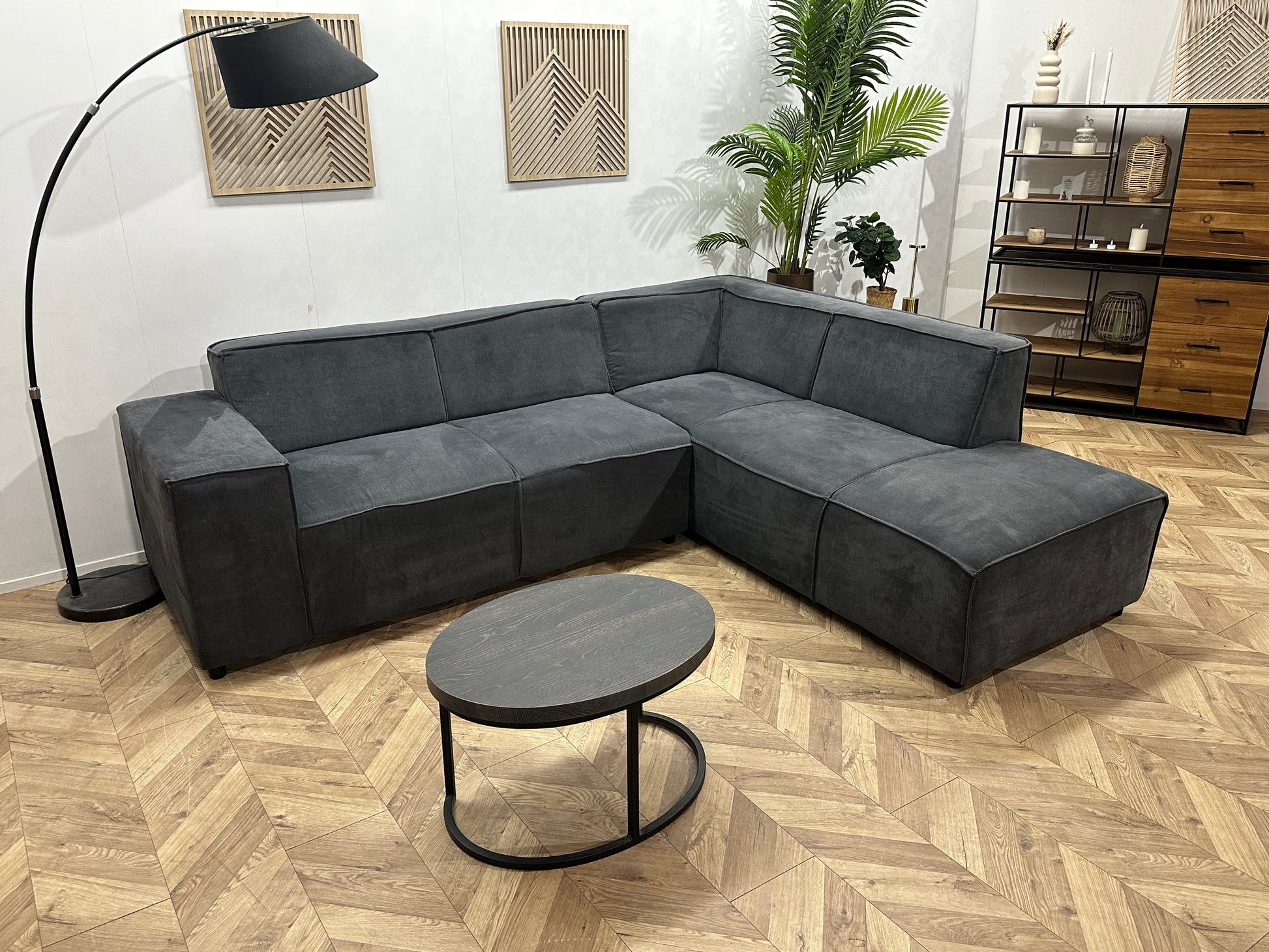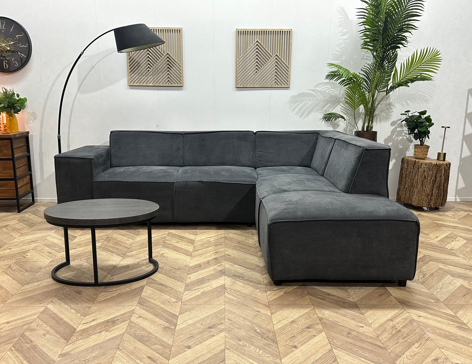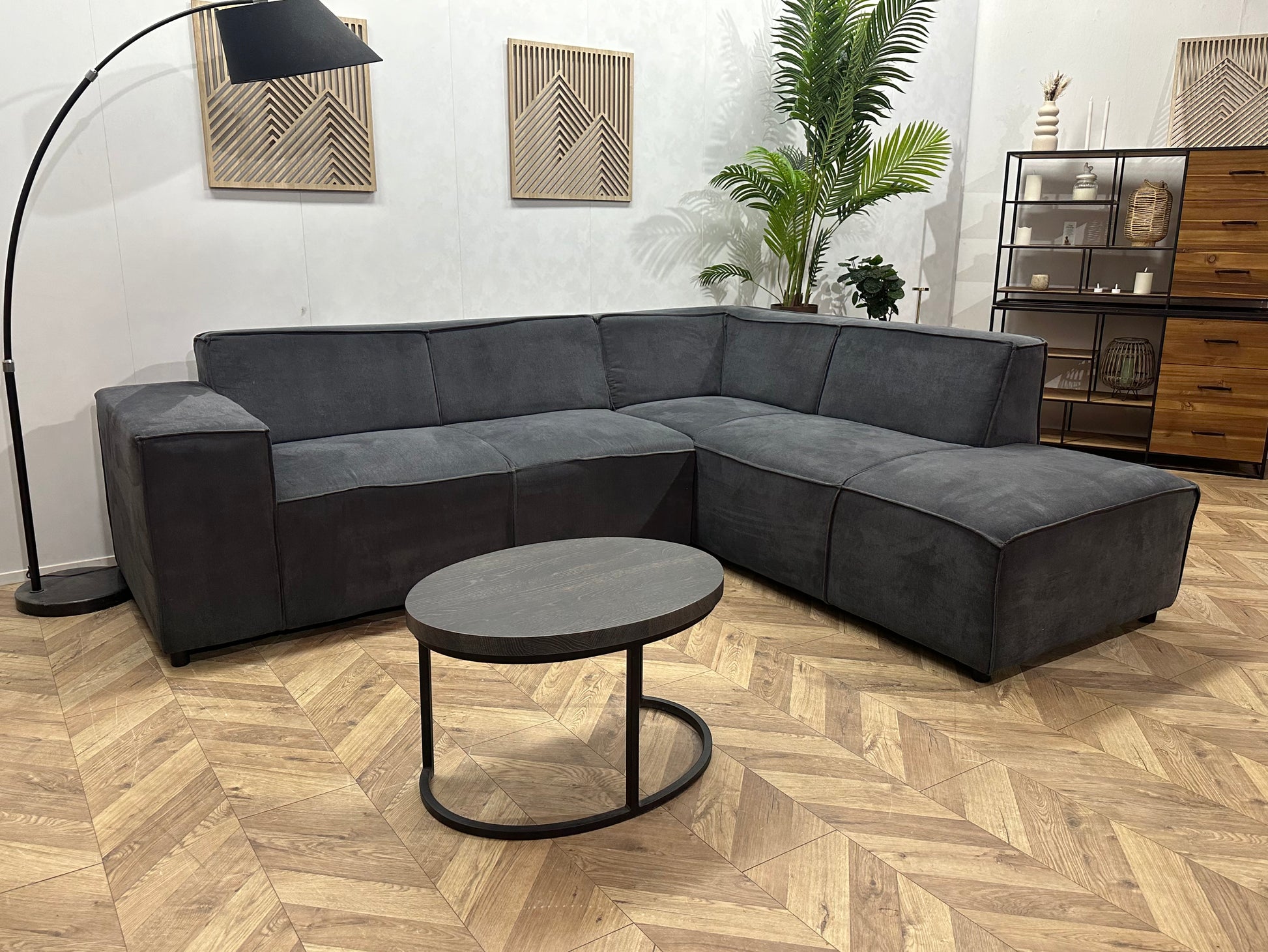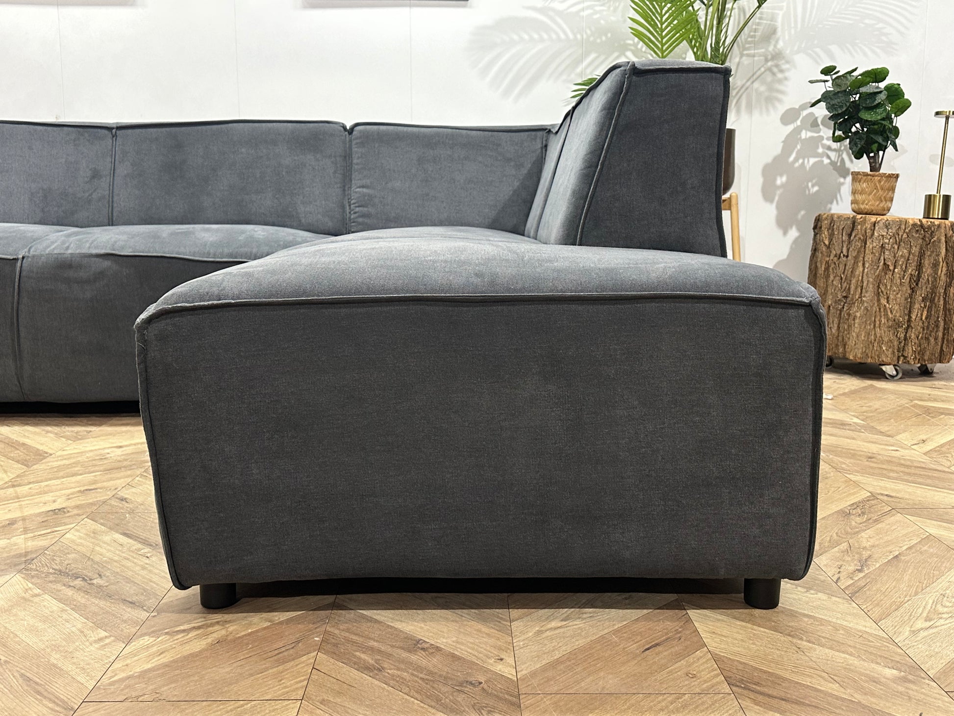Antraciet Suède Stoffen Hoekbank ~ Vaste Kussens