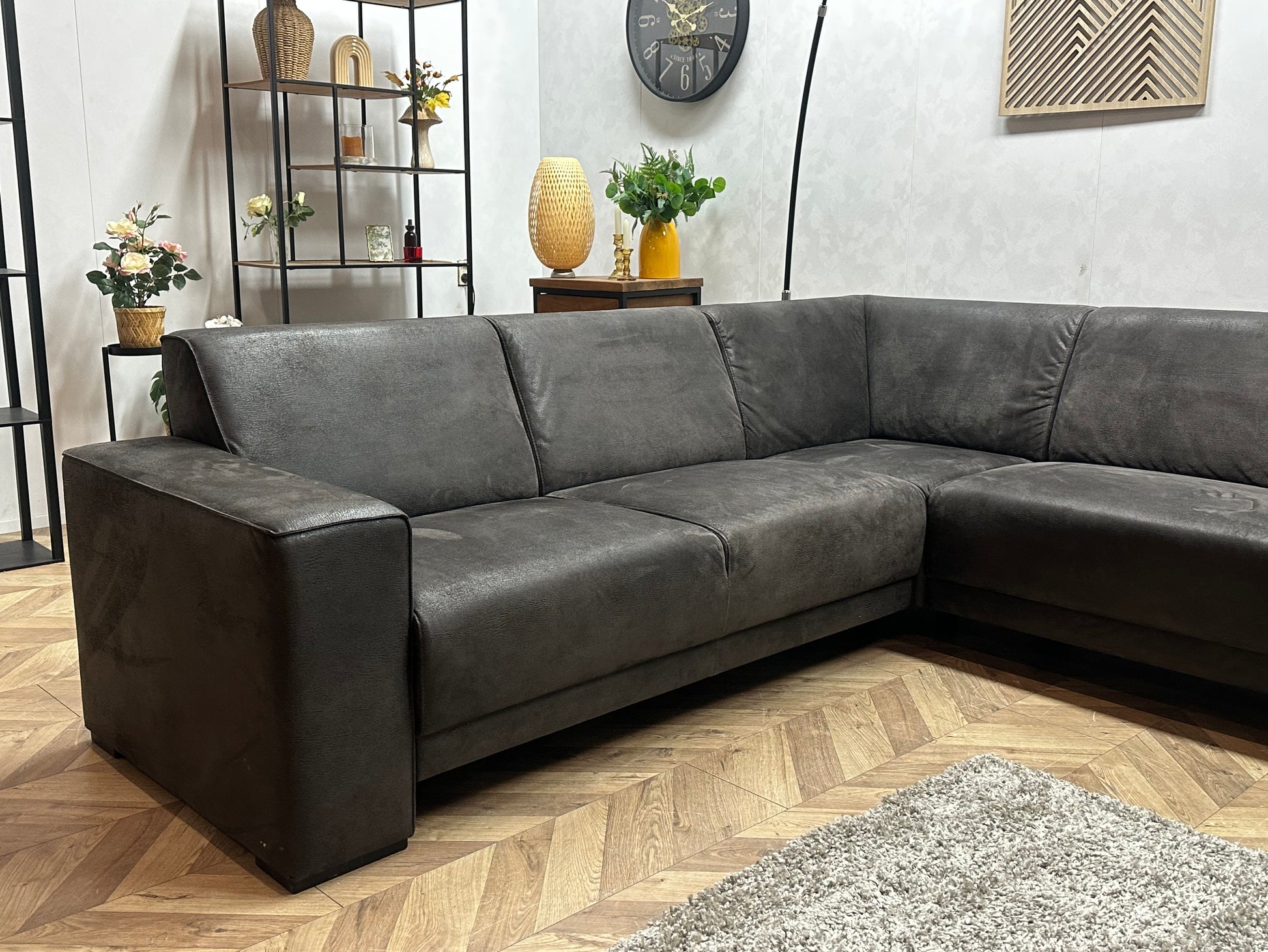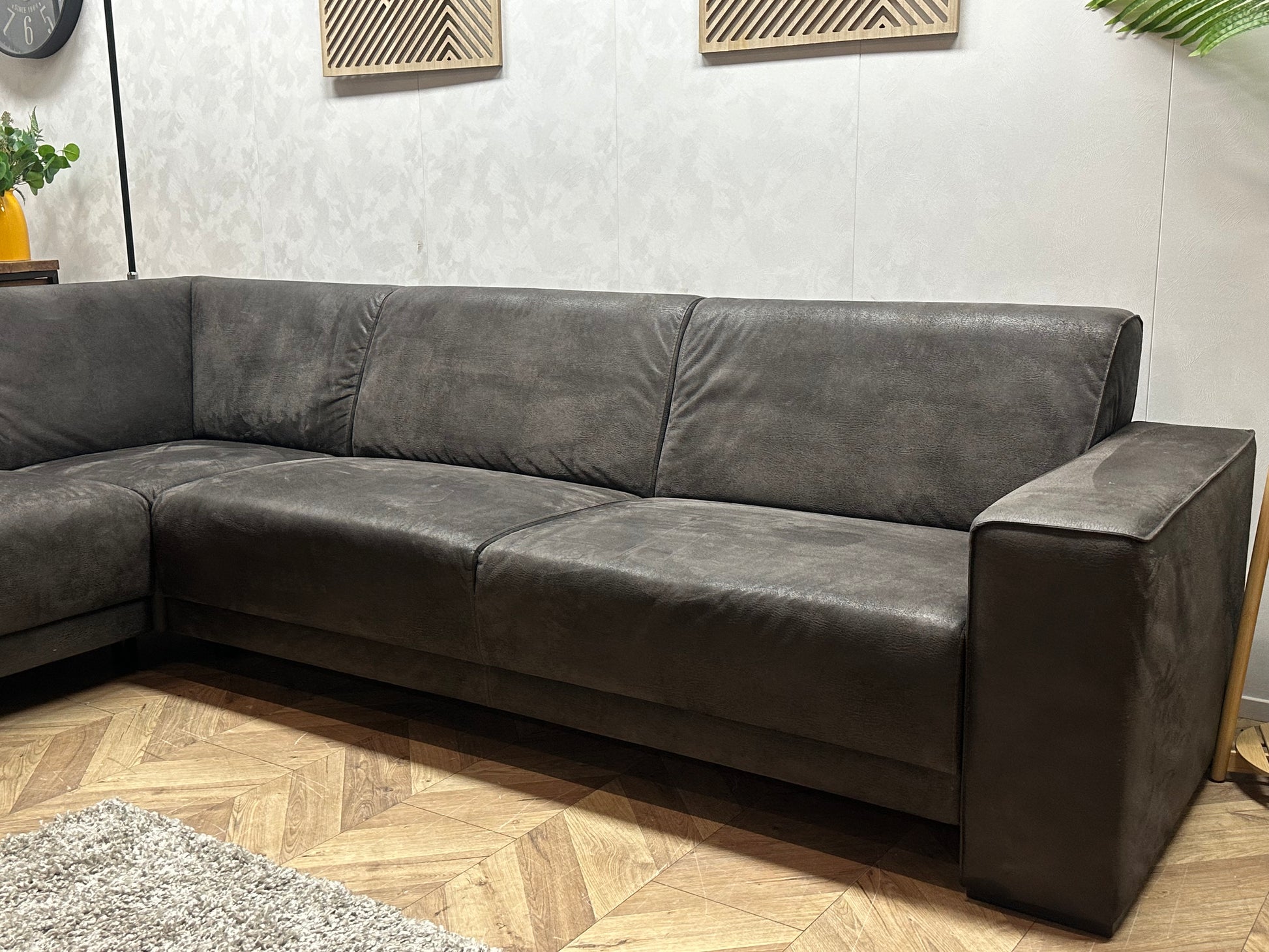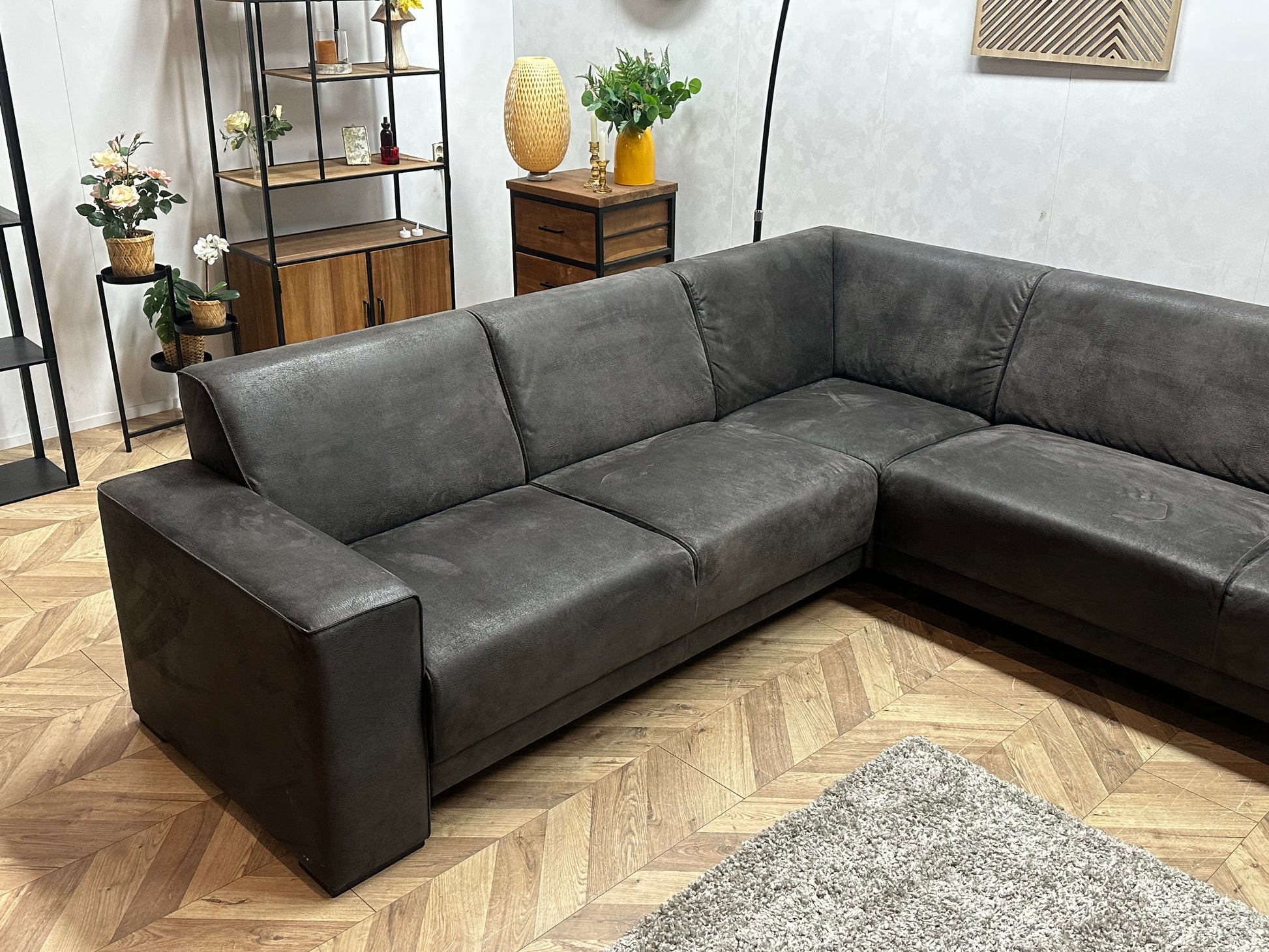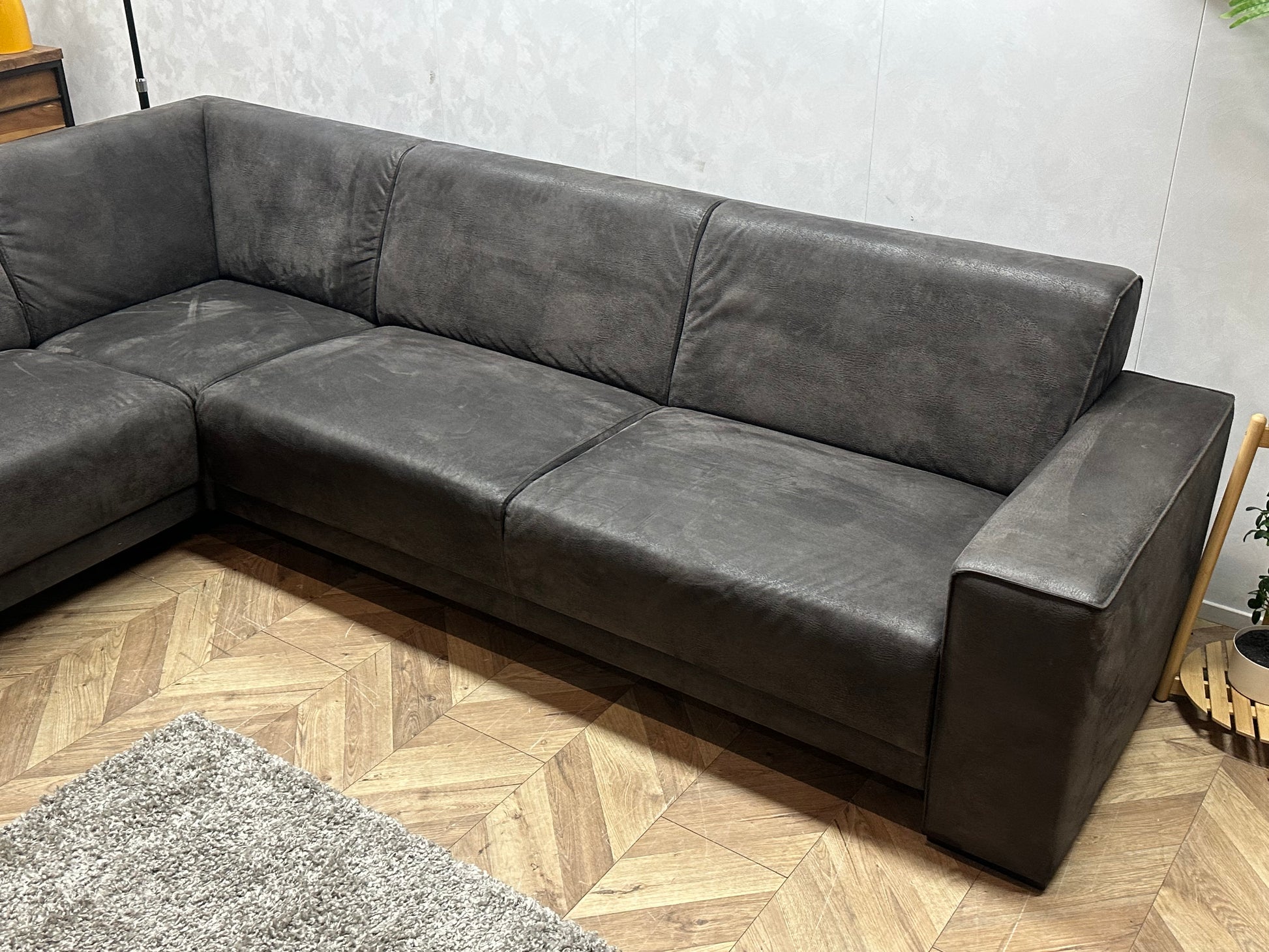 Antraciet Suède Stoffen Hoekbank ~ Vaste Kussens