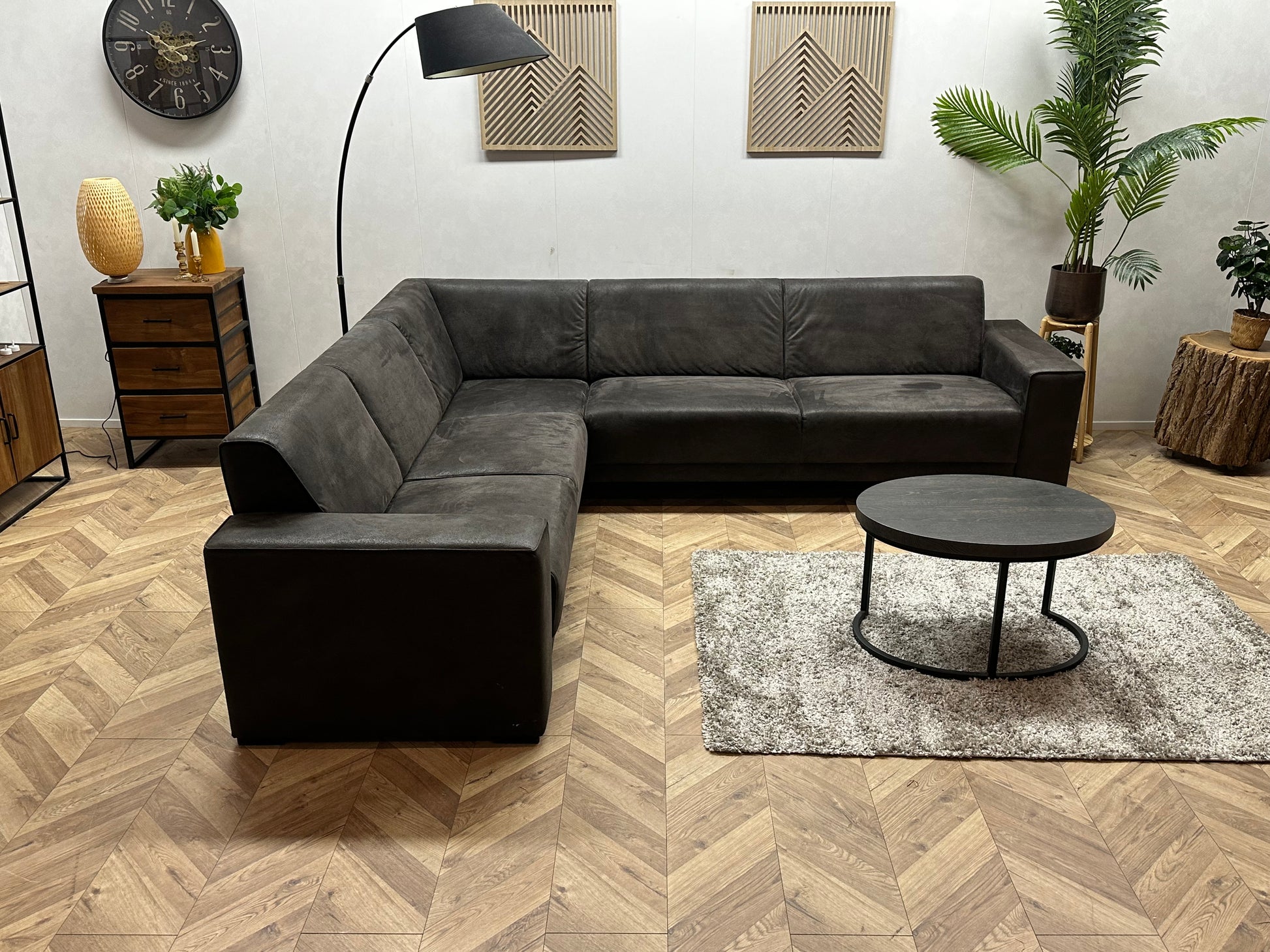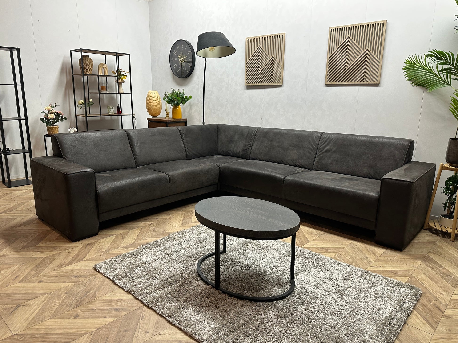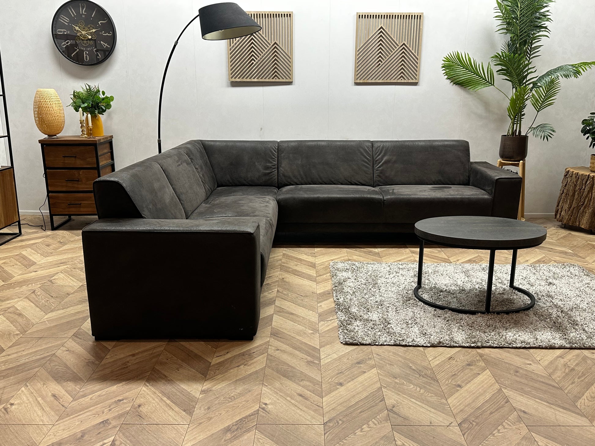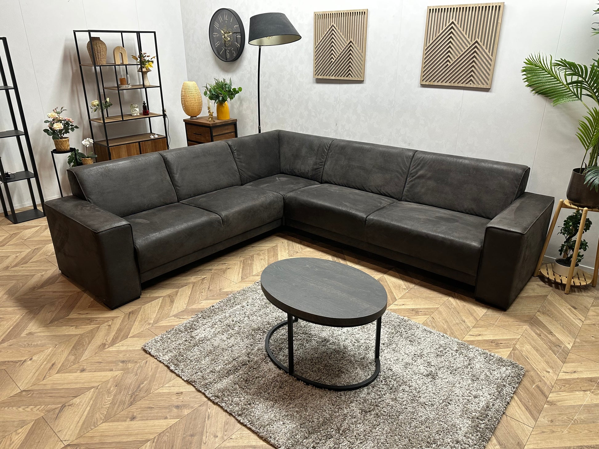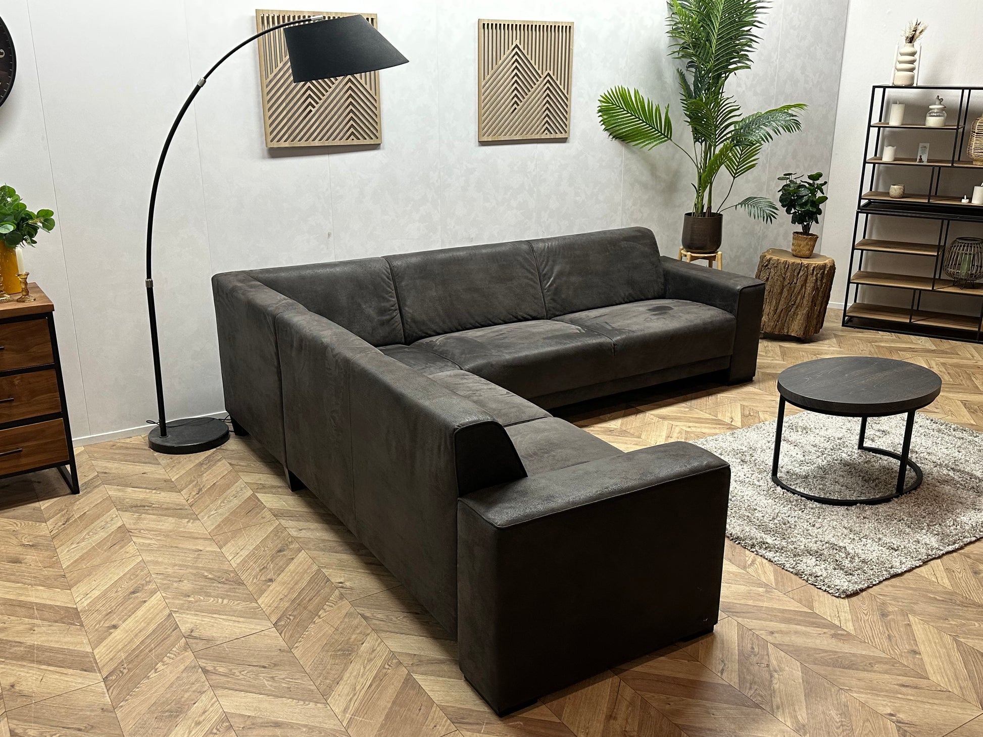 Antraciet Suède Stoffen Hoekbank ~ Vaste Kussens