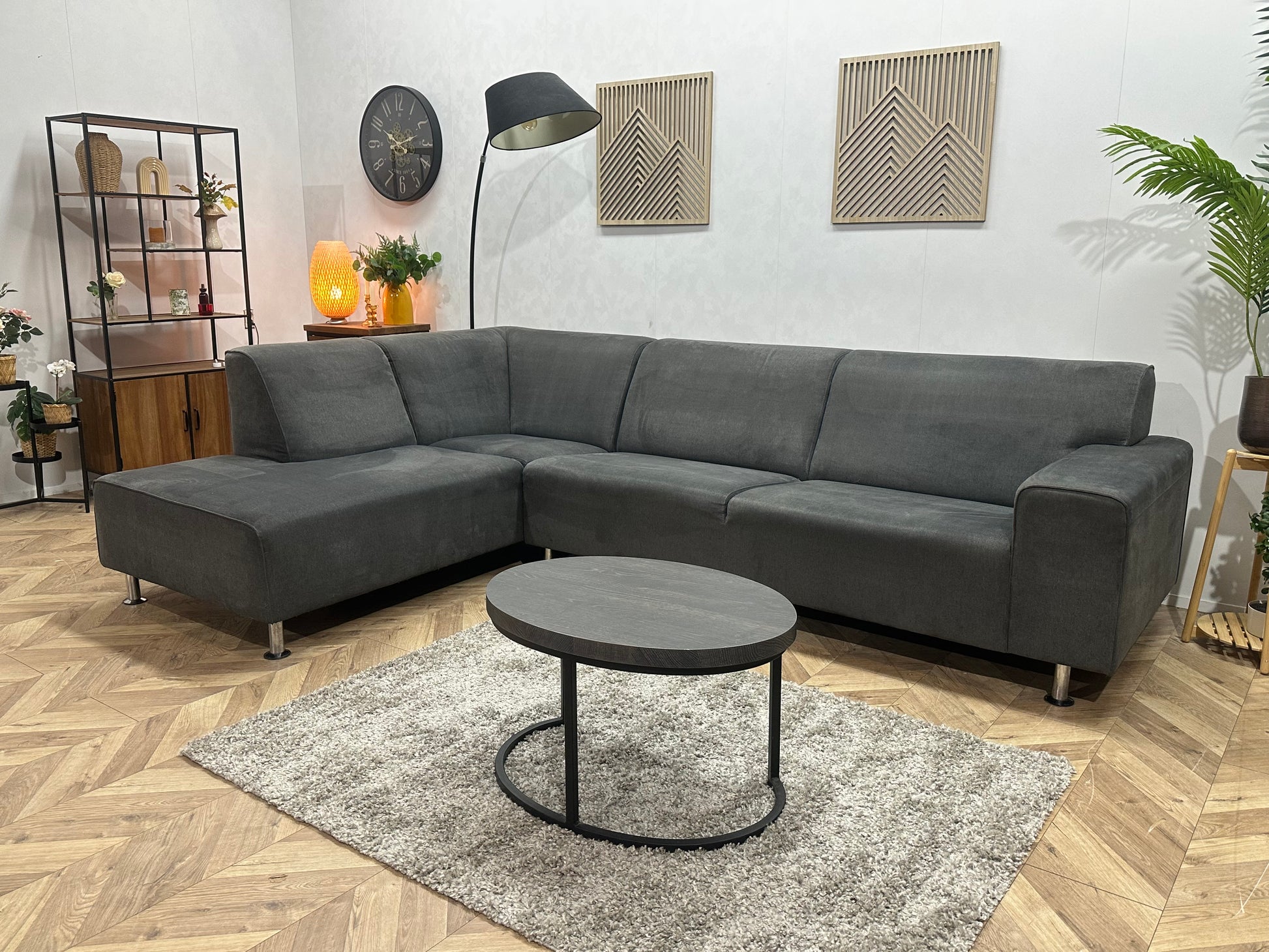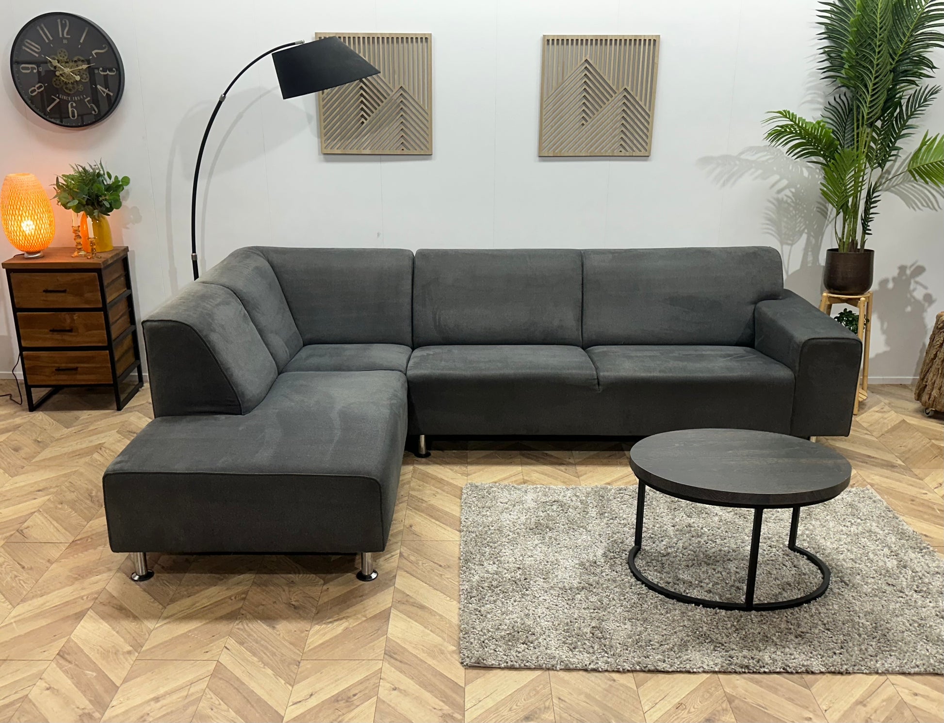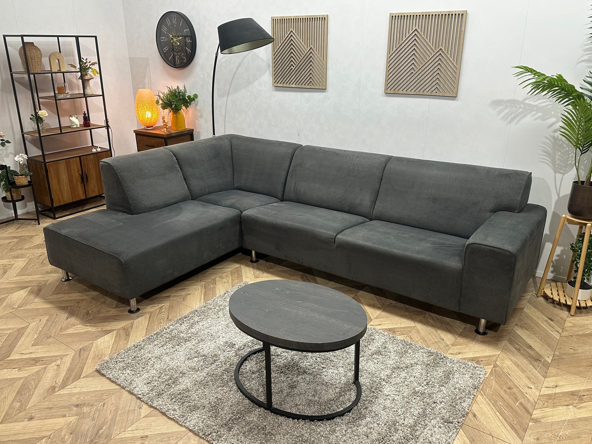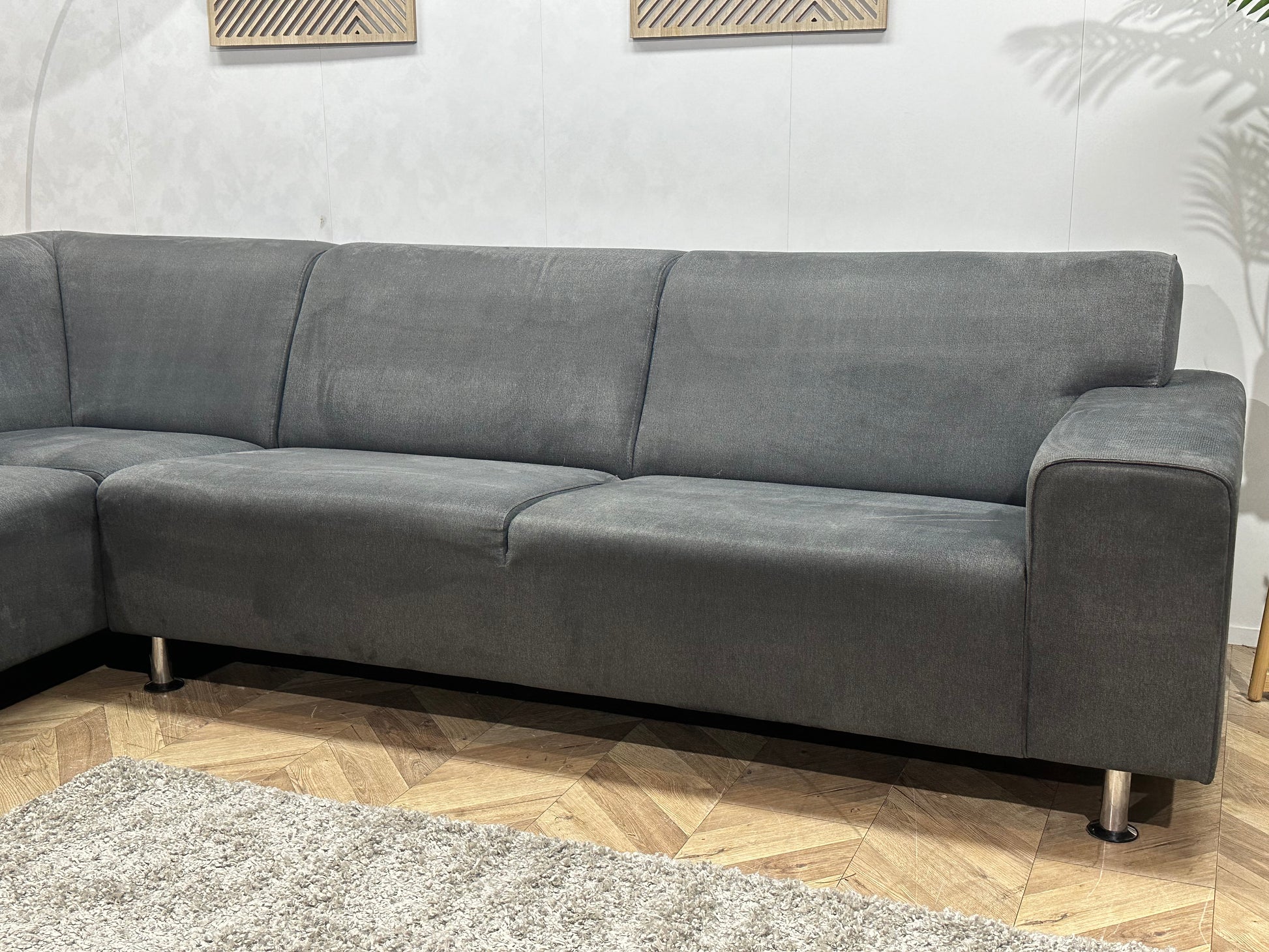 Antraciet Suède Stoffen Hoekbank ~ Vaste Kussens