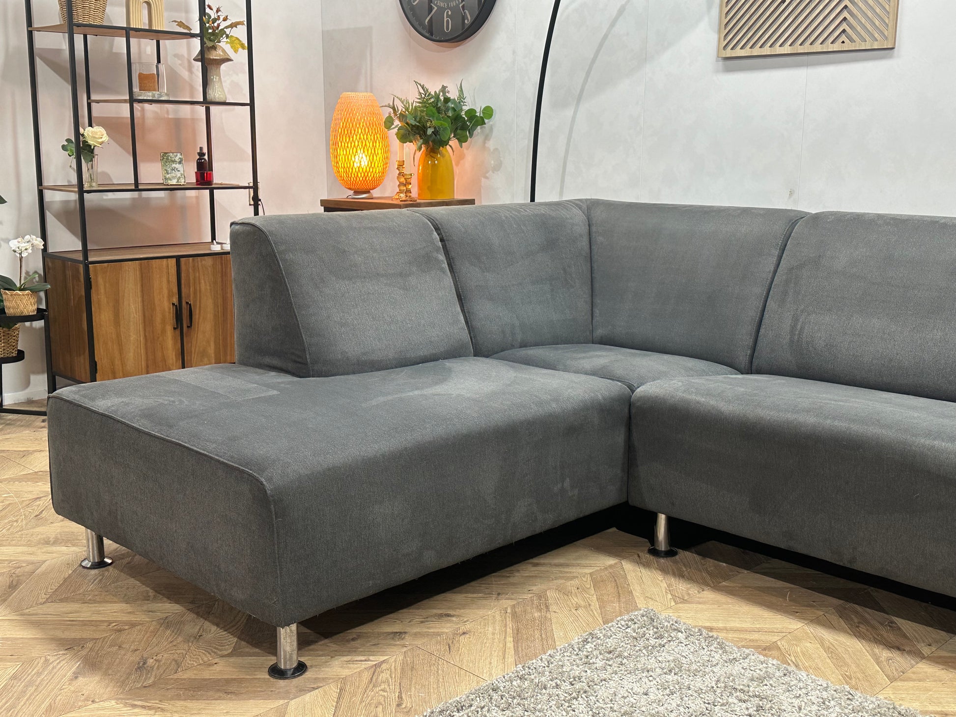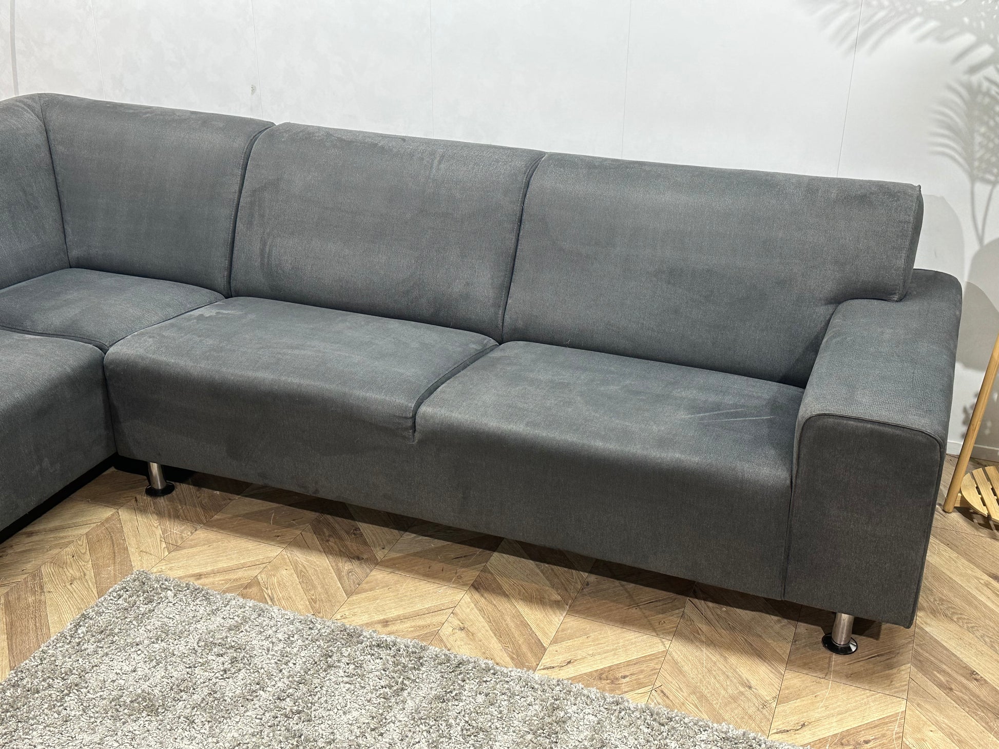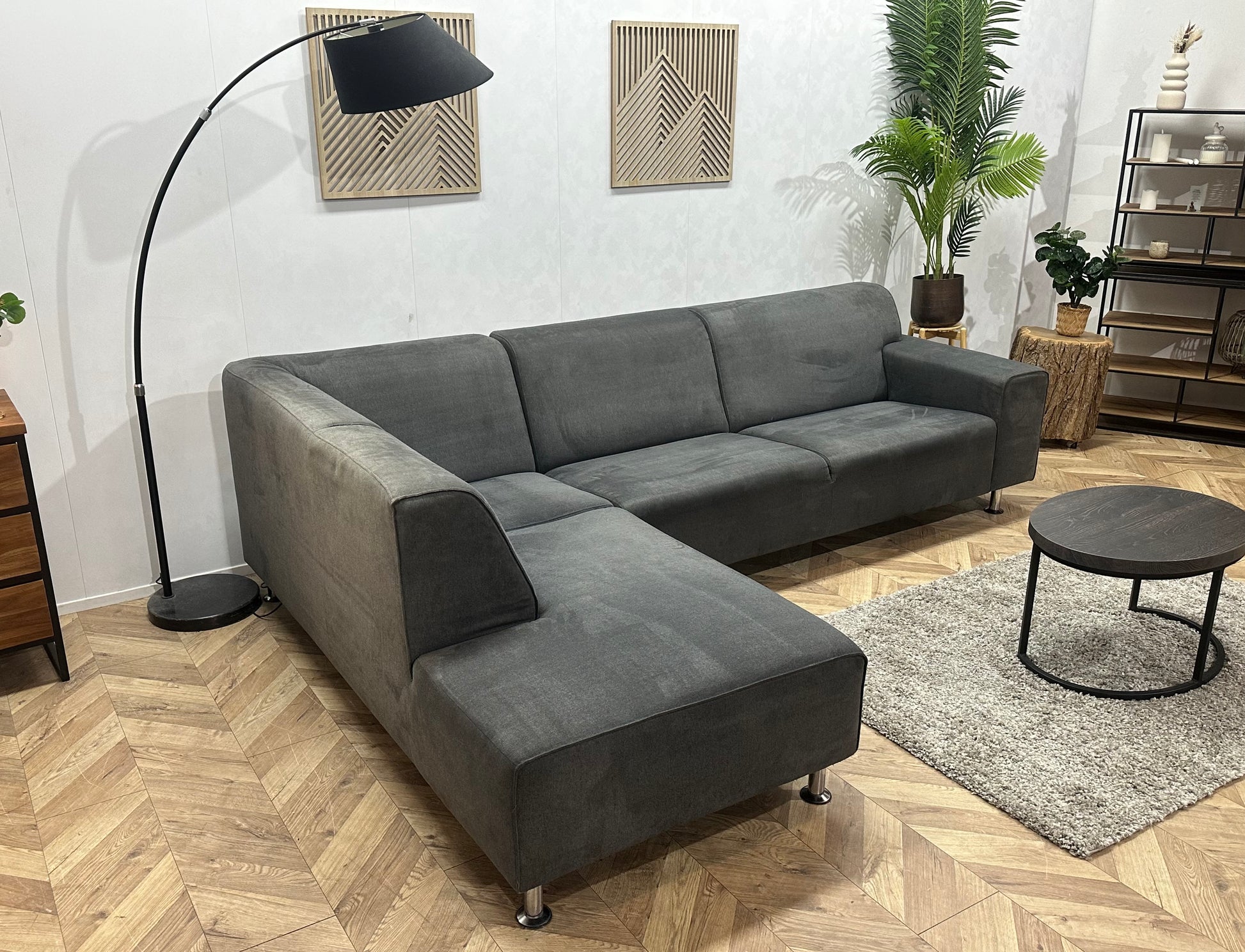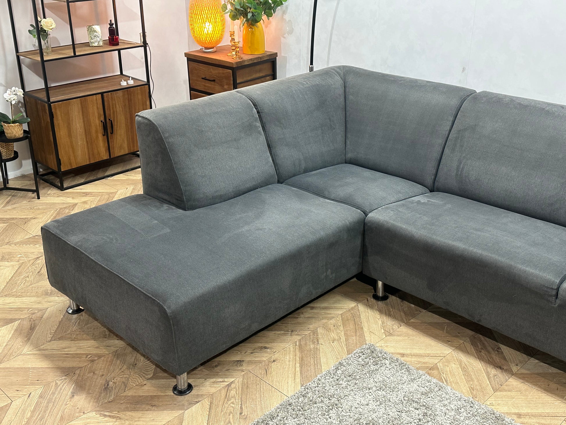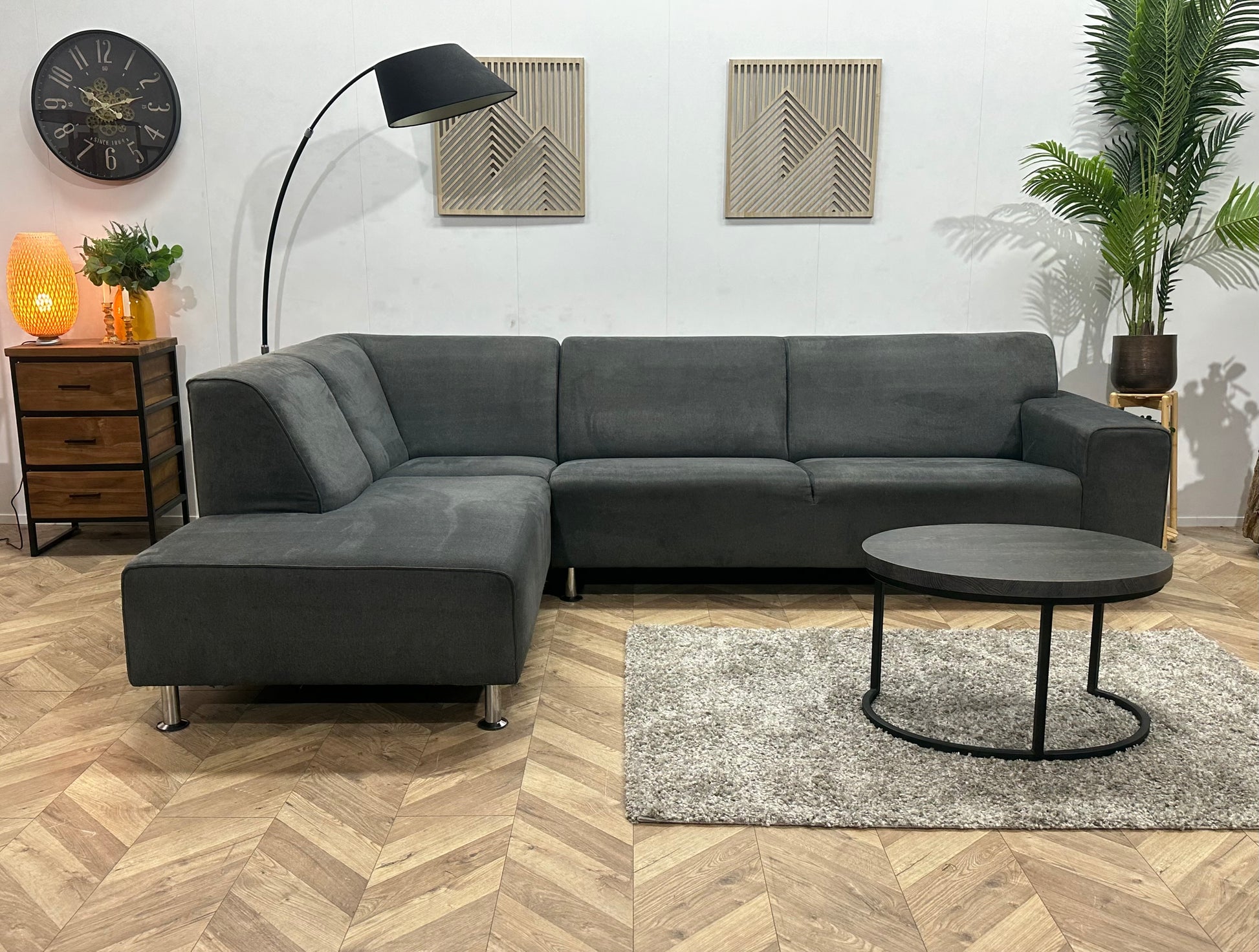 Antraciet Suède Stoffen Hoekbank ~ Vaste Kussens