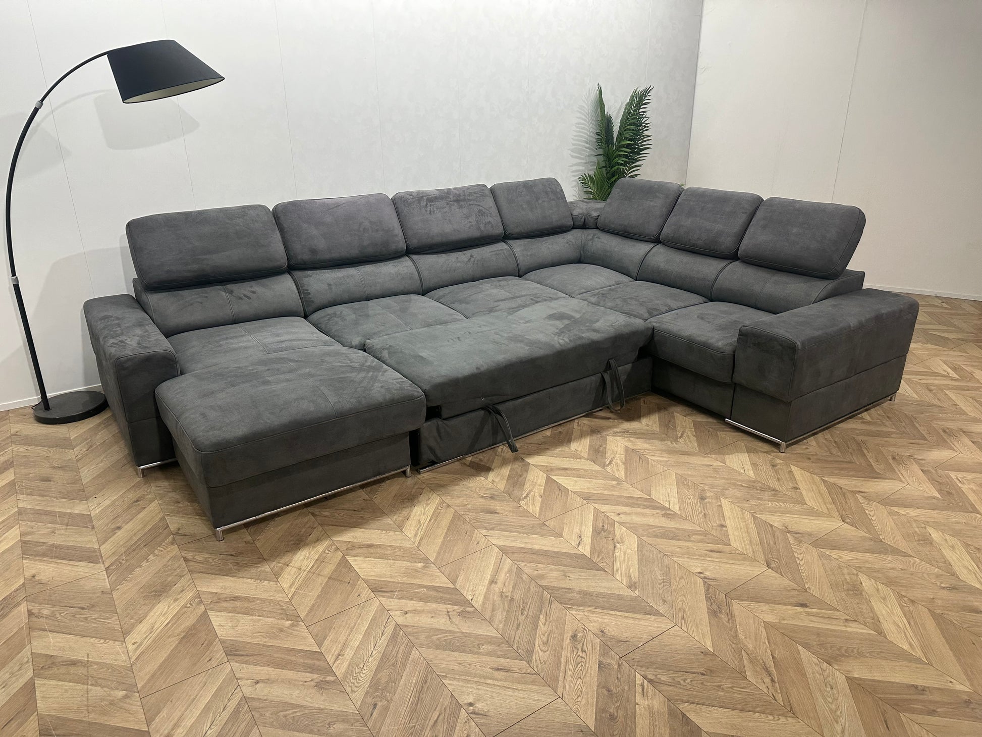 Antraciet Suède Stoffen U Bank ~ Slaapfunctie ~ Opbergruimte