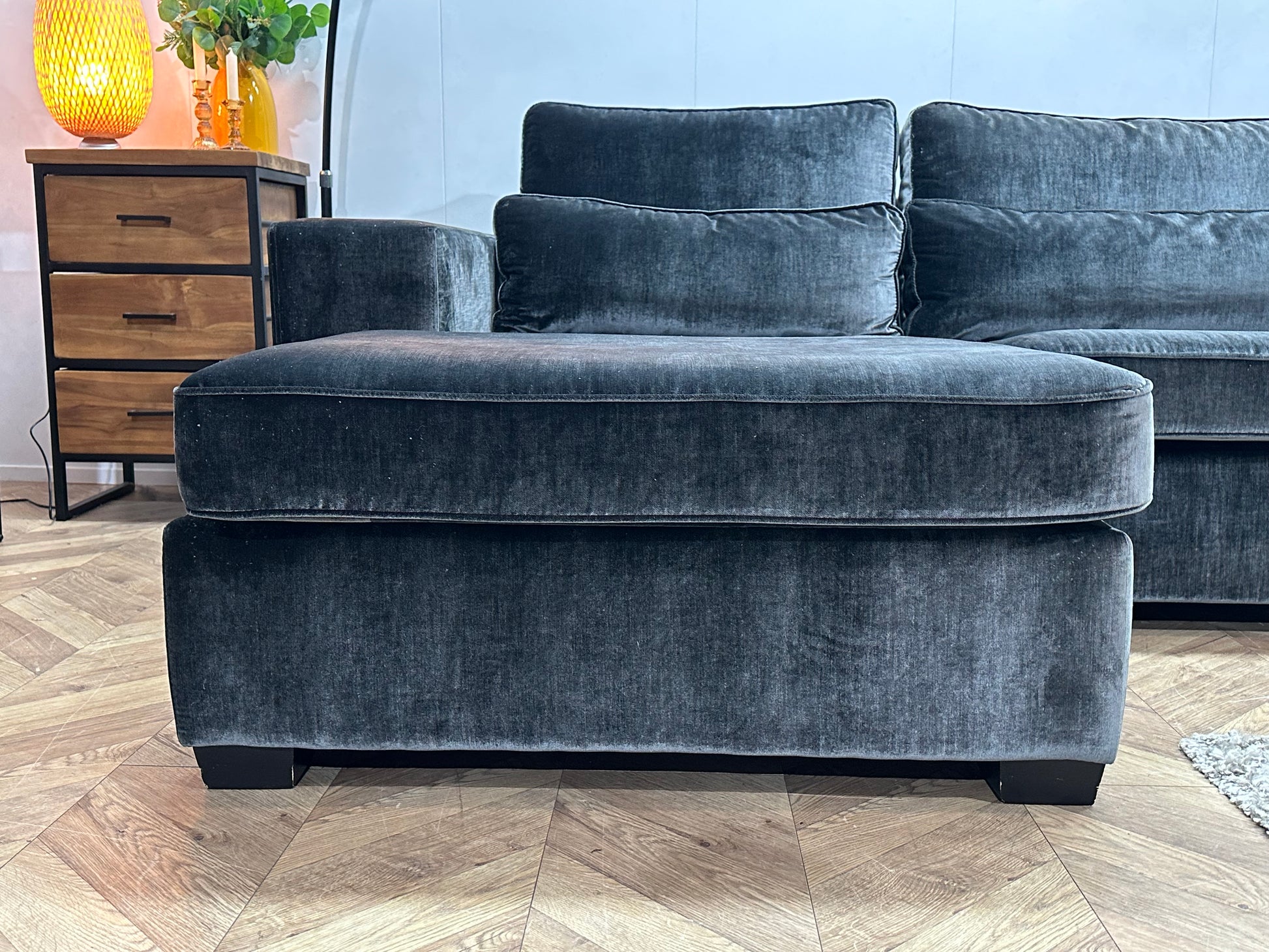 Antraciet Velvet Ruime U Bank ~ Losse Kussens Met Afneembare Hoezen