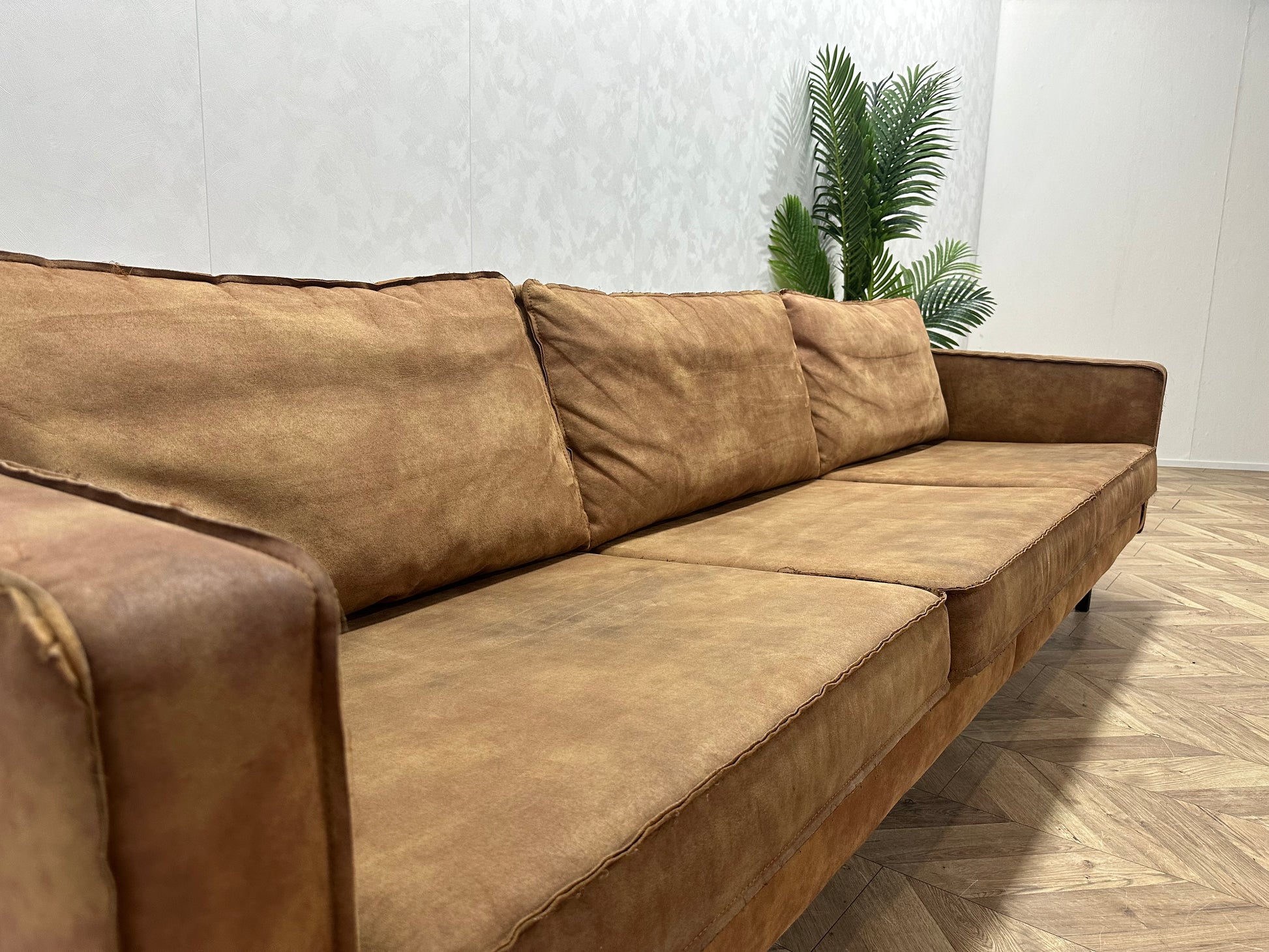 Be Pure Cognac Bruine Suède Lederen 3-Zits Bank