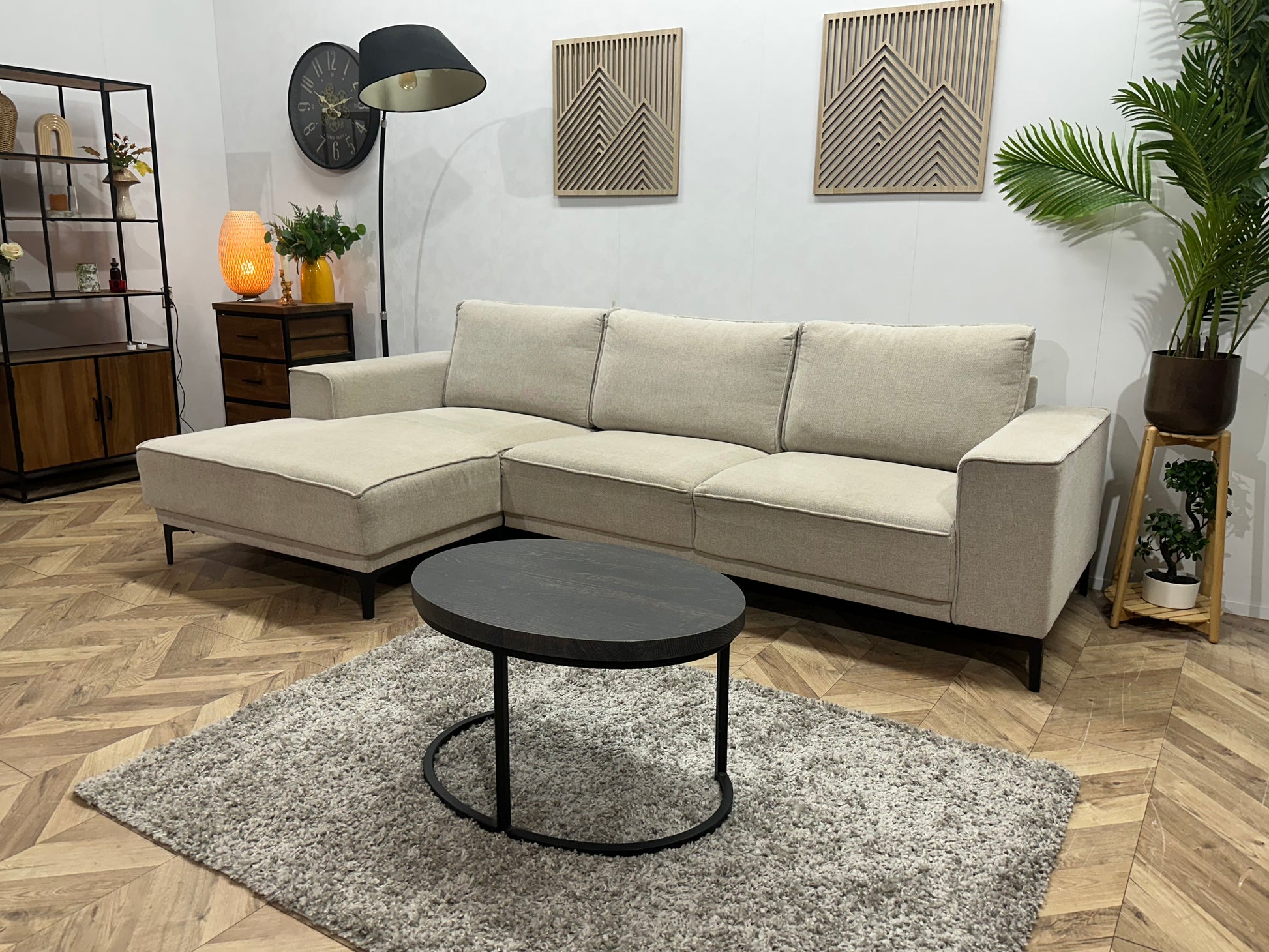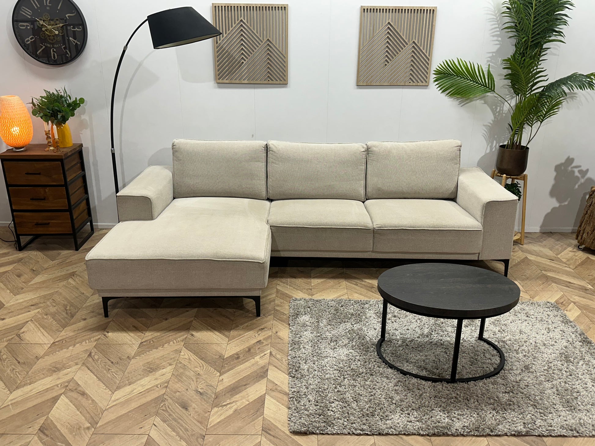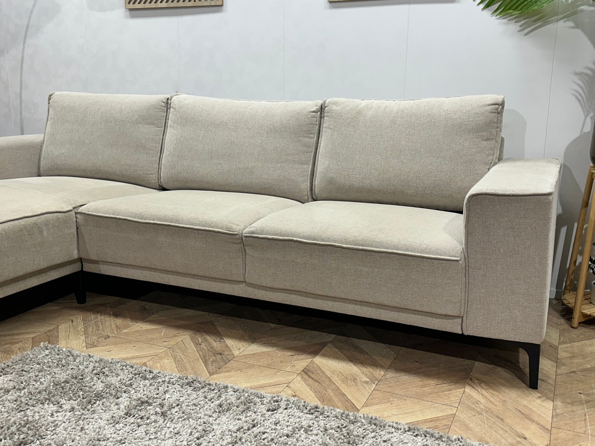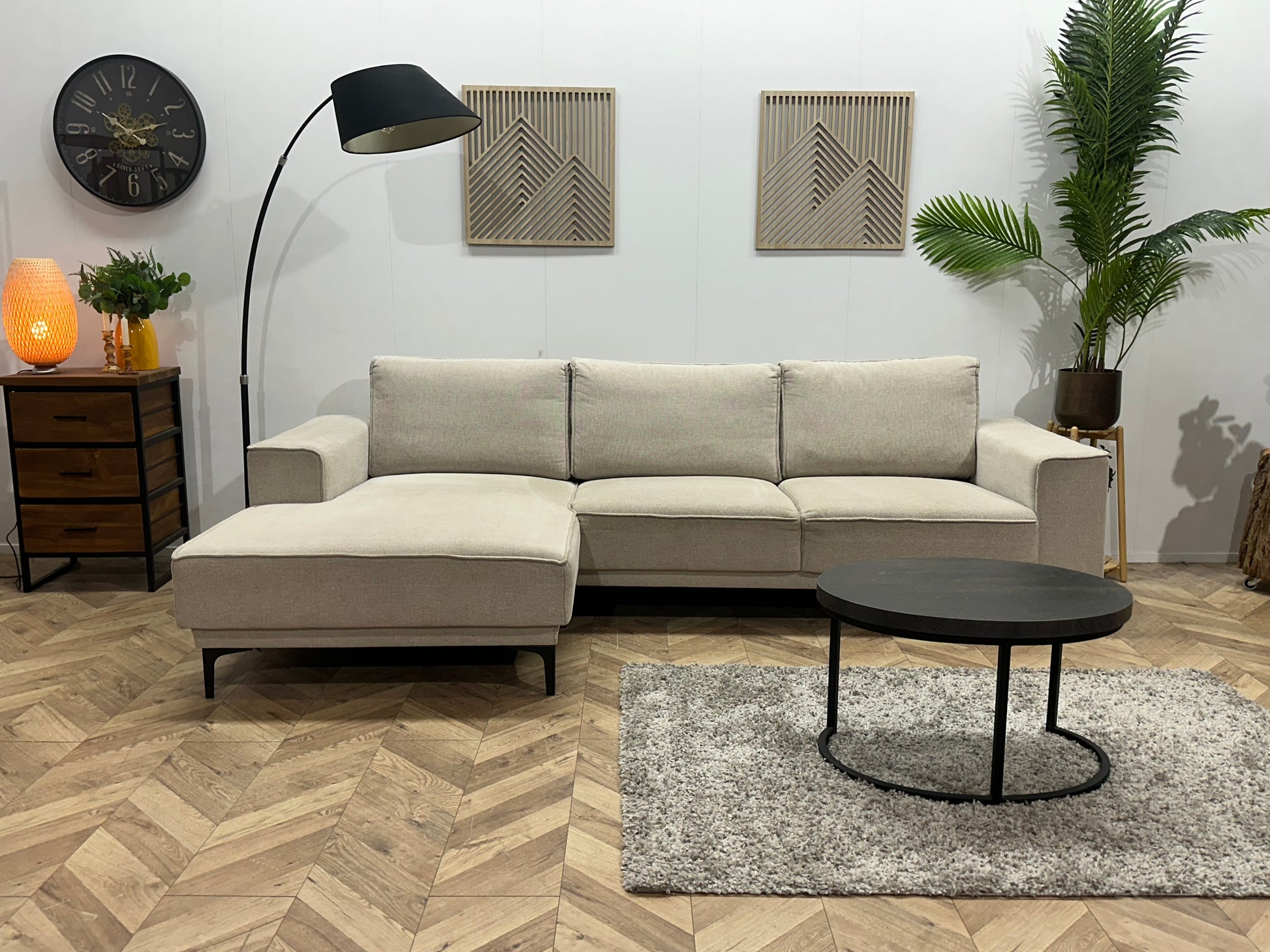 Beige Suède Stoffen Hoekbank ~ Losse Rugkussens Met Afneembare Hoezen