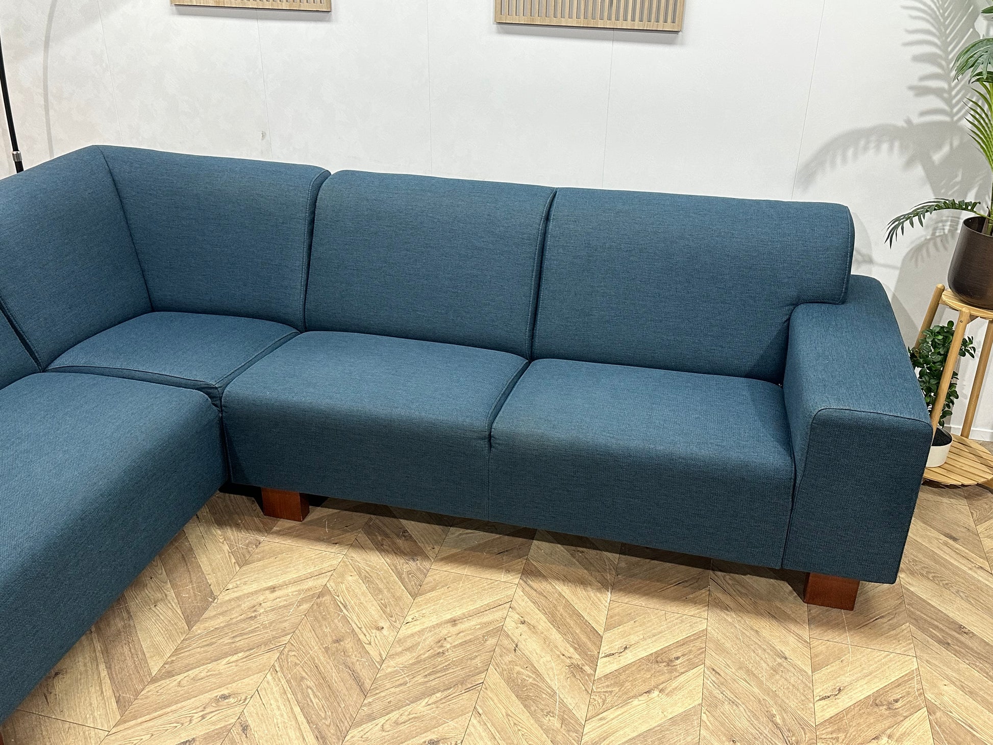 Blauwe Hoekbank Inc Hocker ~ Vaste Kussens