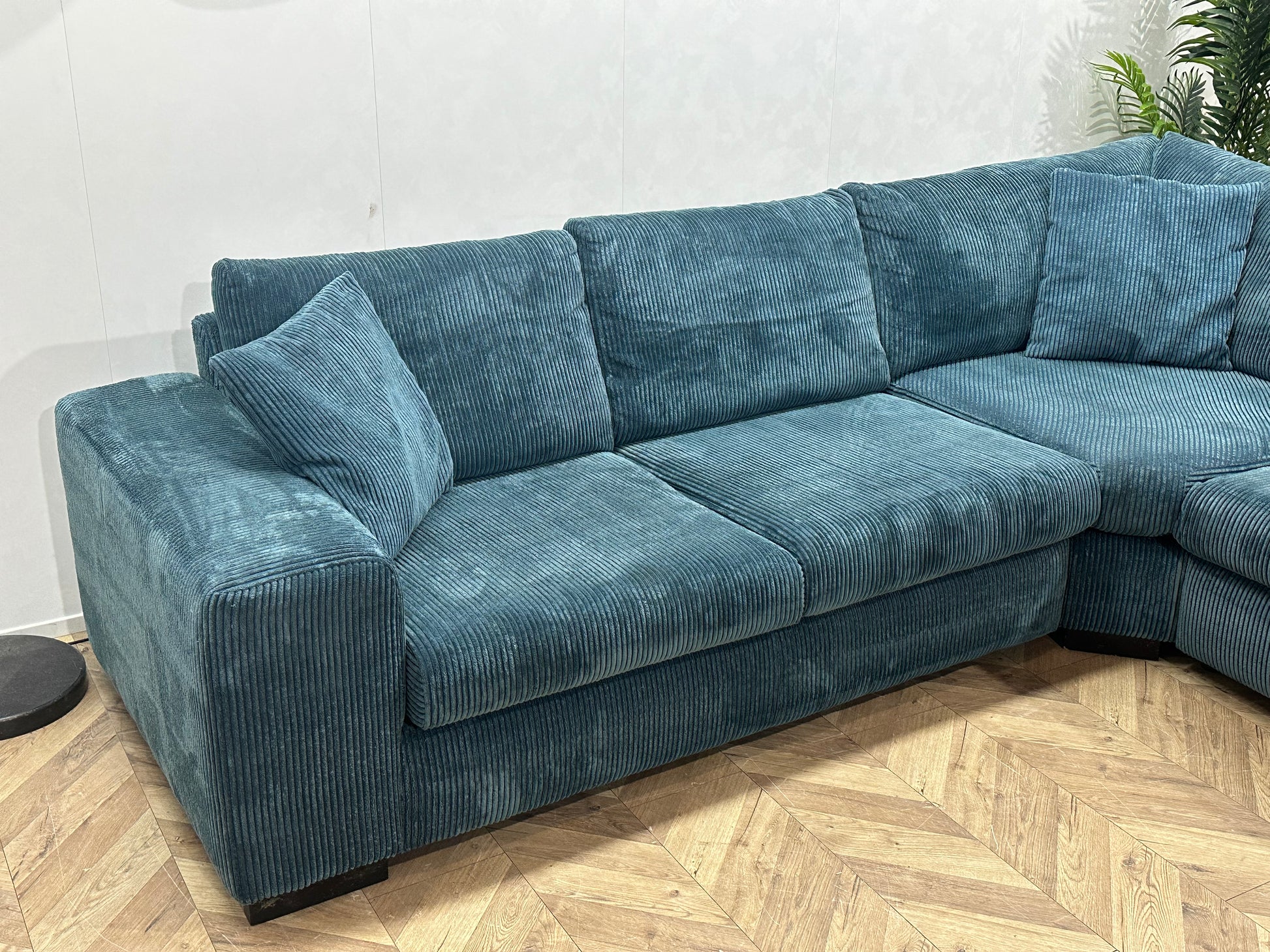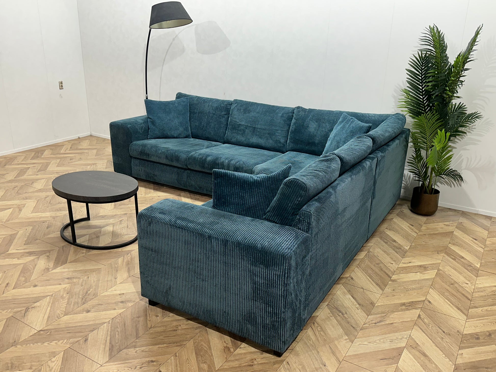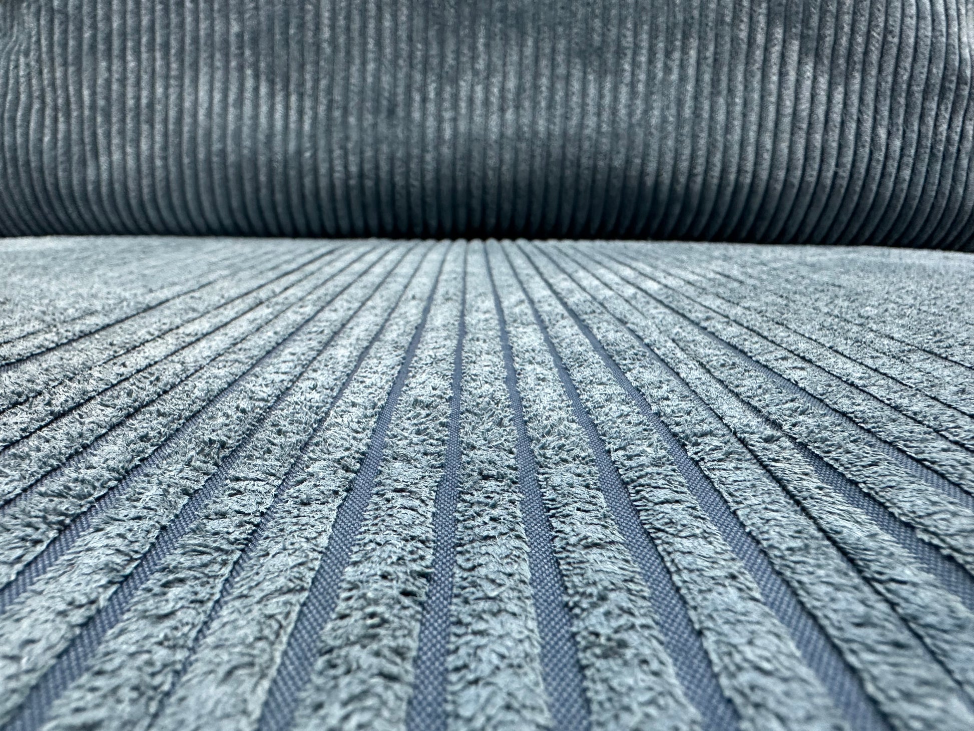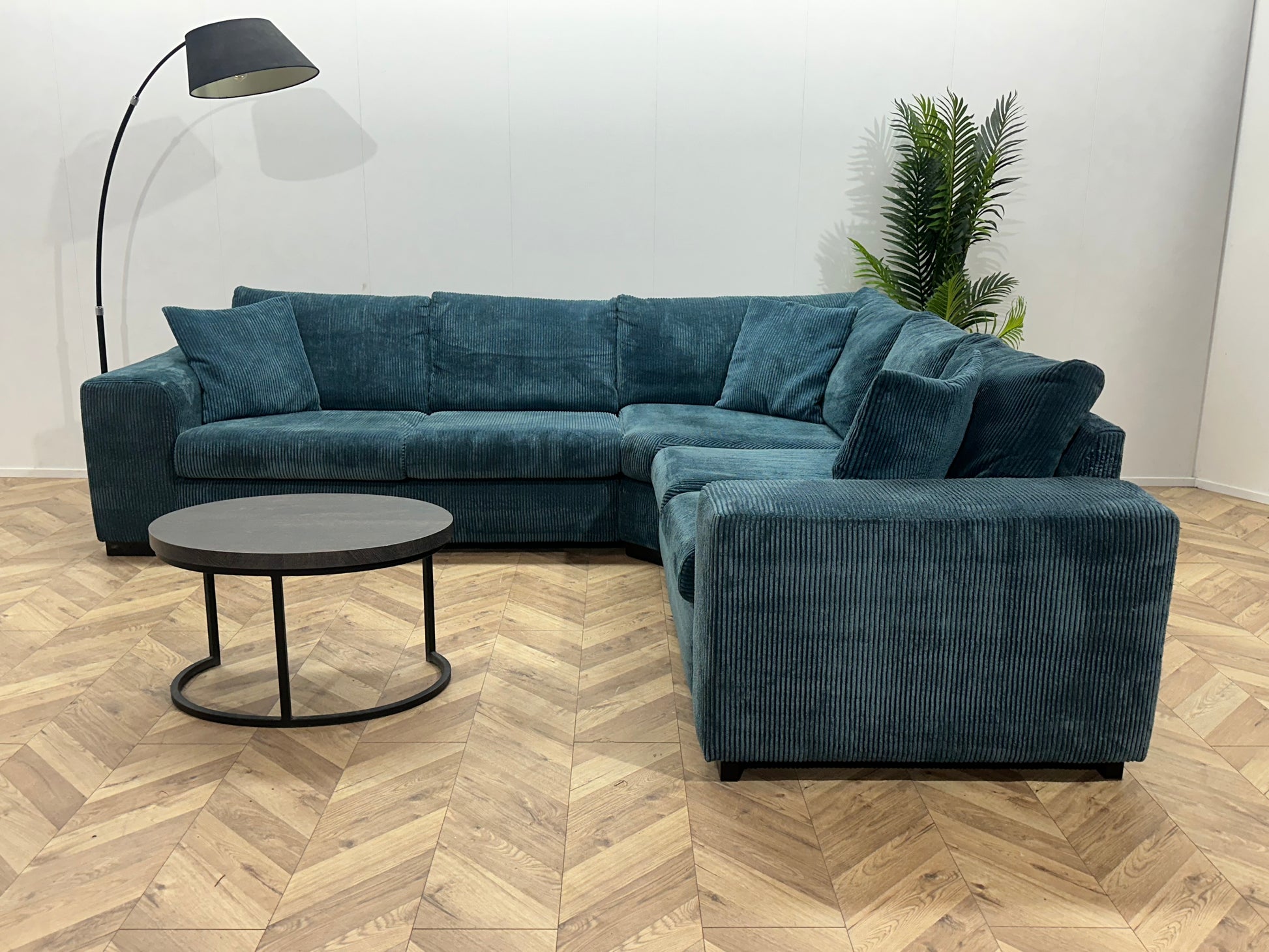 Blauwe Ribstof Hoekbank ~ Losse Kussens Met Afneembare Hoezen