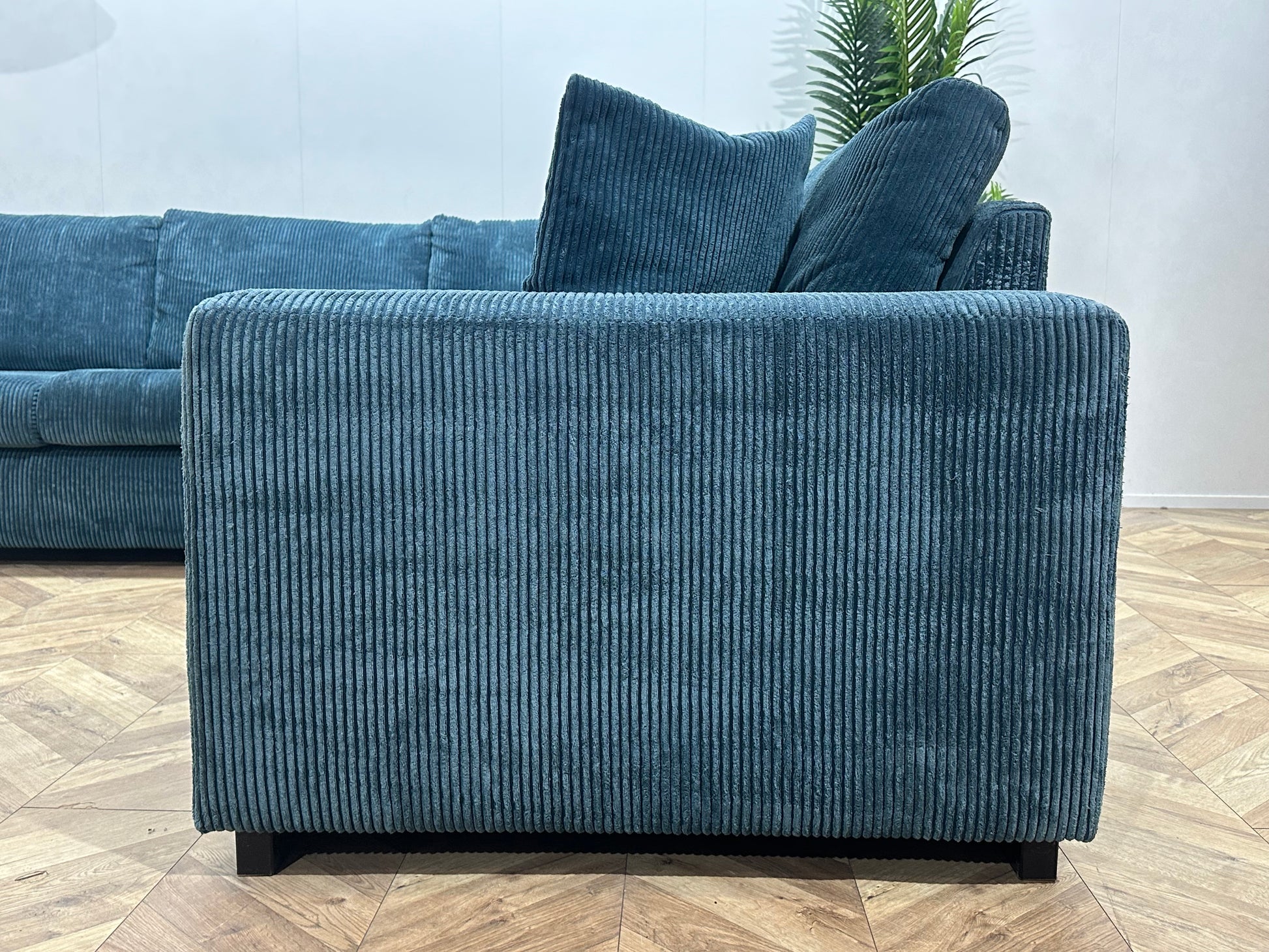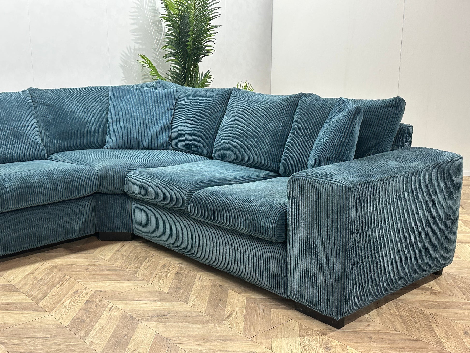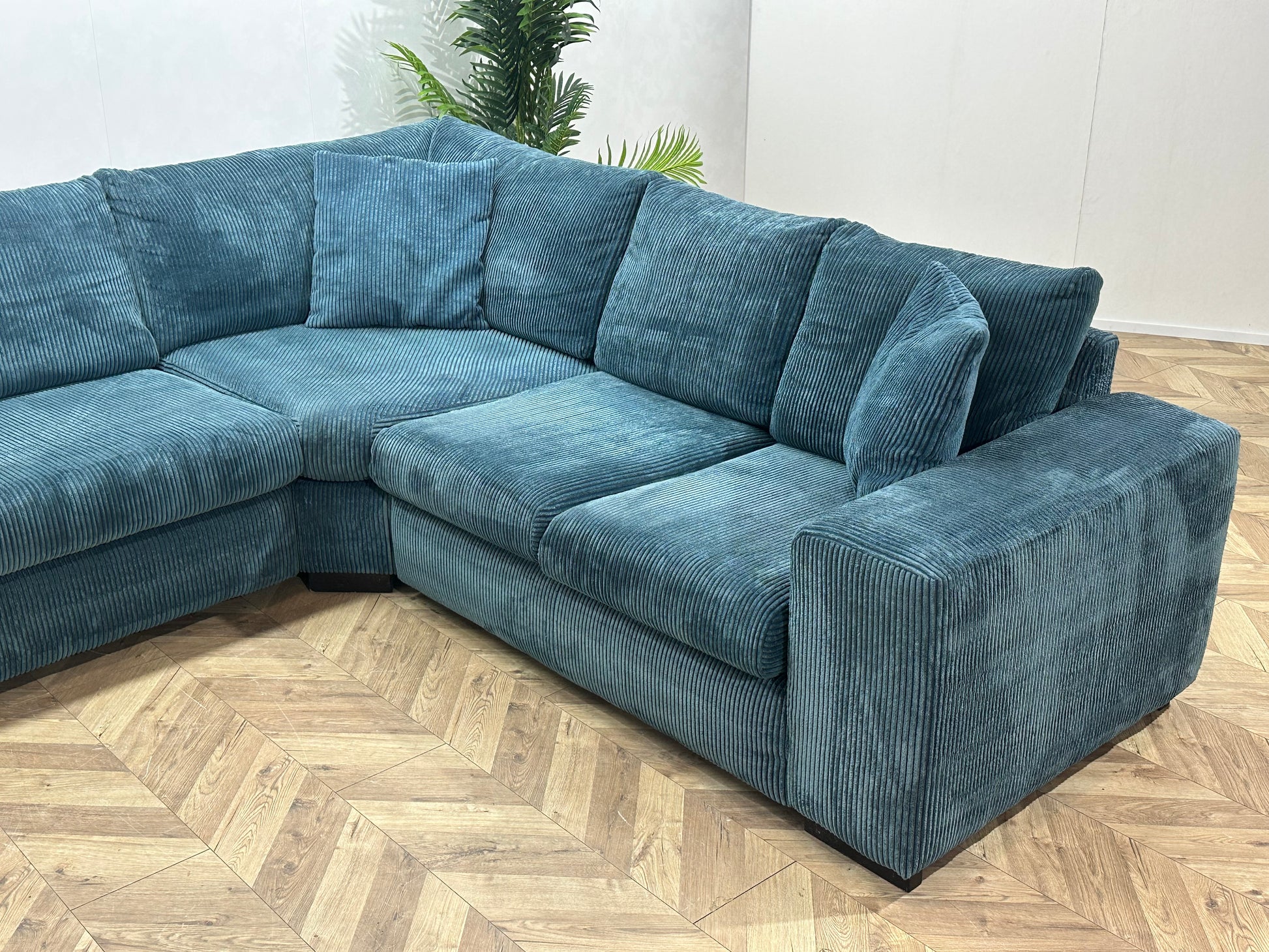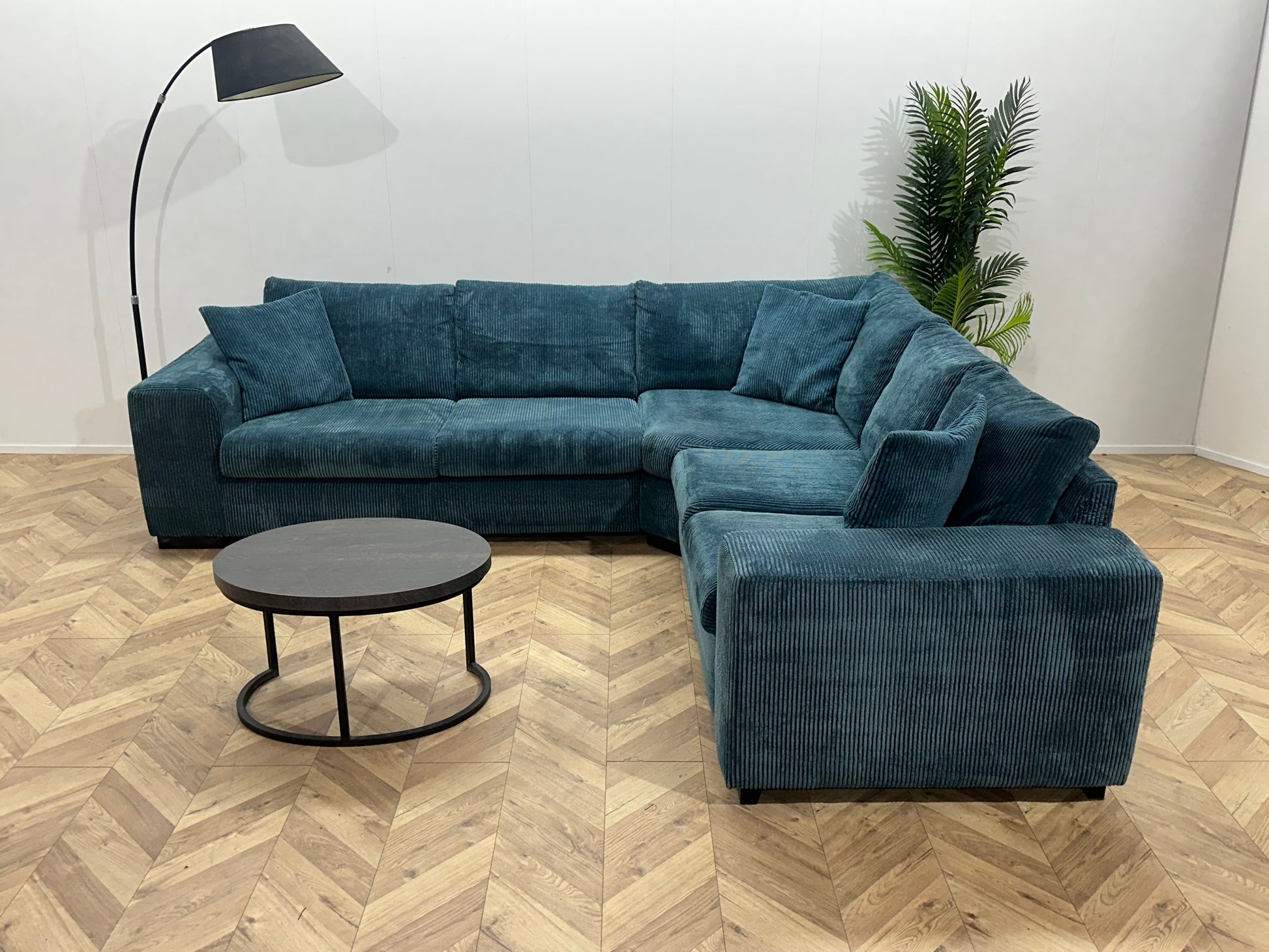 Blauwe Ribstof Hoekbank ~ Losse Kussens Met Afneembare Hoezen