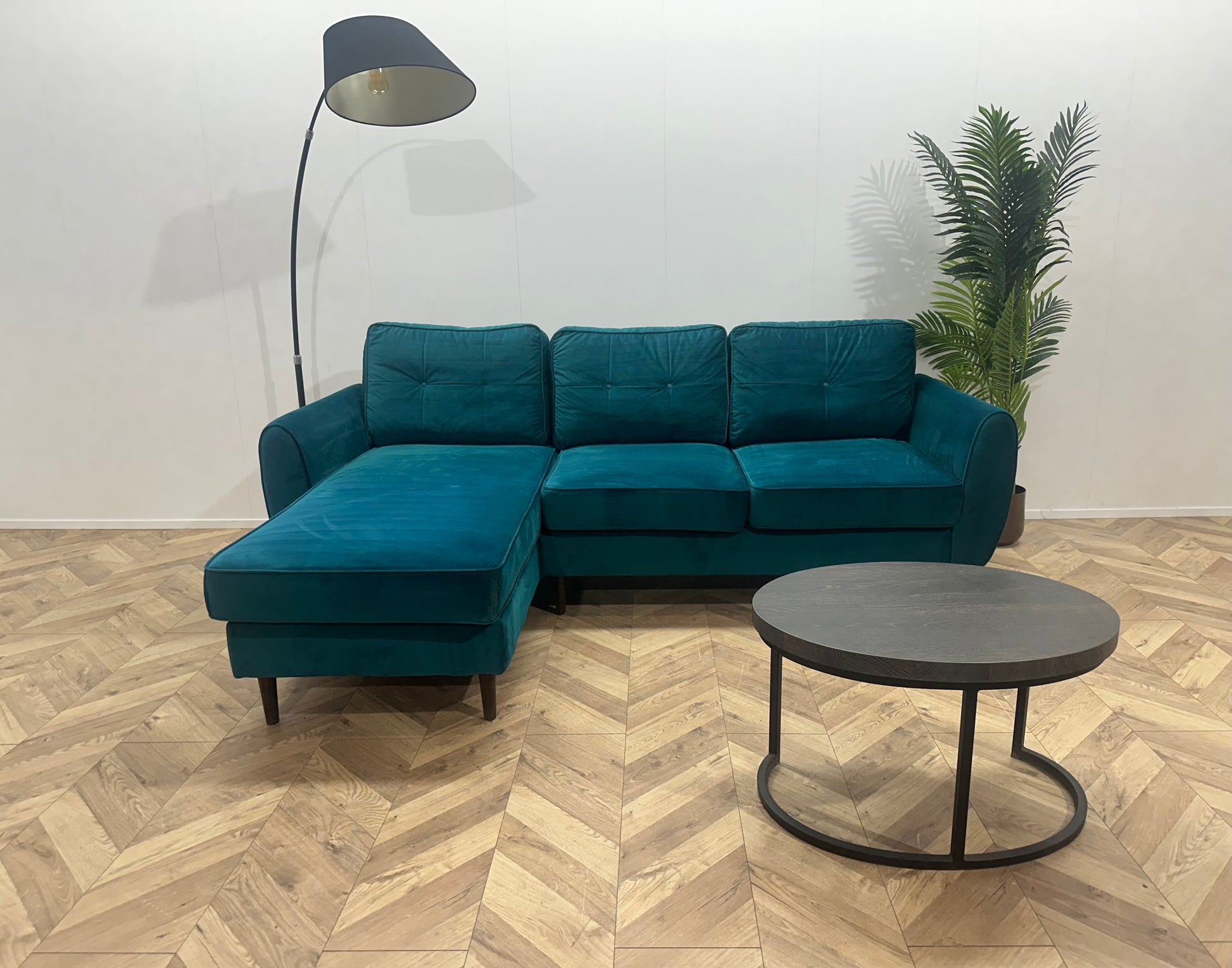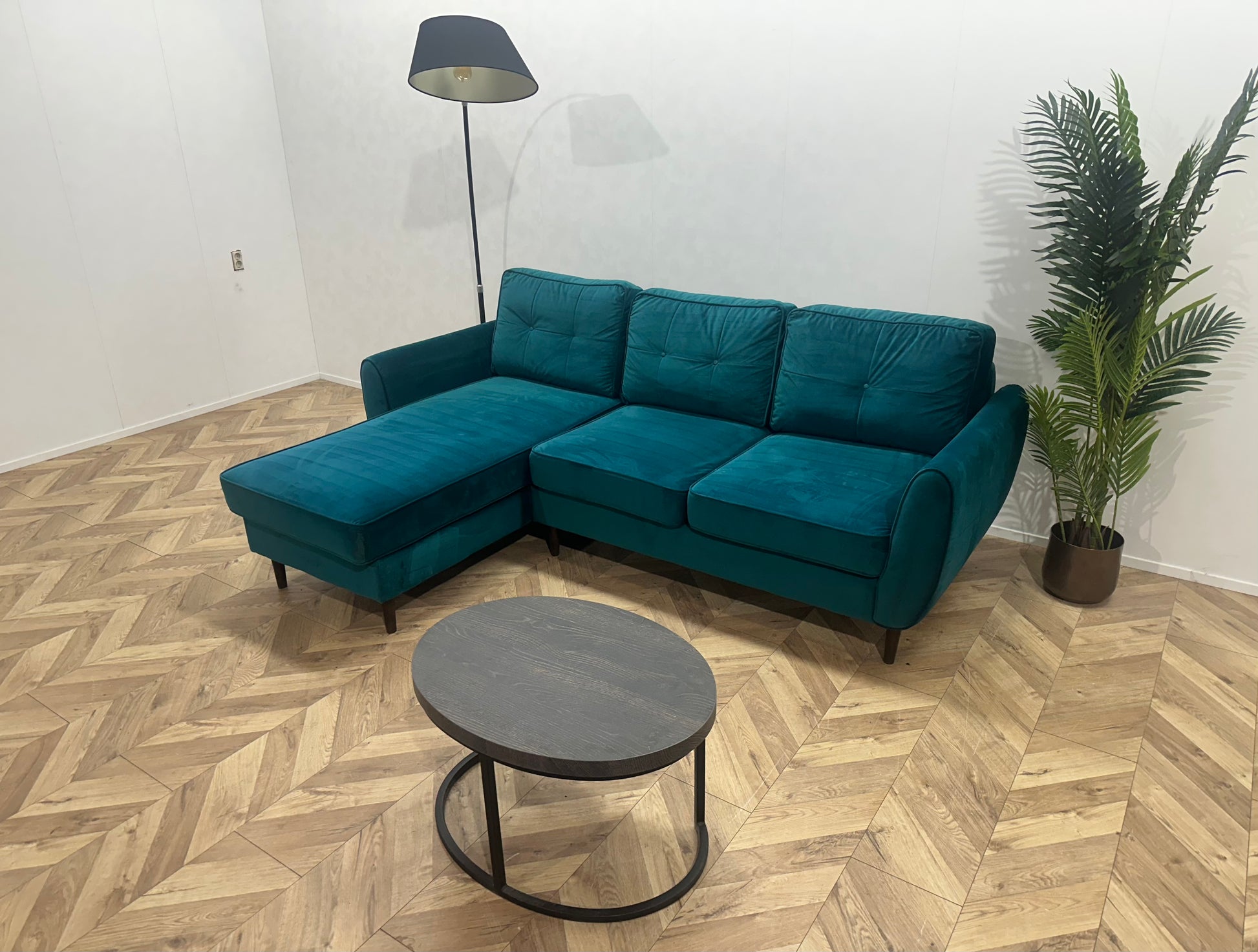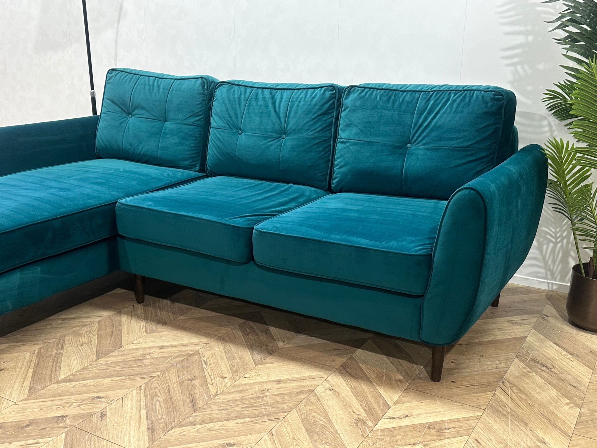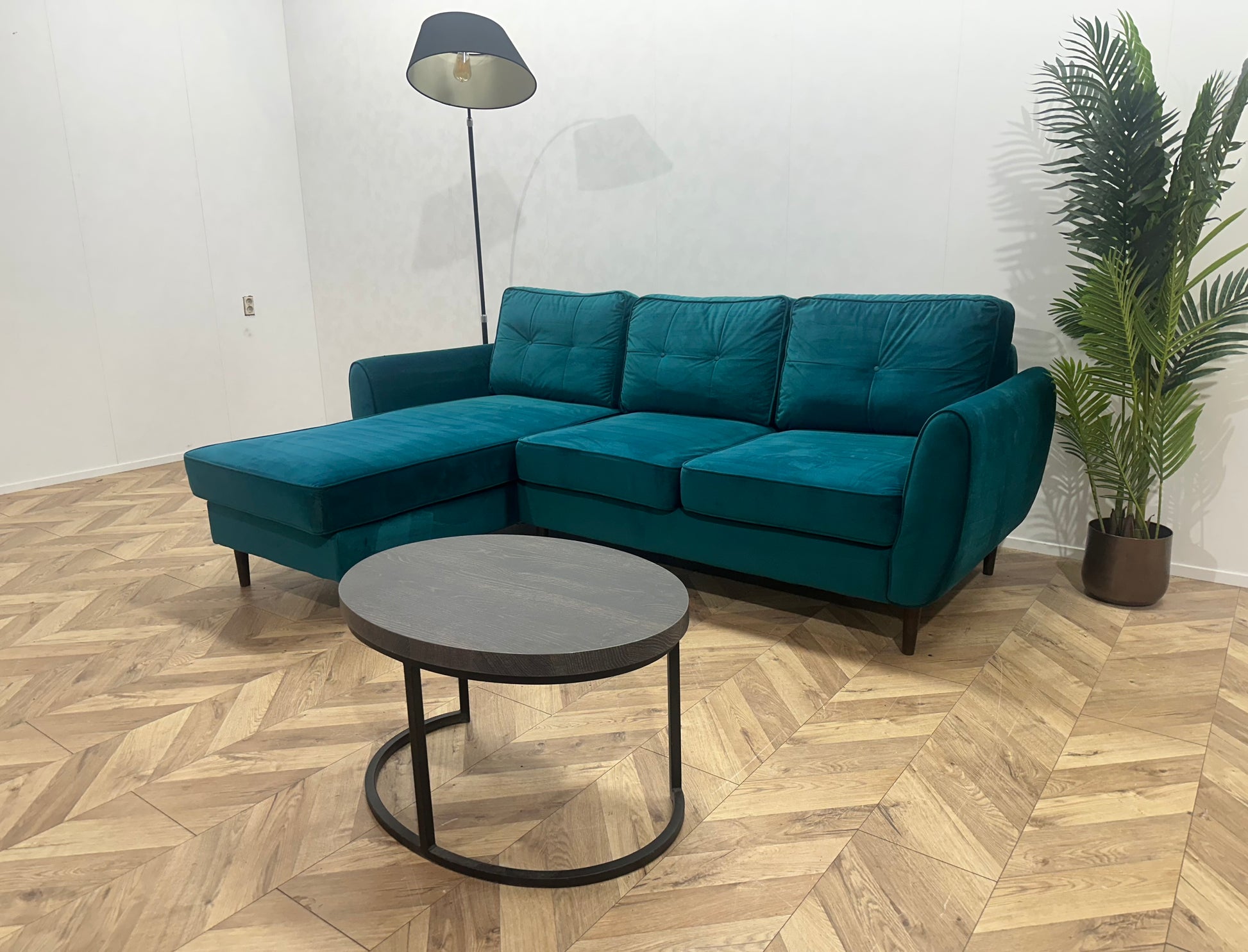 Blauwe Velvet Hoekbank ~ Losse Kussens Met Afneembare Hoezen