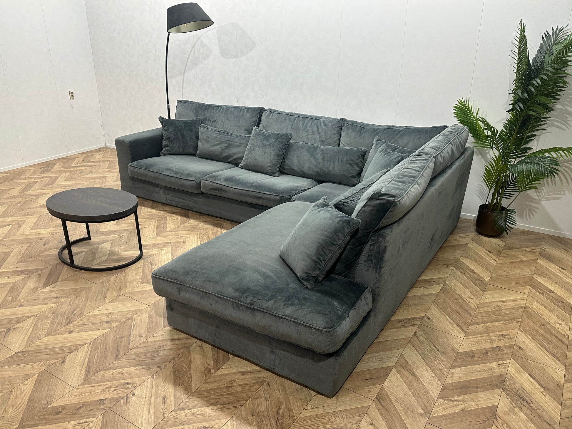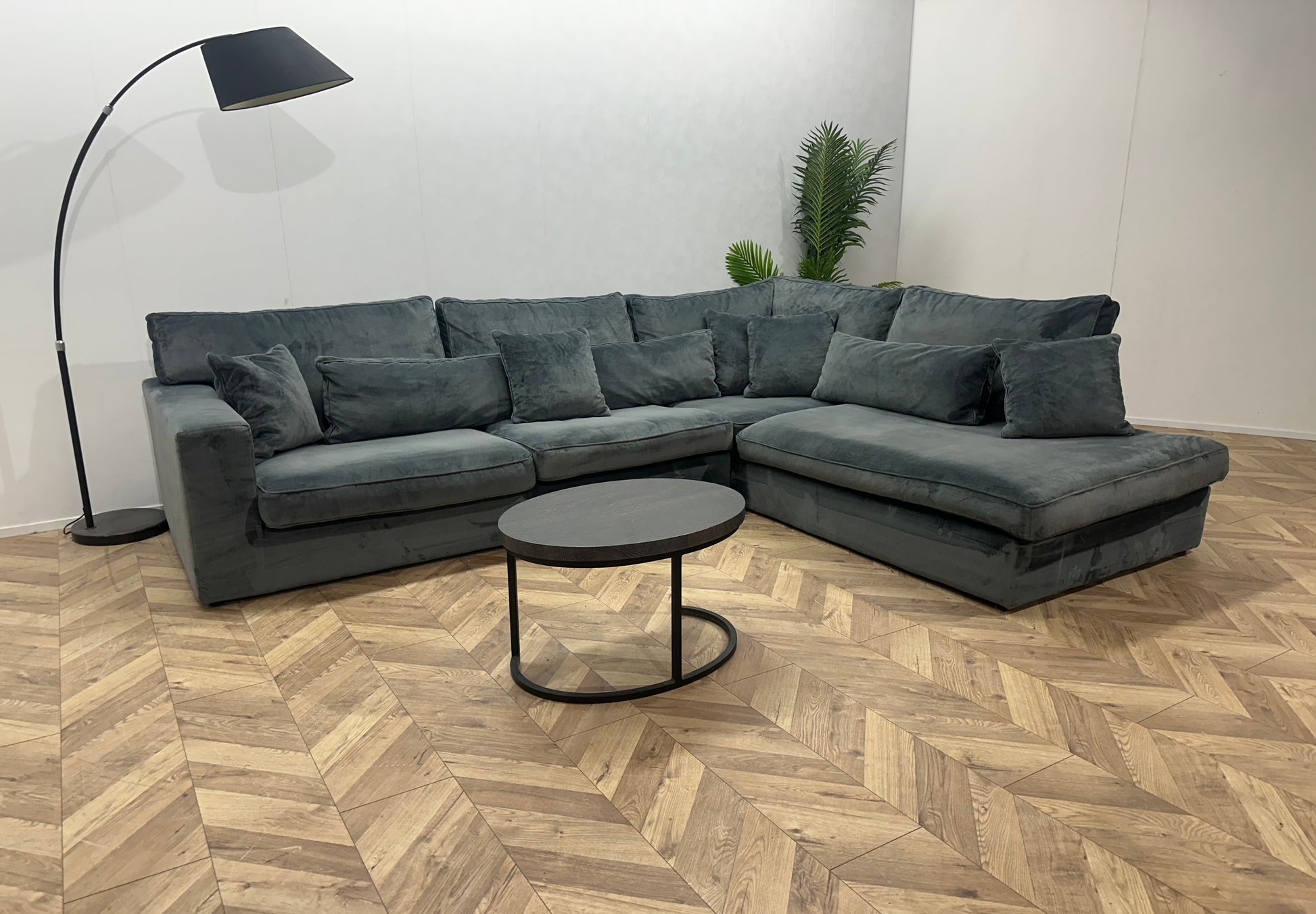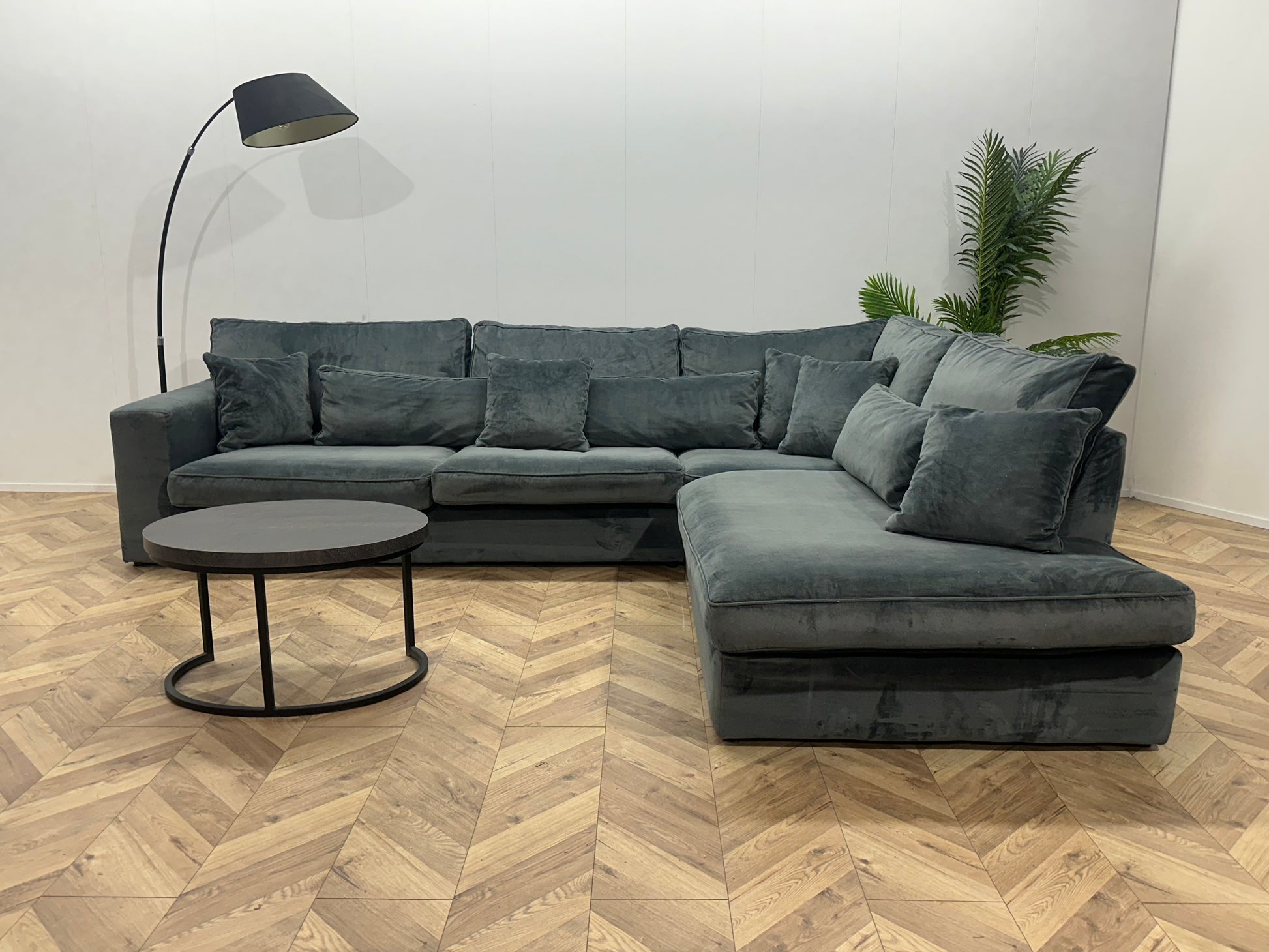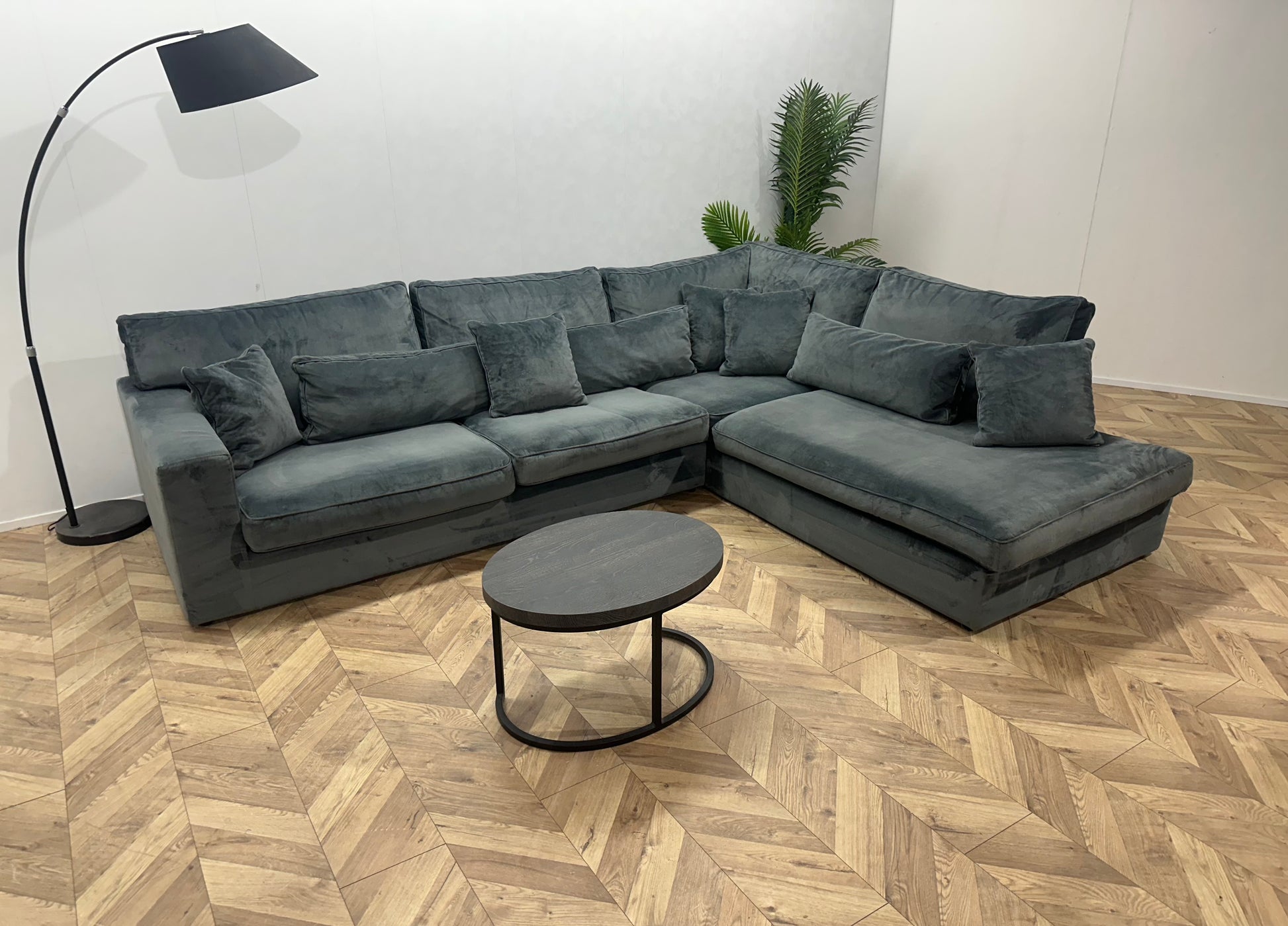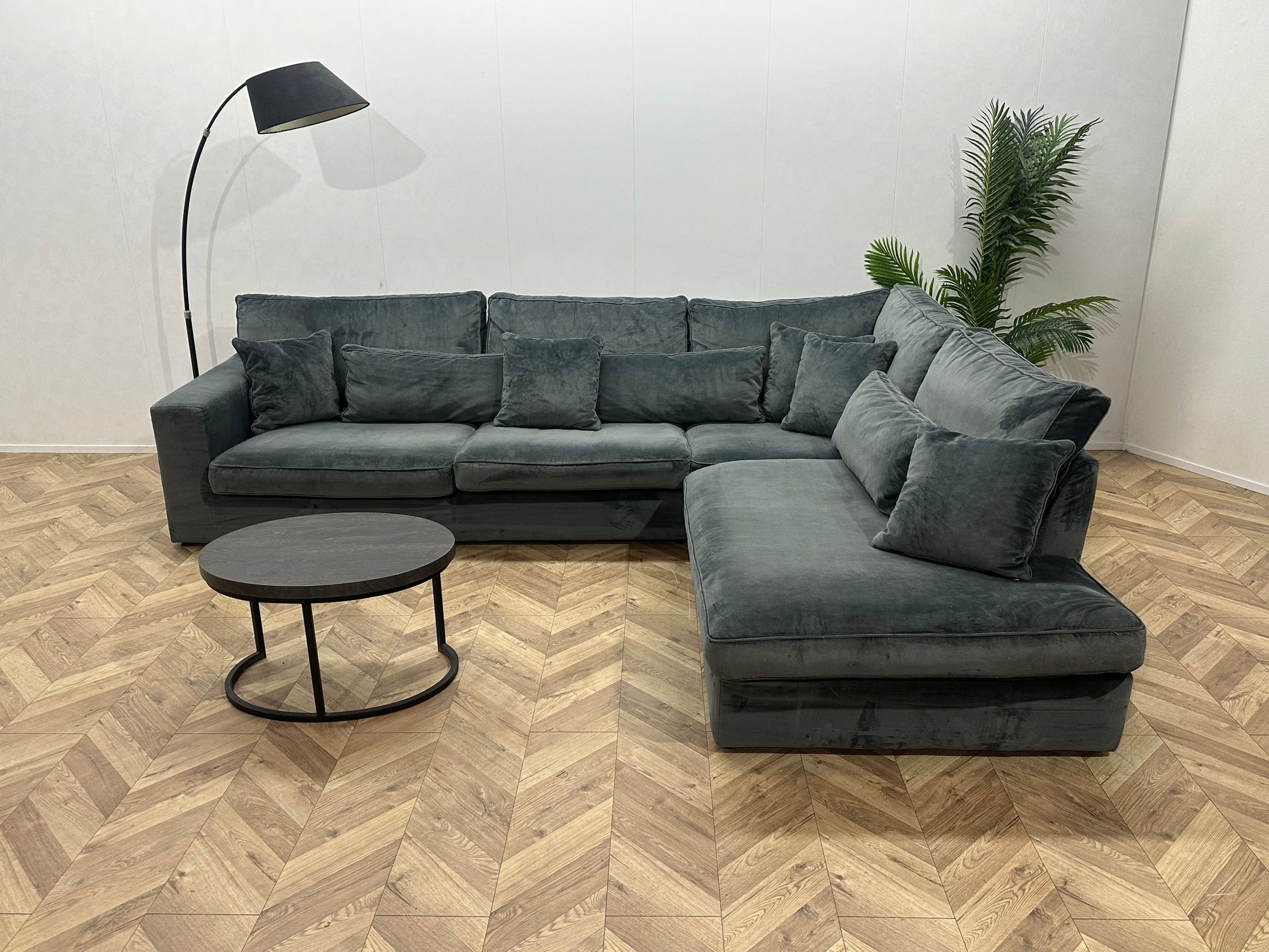 Blauwe Velvet Hoekbank ~ Losse Kussens Met Afneembare Hoezen
