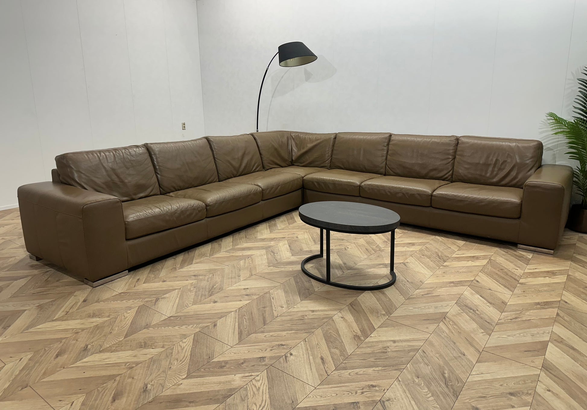 Bruin Echt Lederen Ruime Hoekbank ~ Vaste Kussens