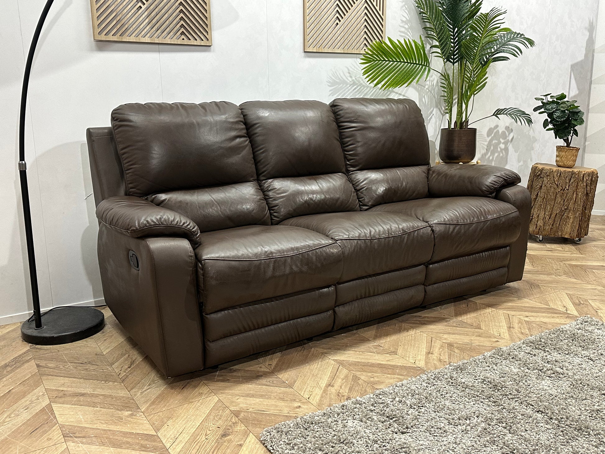 Bruine Echt Lederen 3-Zits Bank ~ Relaxfunctie