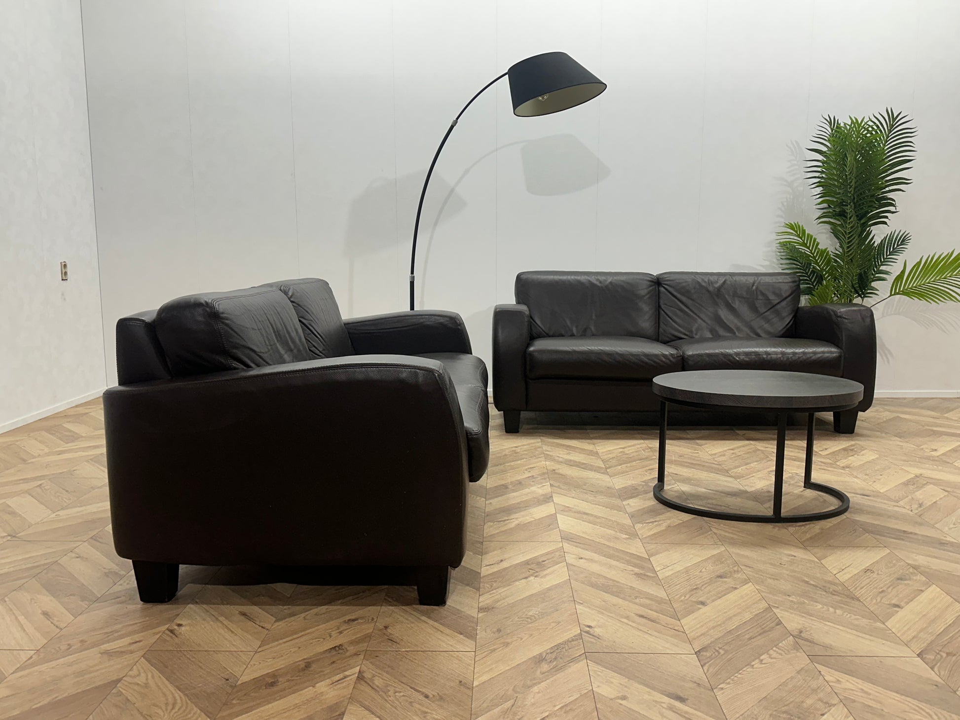 Bruine Echt Lederen Banken Set ~ Vaste Kussens