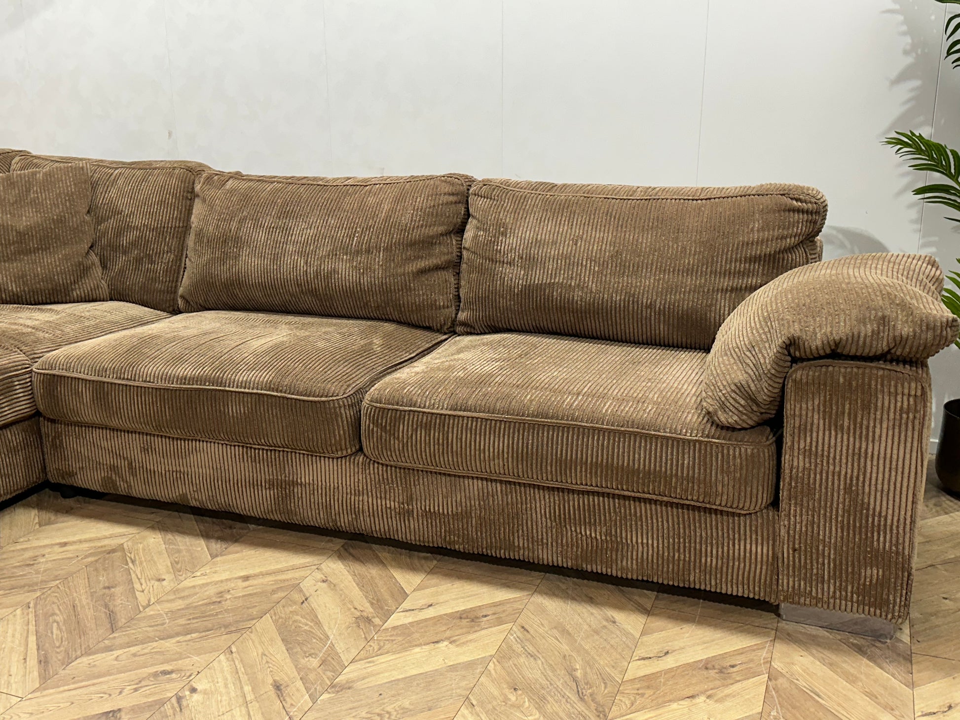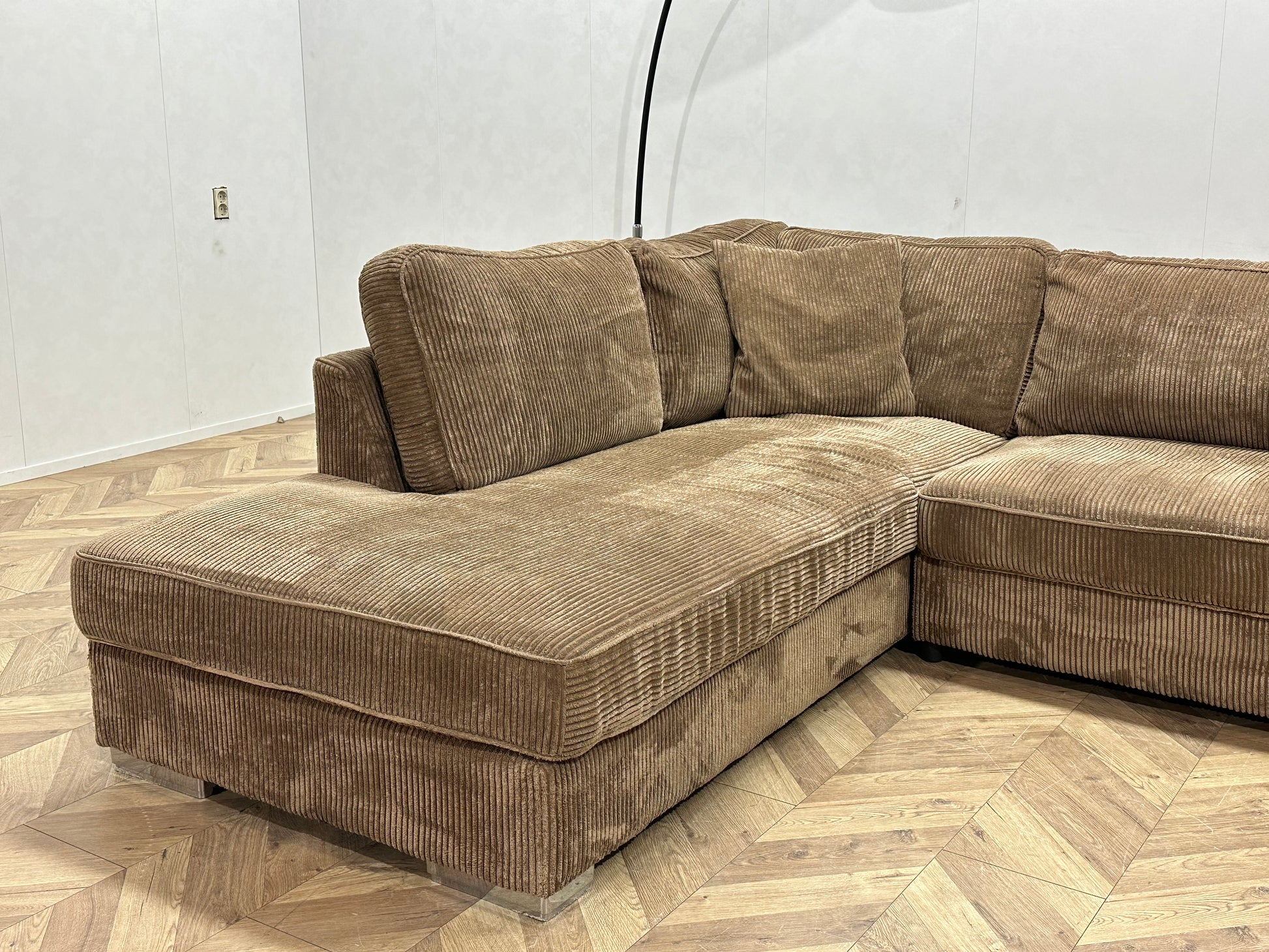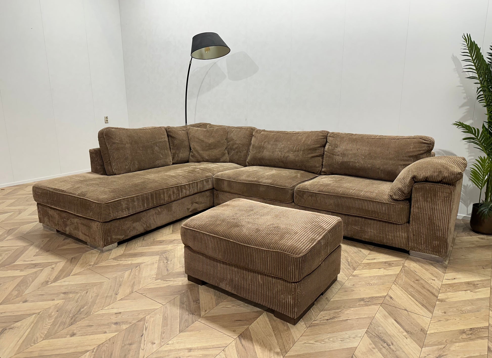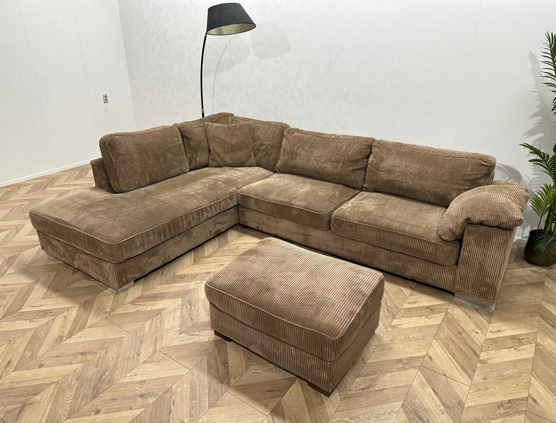 Bruine Ribstof Hoekbank ~ Losse Kussens Met Afneembare Hoezen
