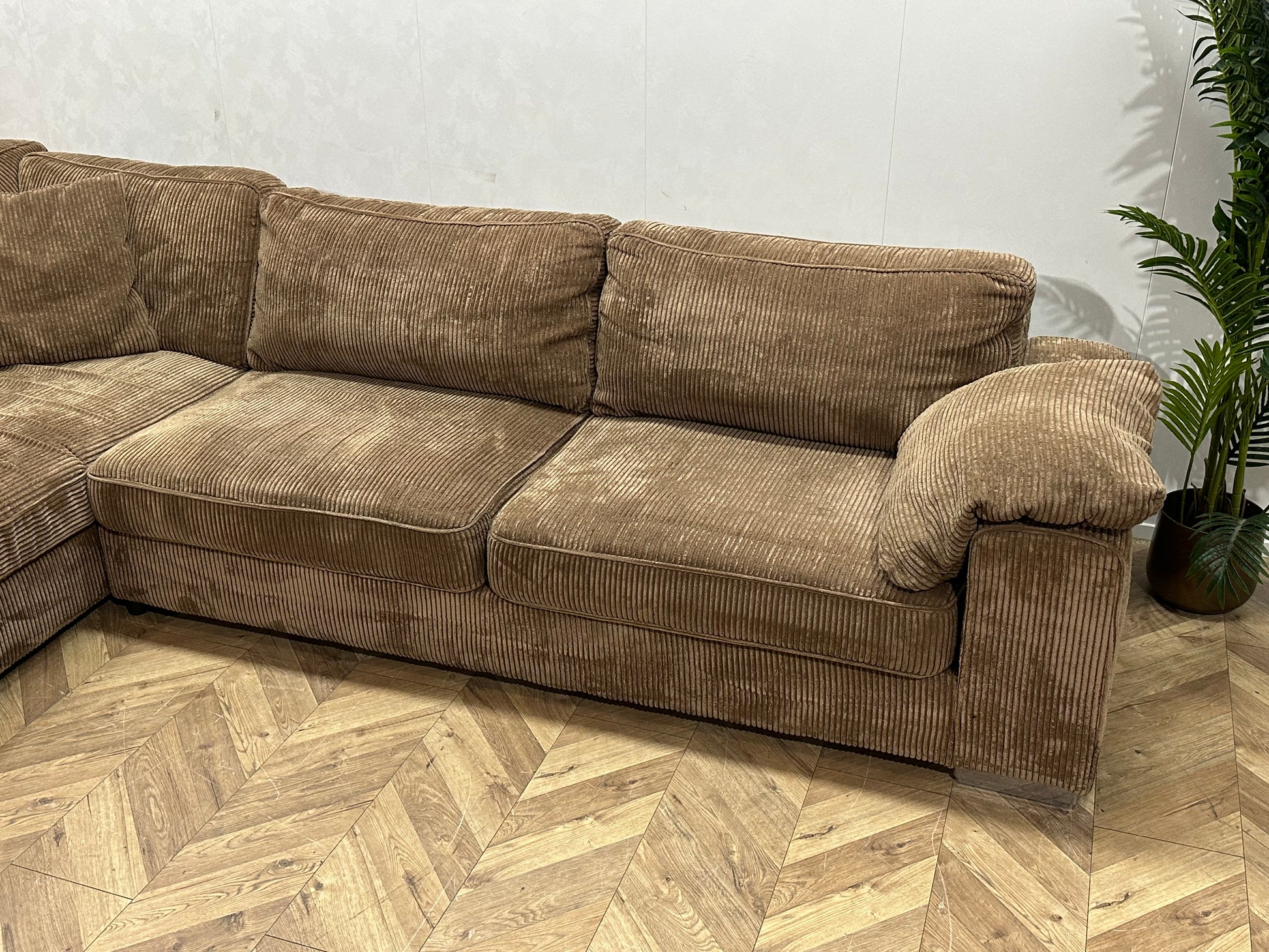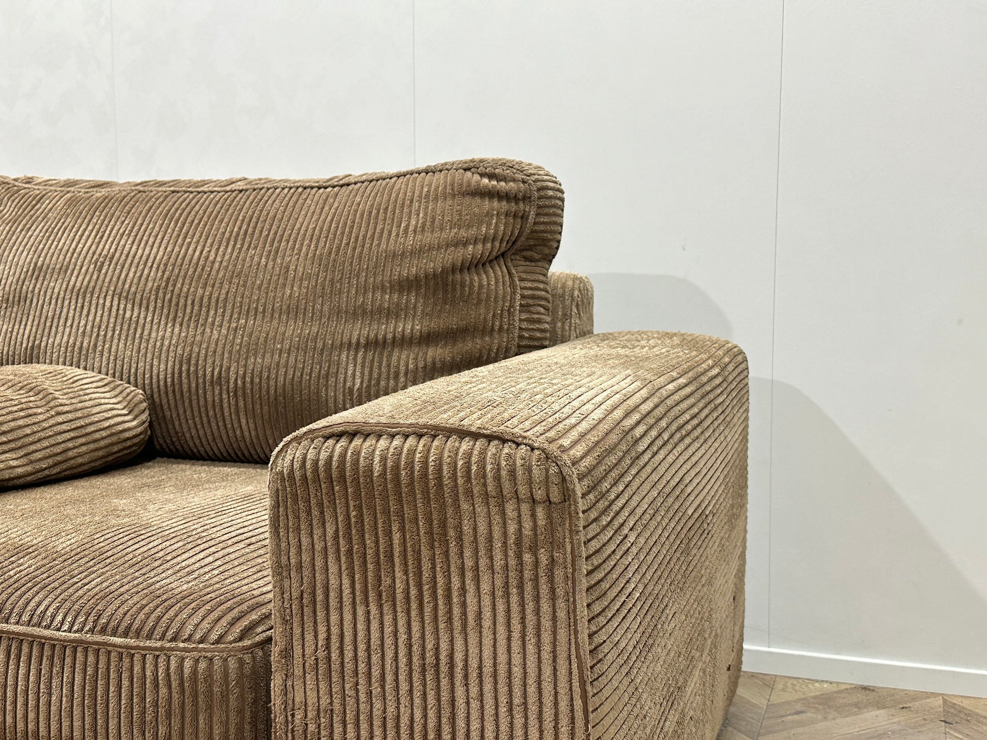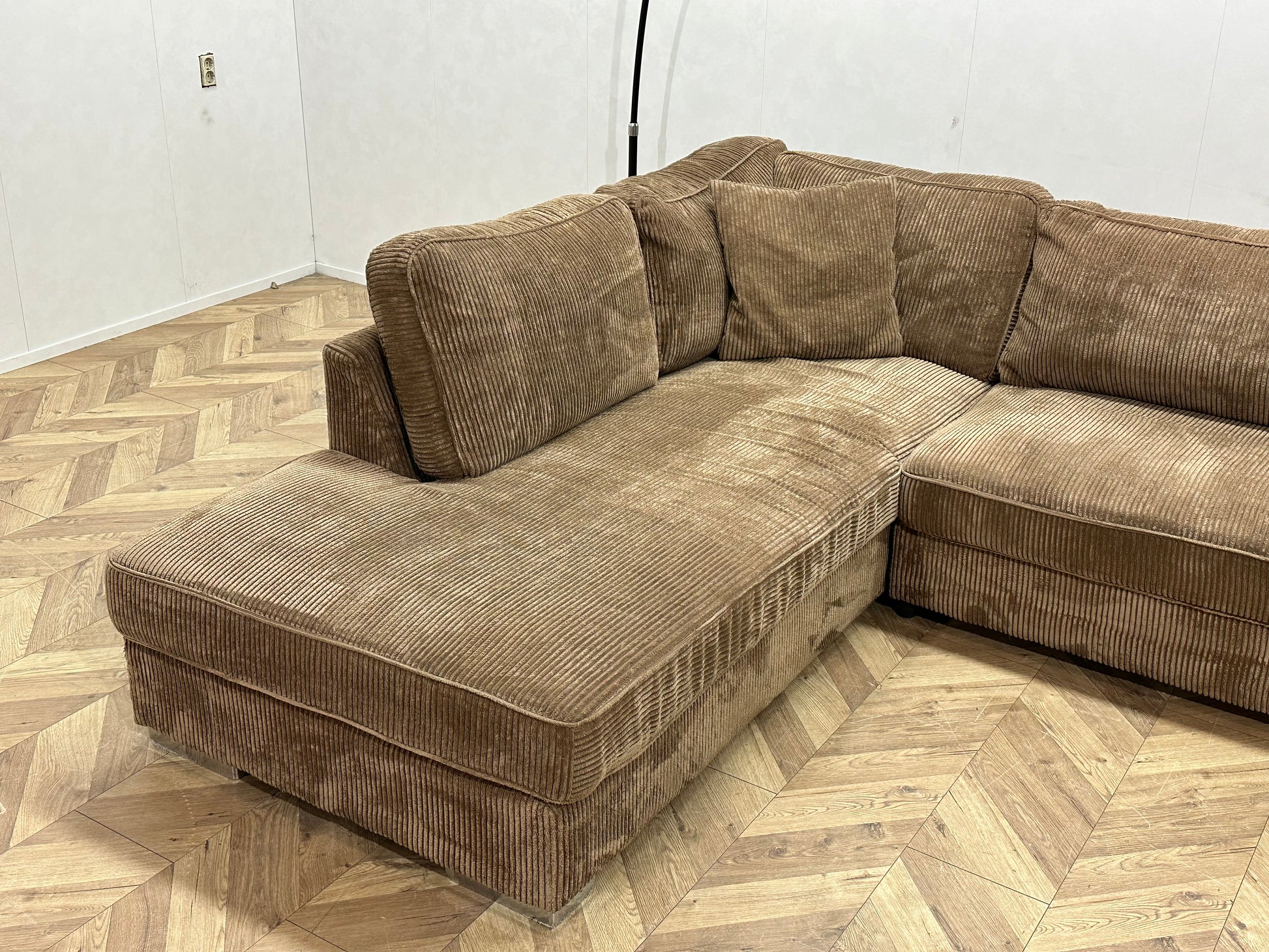 Bruine Ribstof Hoekbank ~ Losse Kussens Met Afneembare Hoezen