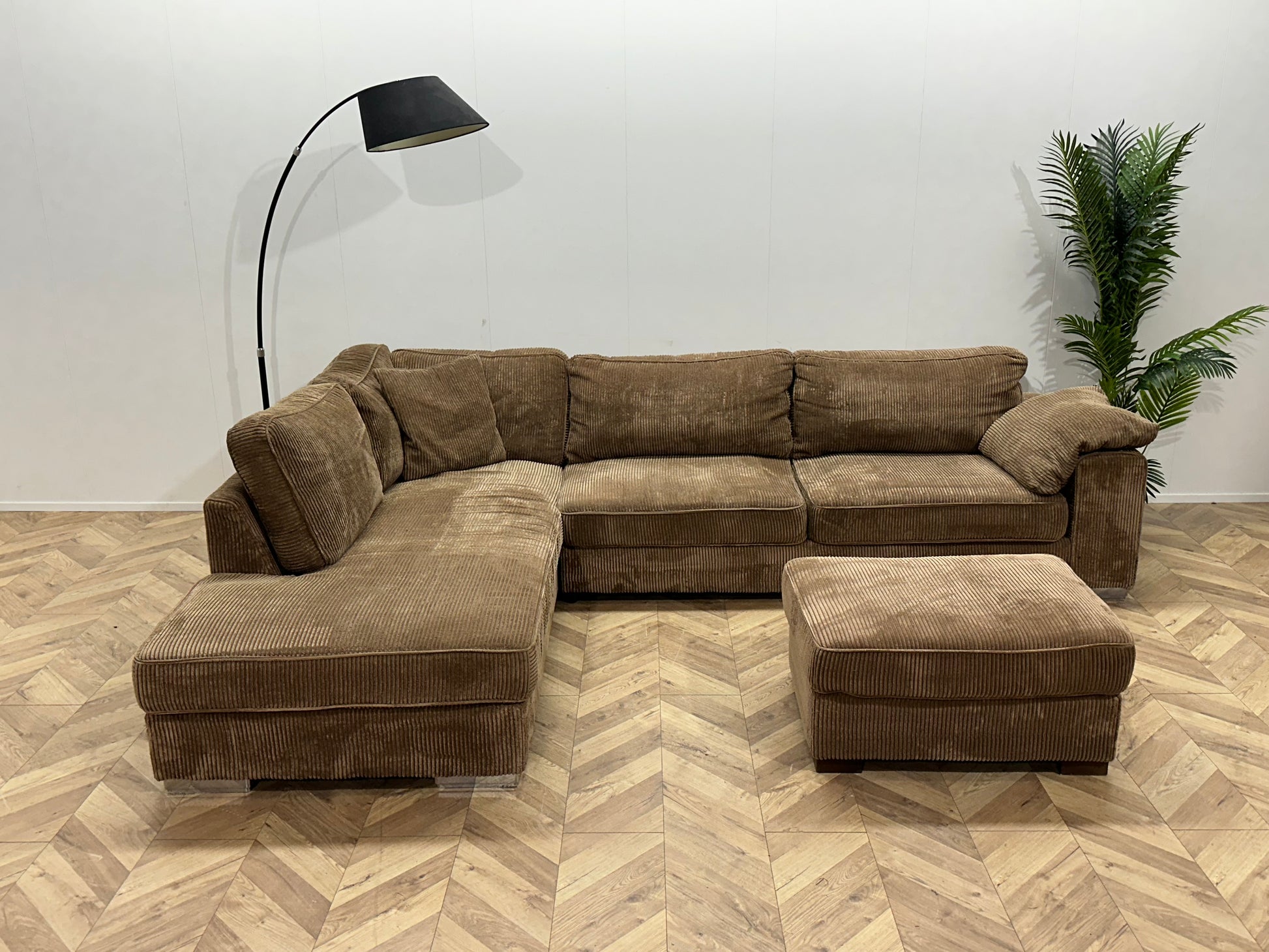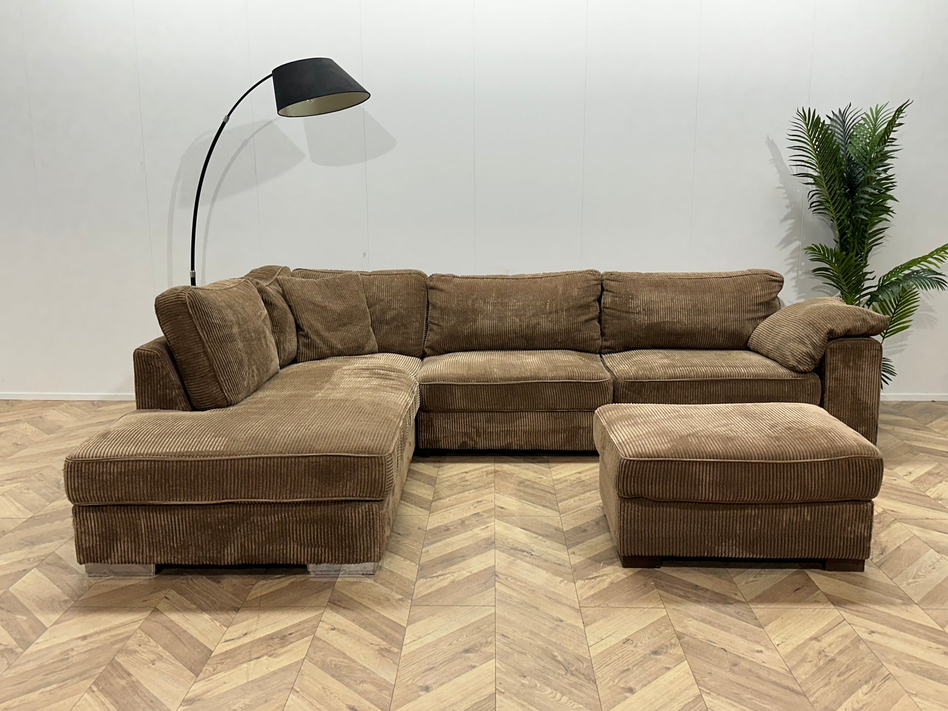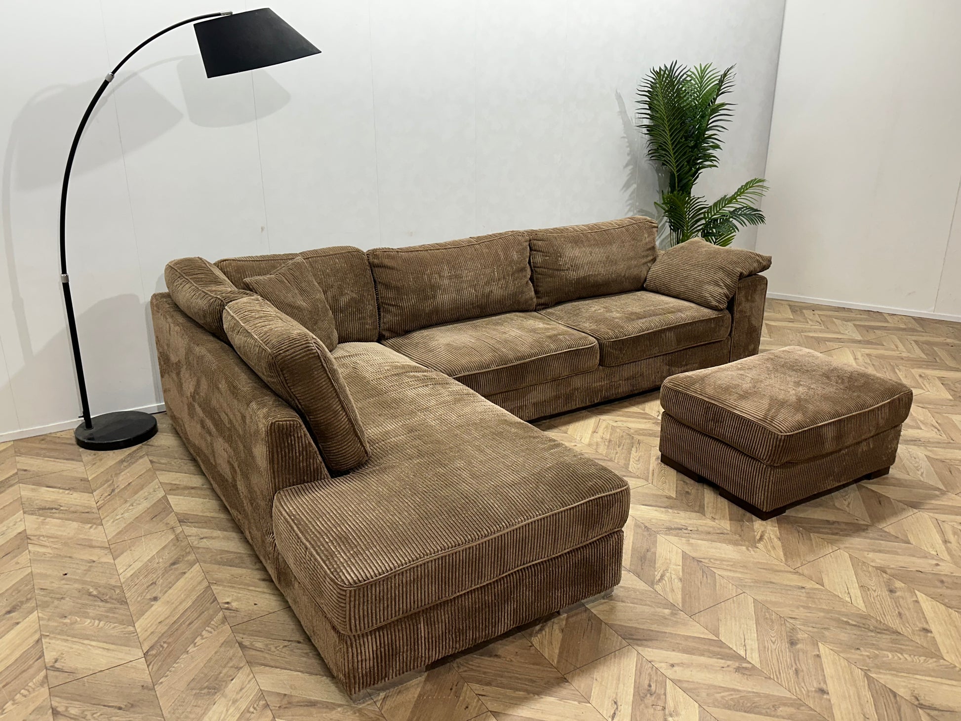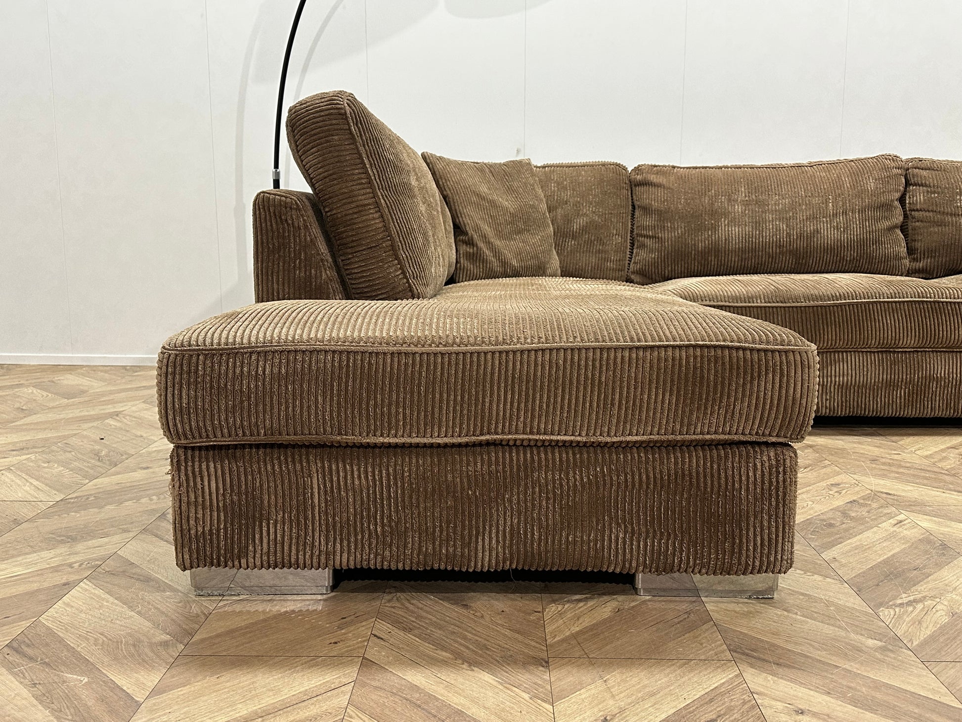 Bruine Ribstof Hoekbank ~ Losse Kussens Met Afneembare Hoezen