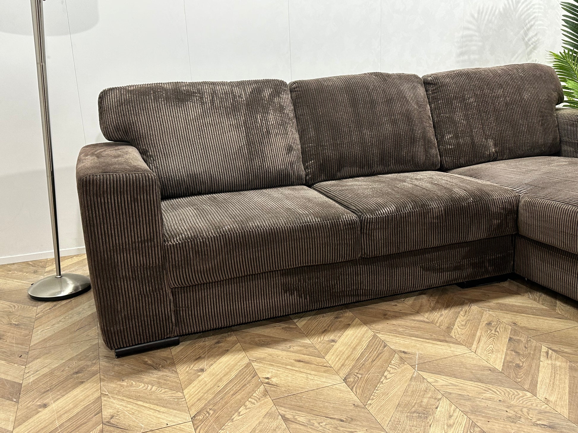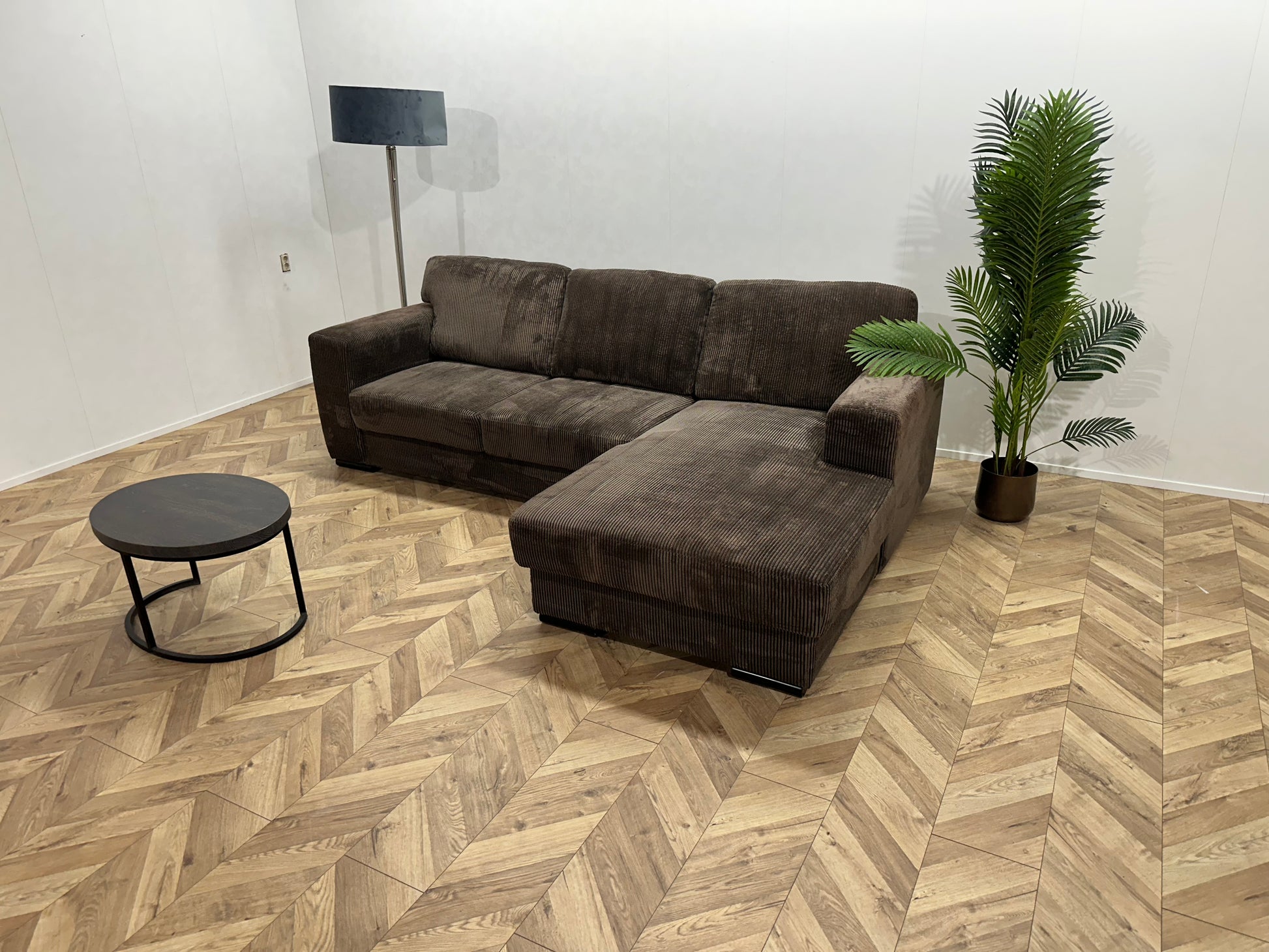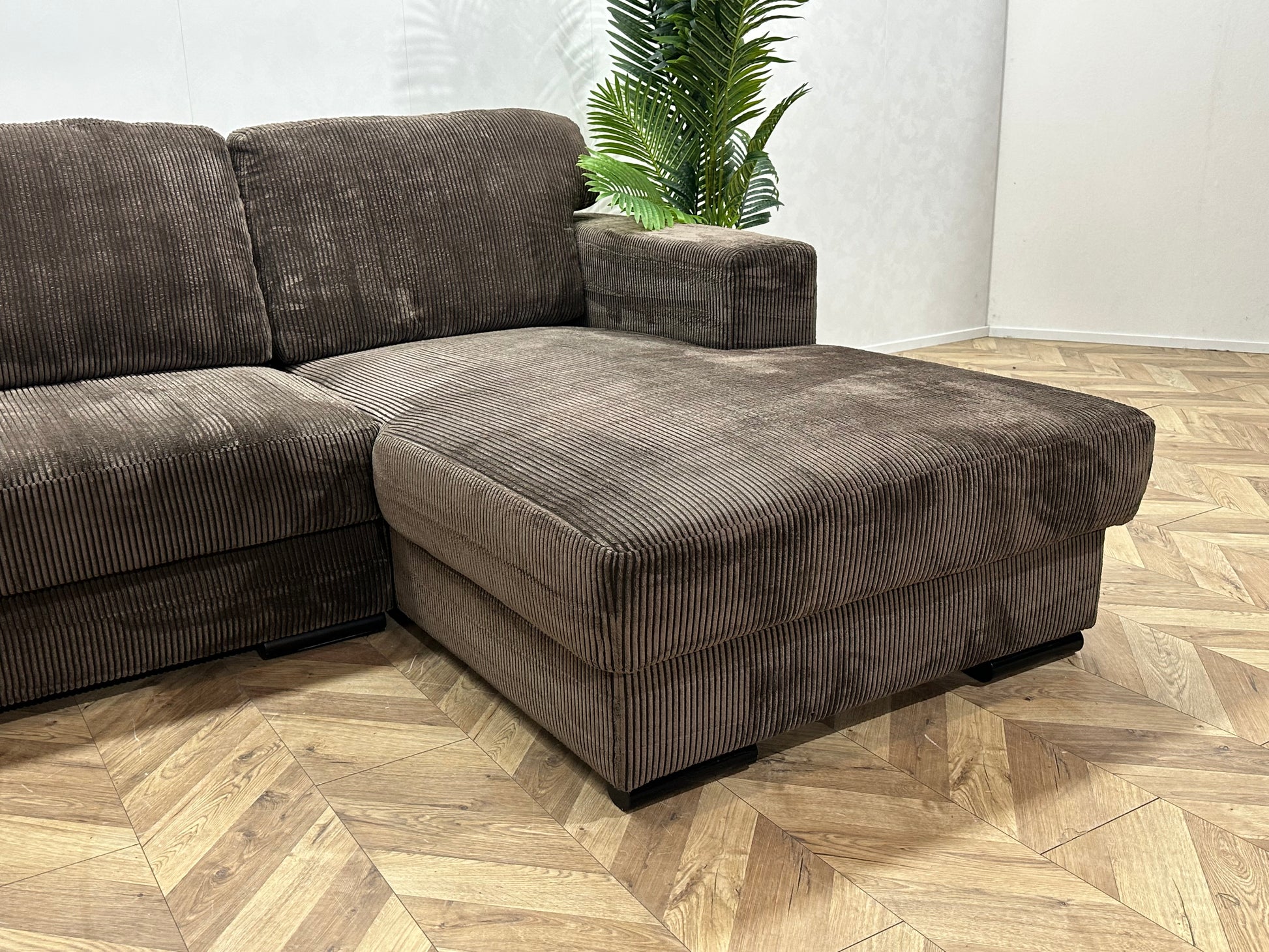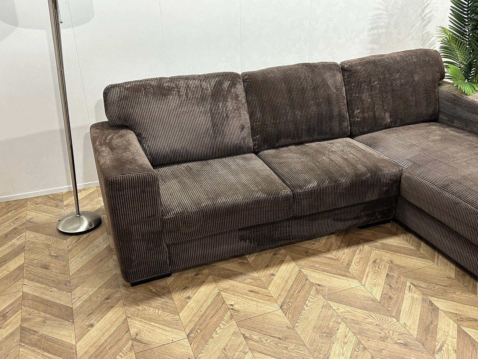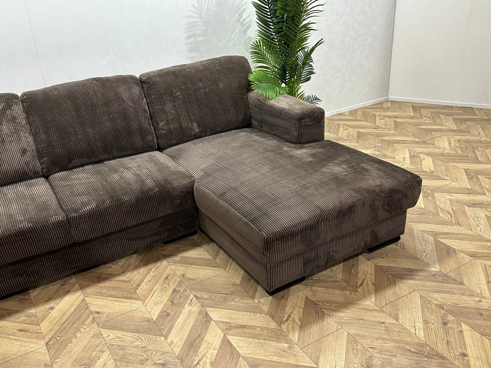 Bruine Ribstof Hoekbank ~ Losse Rugkussens Met Afneembare Hoezen
