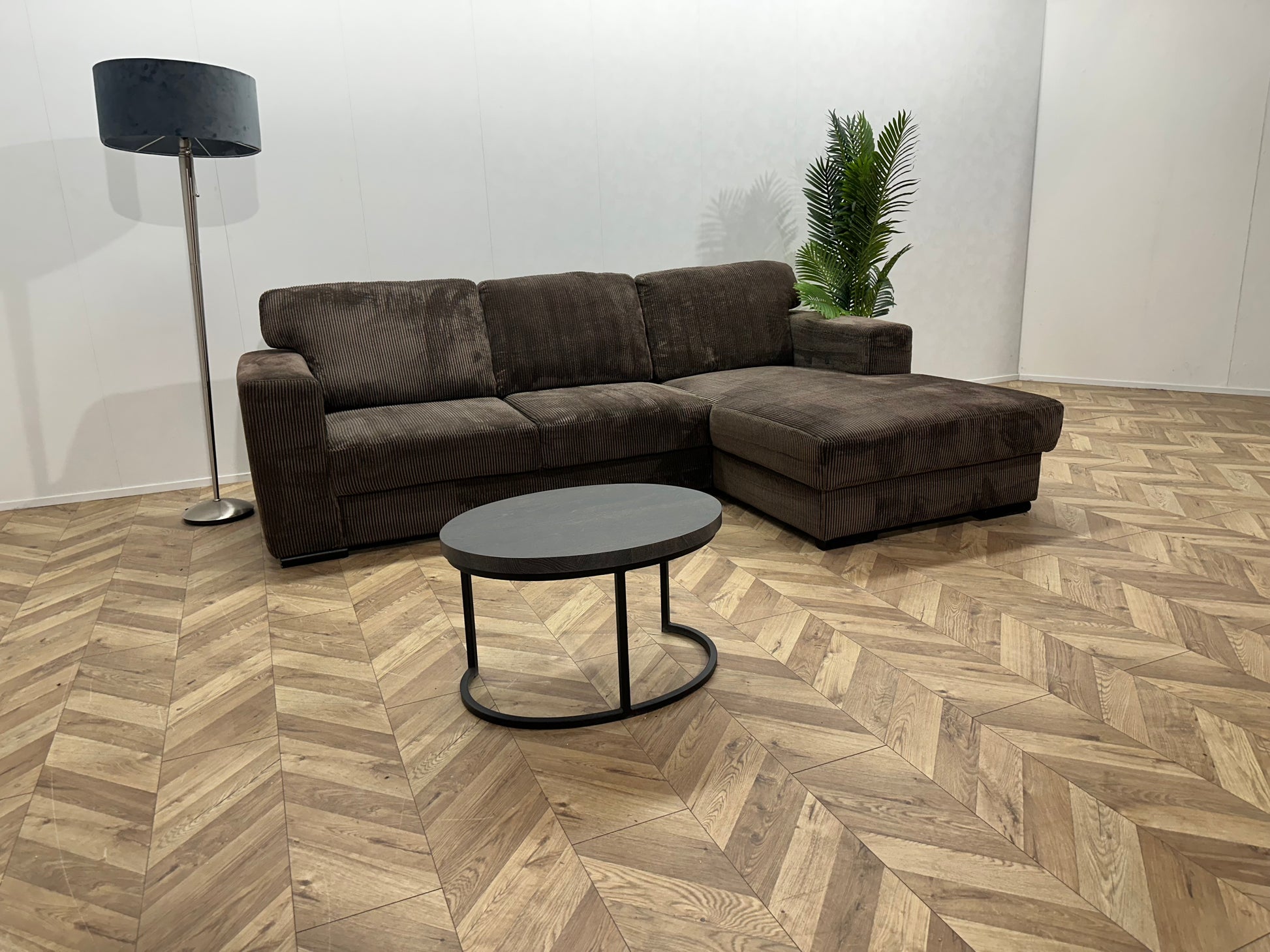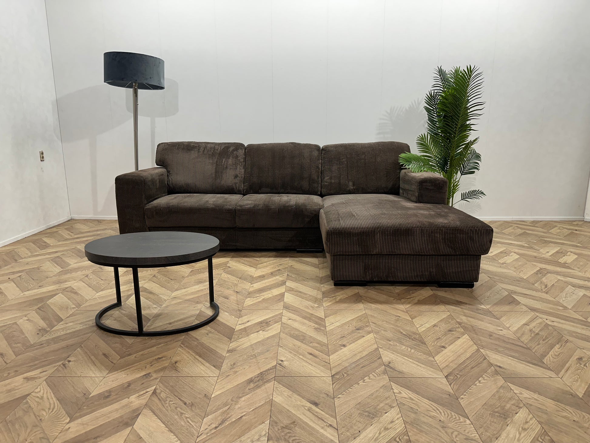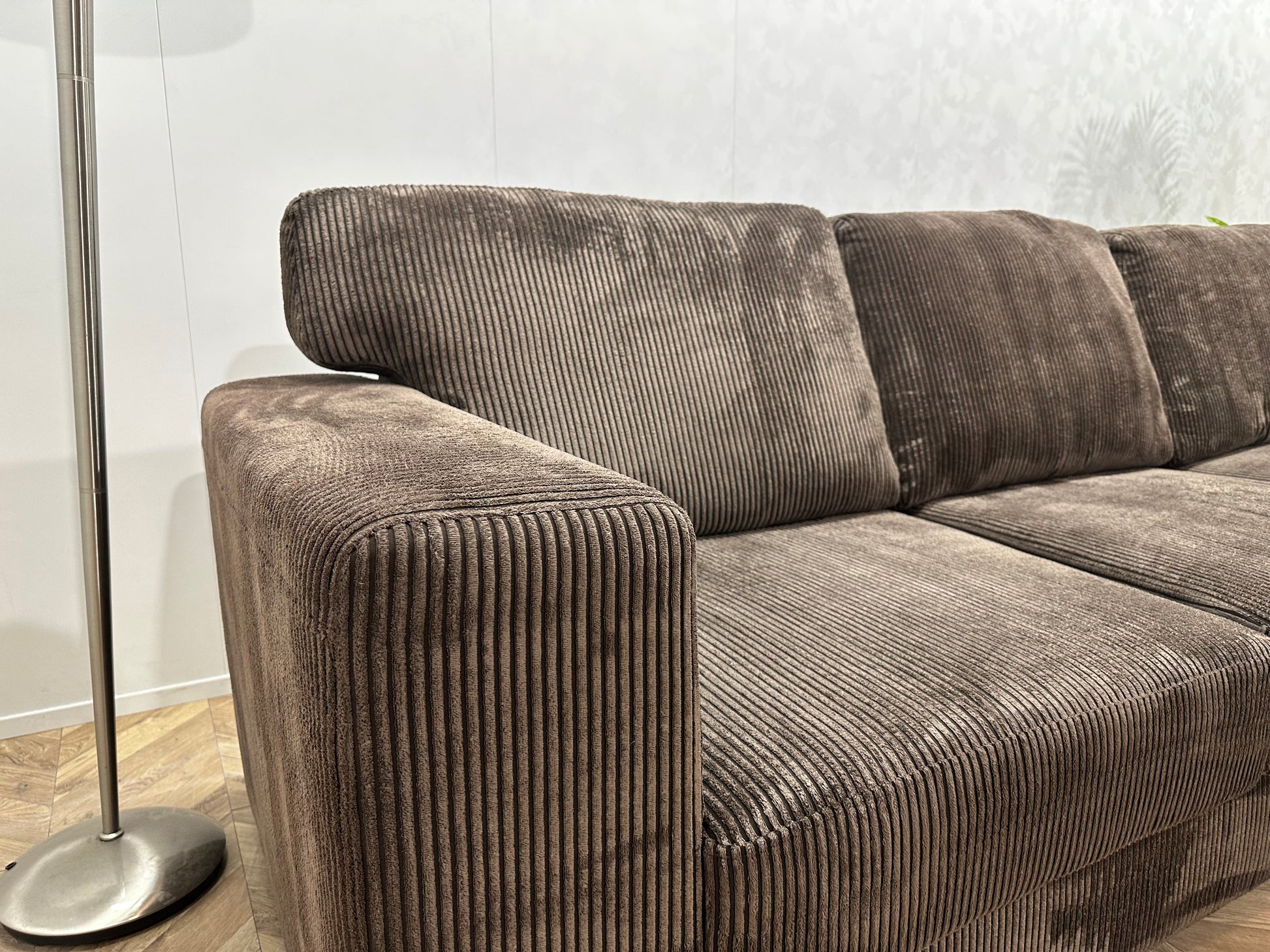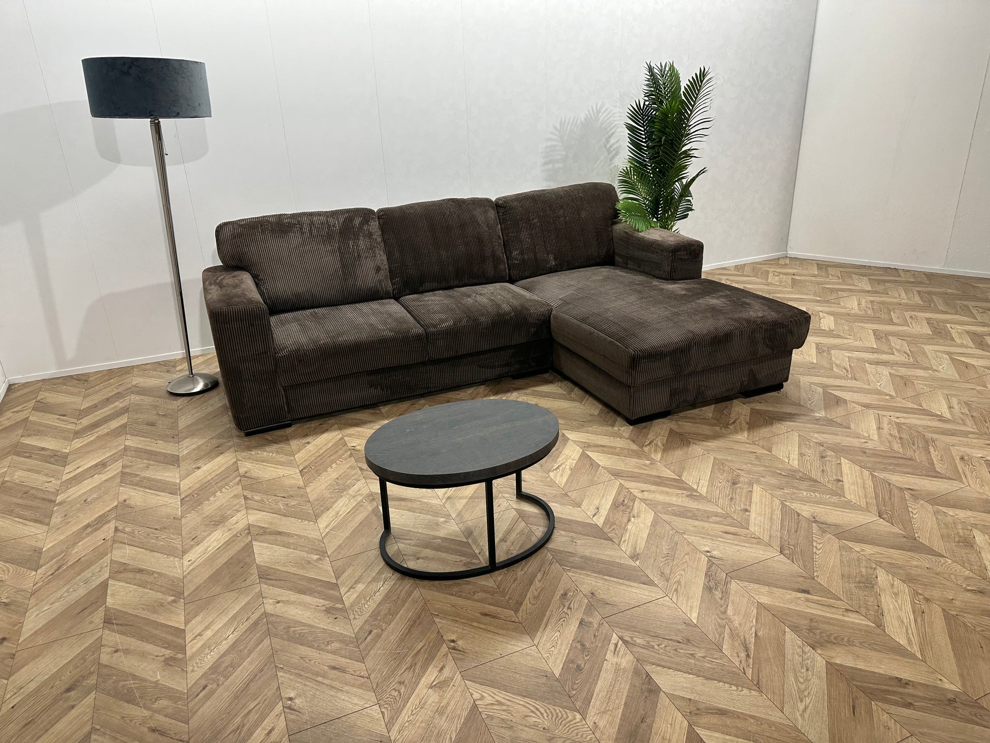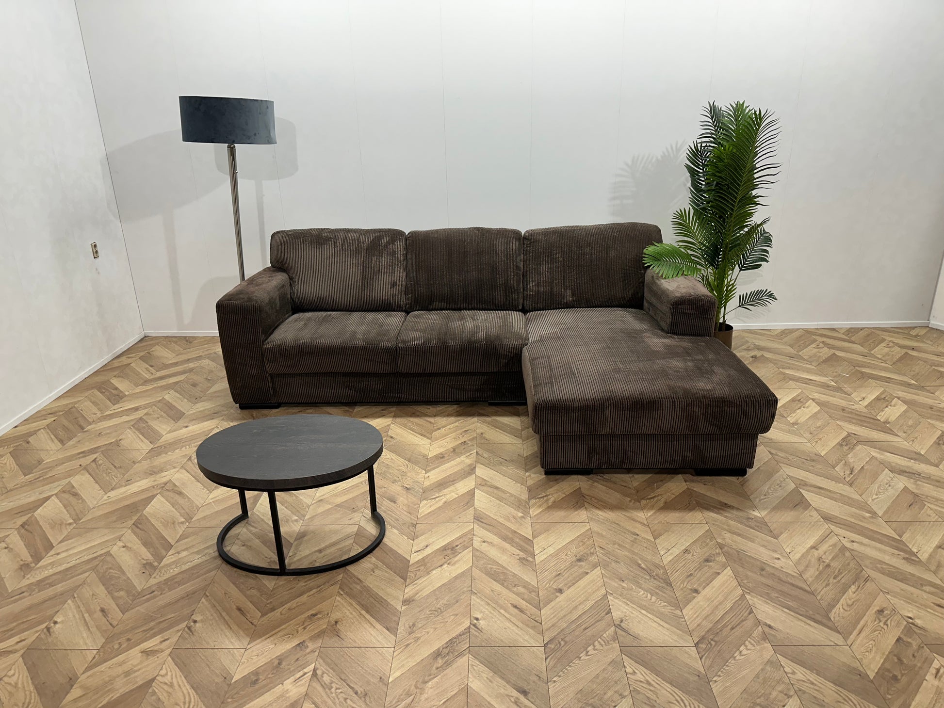 Bruine Ribstof Hoekbank ~ Losse Rugkussens Met Afneembare Hoezen