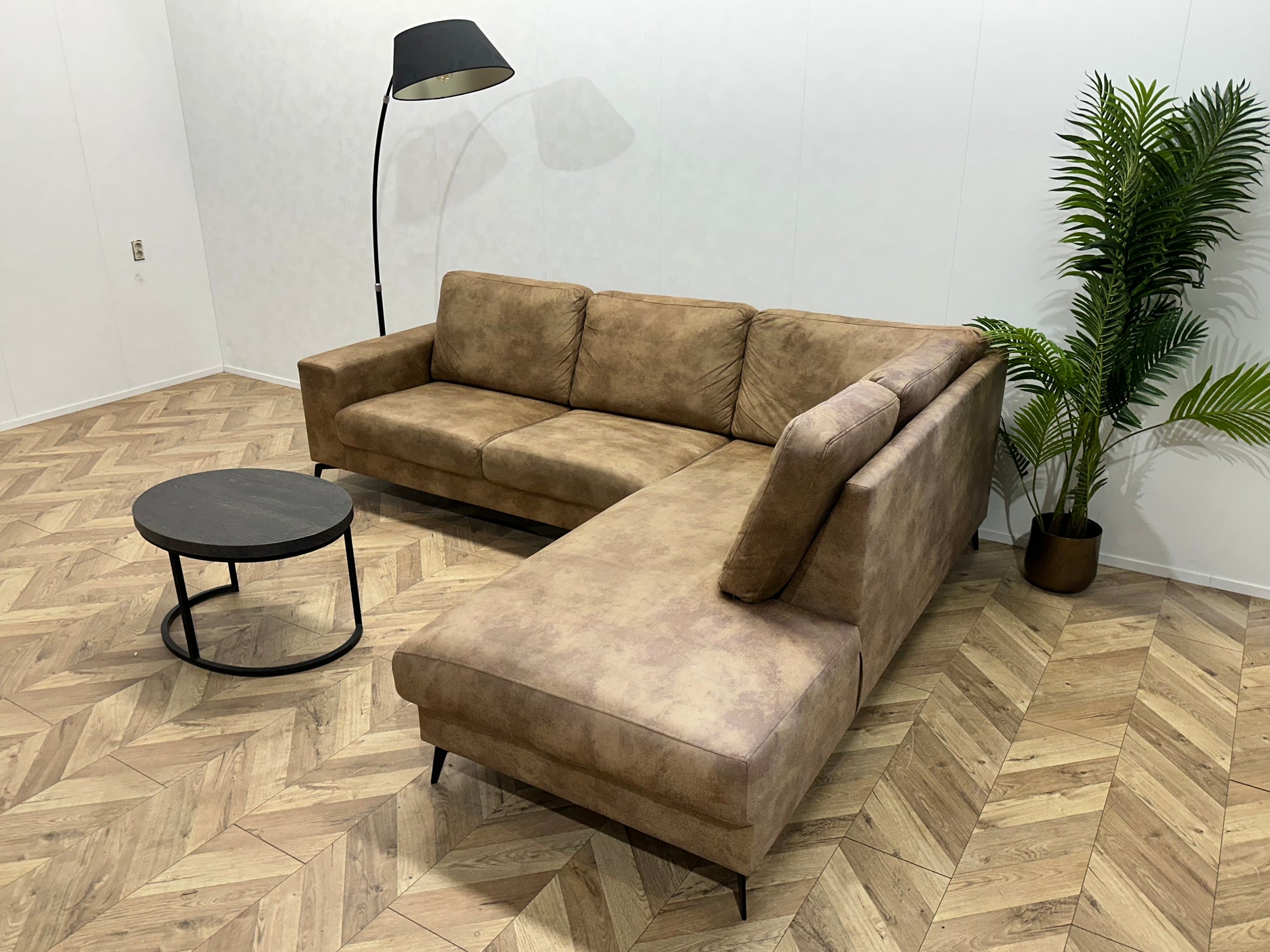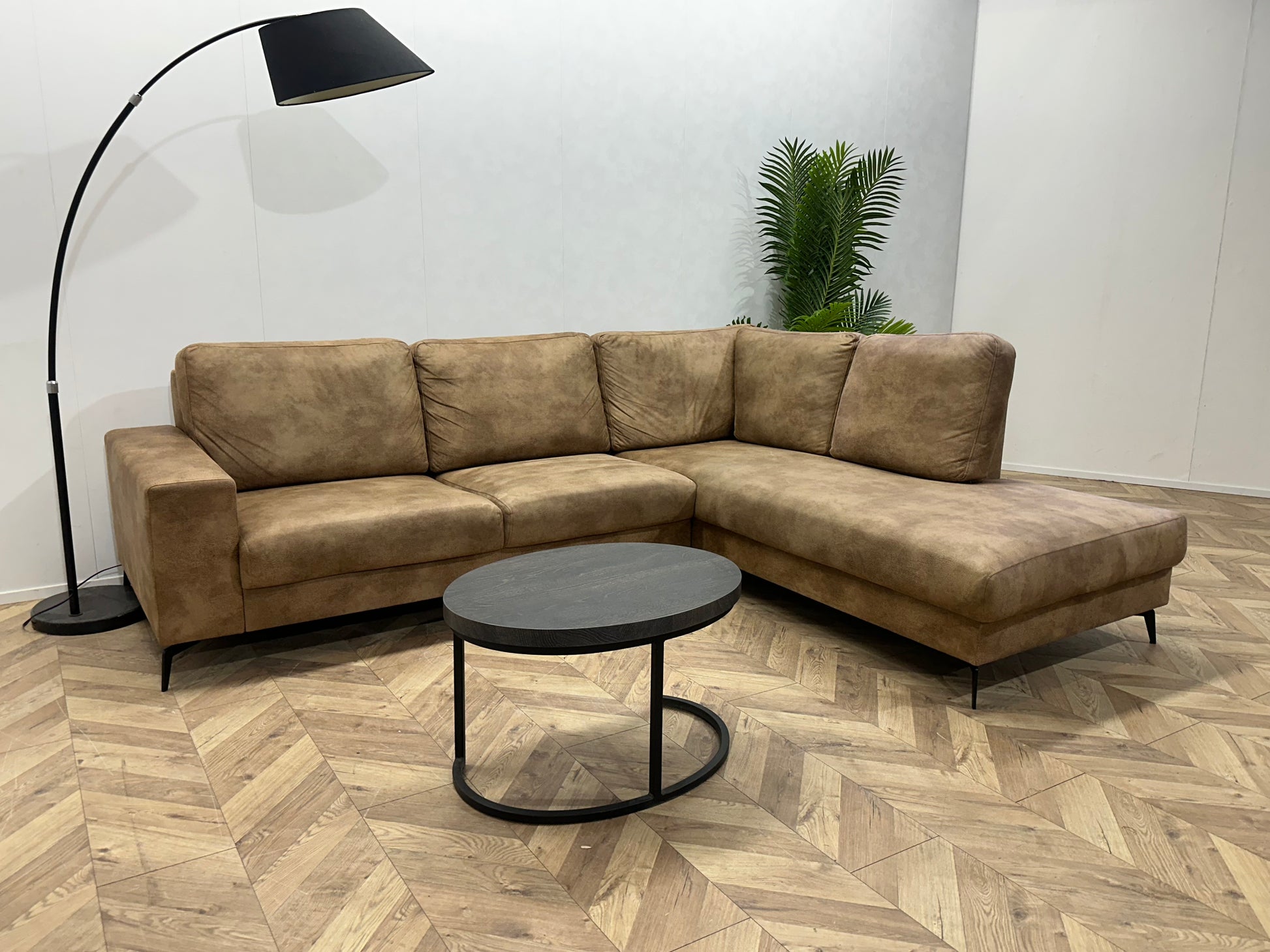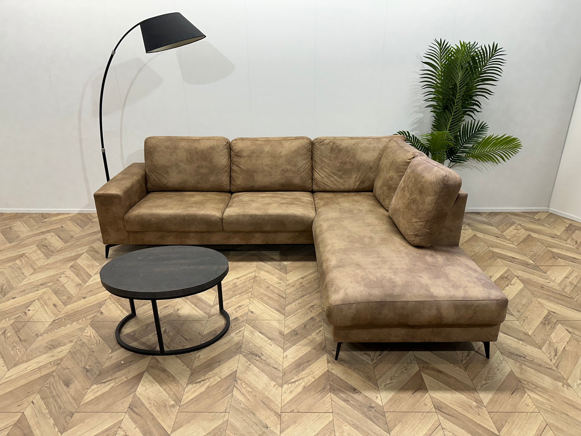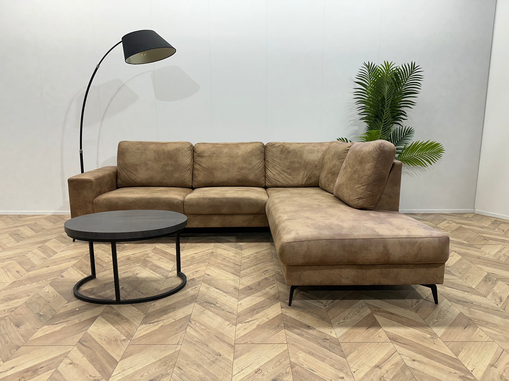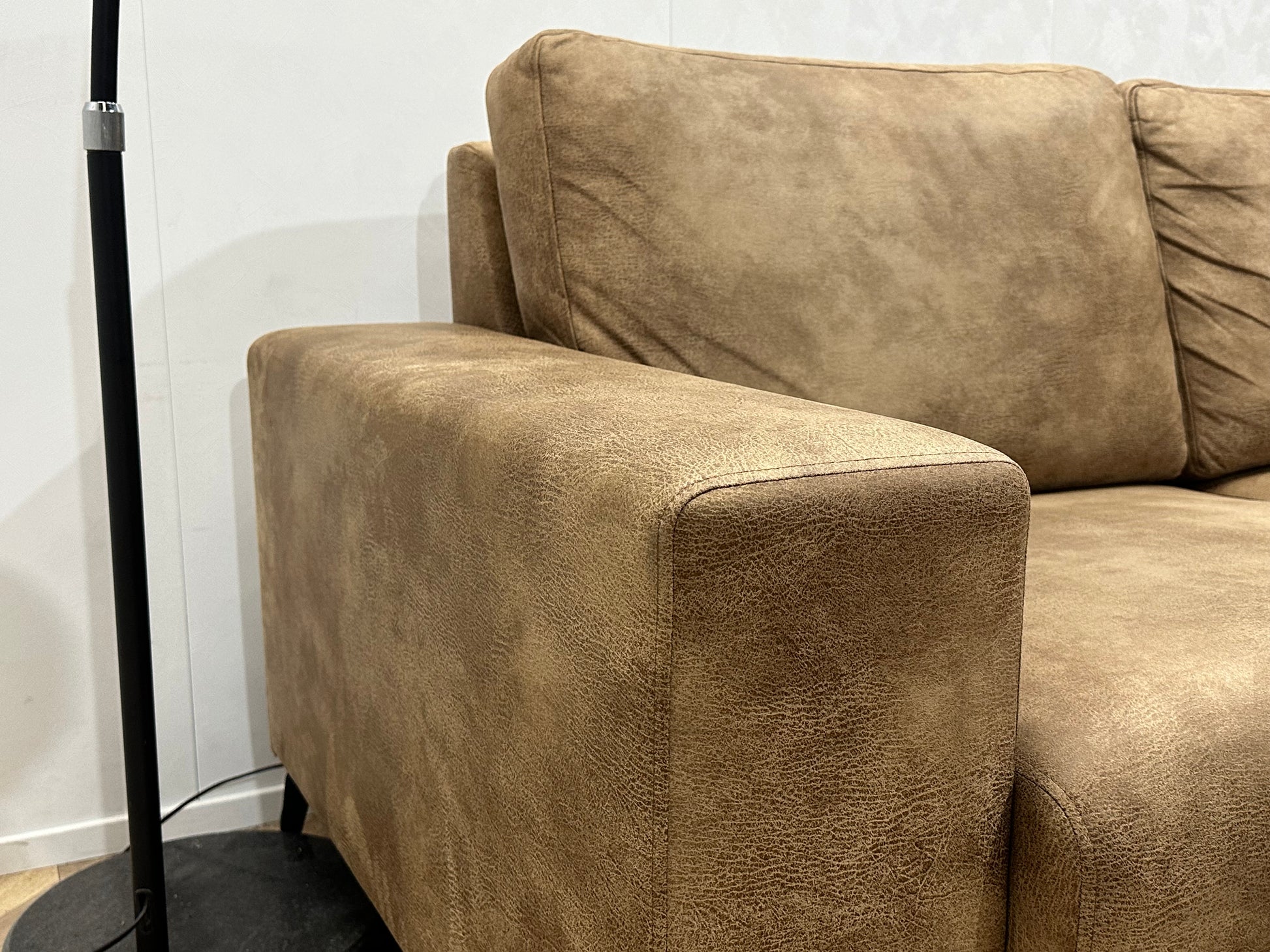 Bruine Suède Lederen Hoekbank ~ Losse Rugkussens Met Afneembare Hoezen