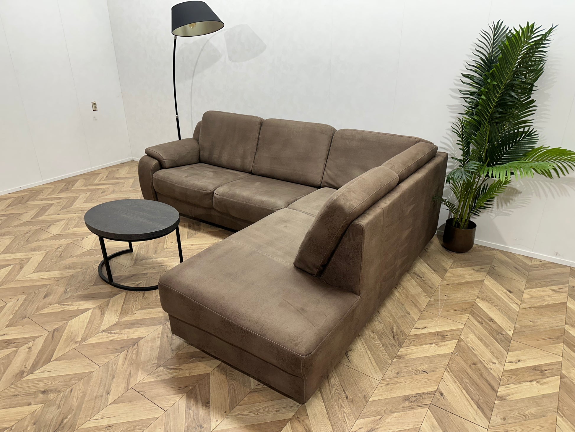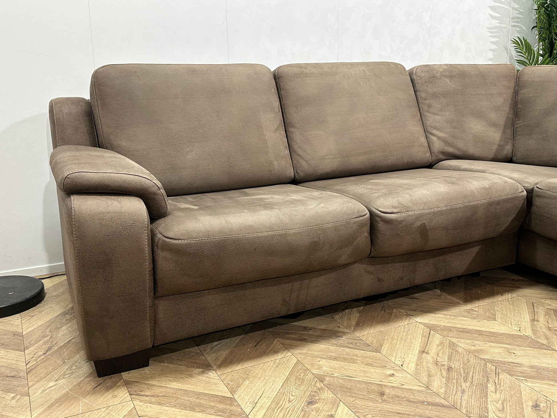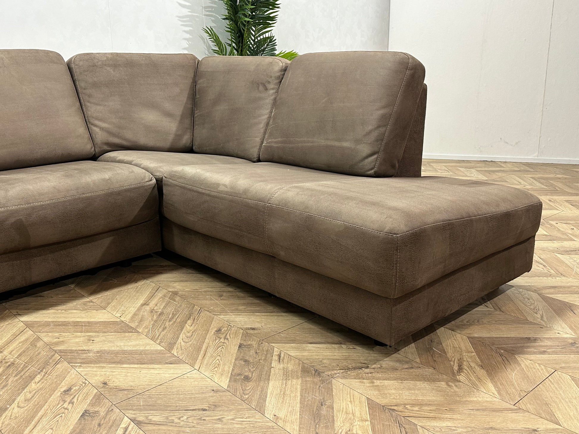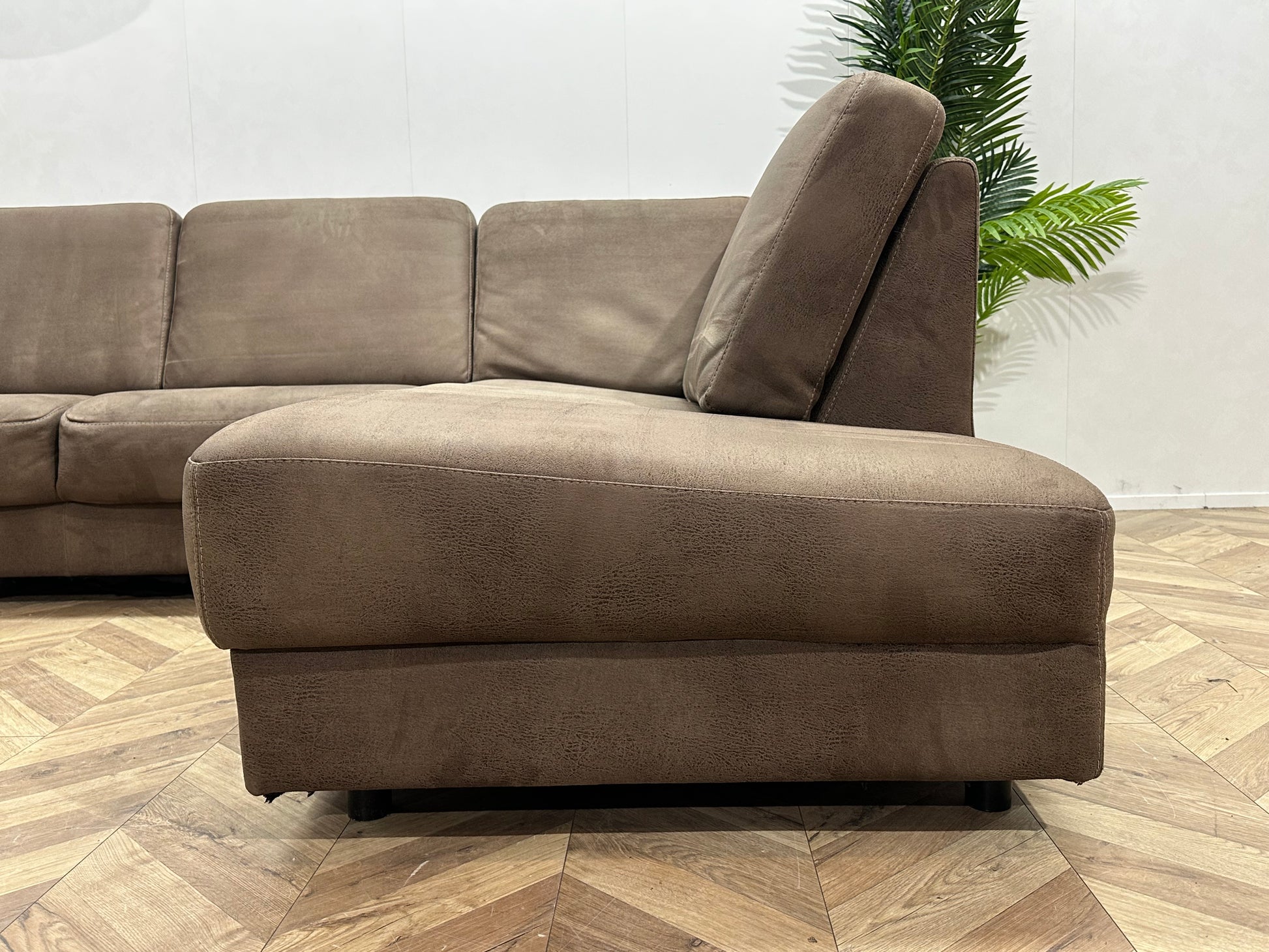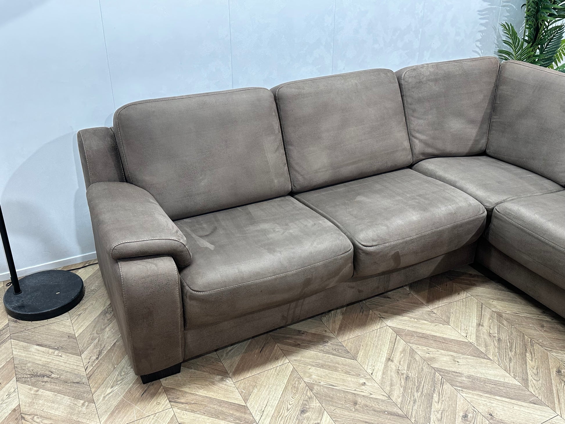 Bruine Suède Lederen Hoekbank ~ Vaste Kussens