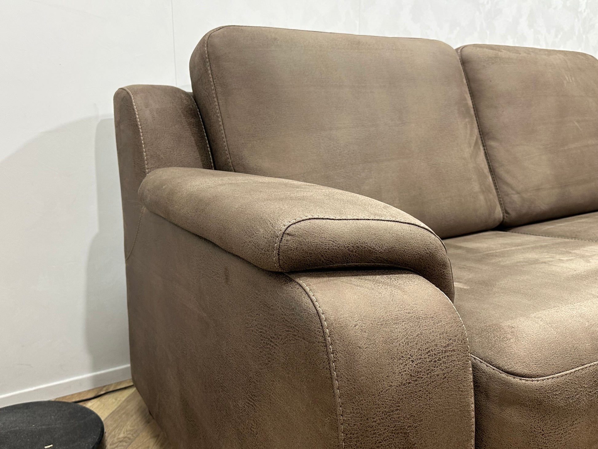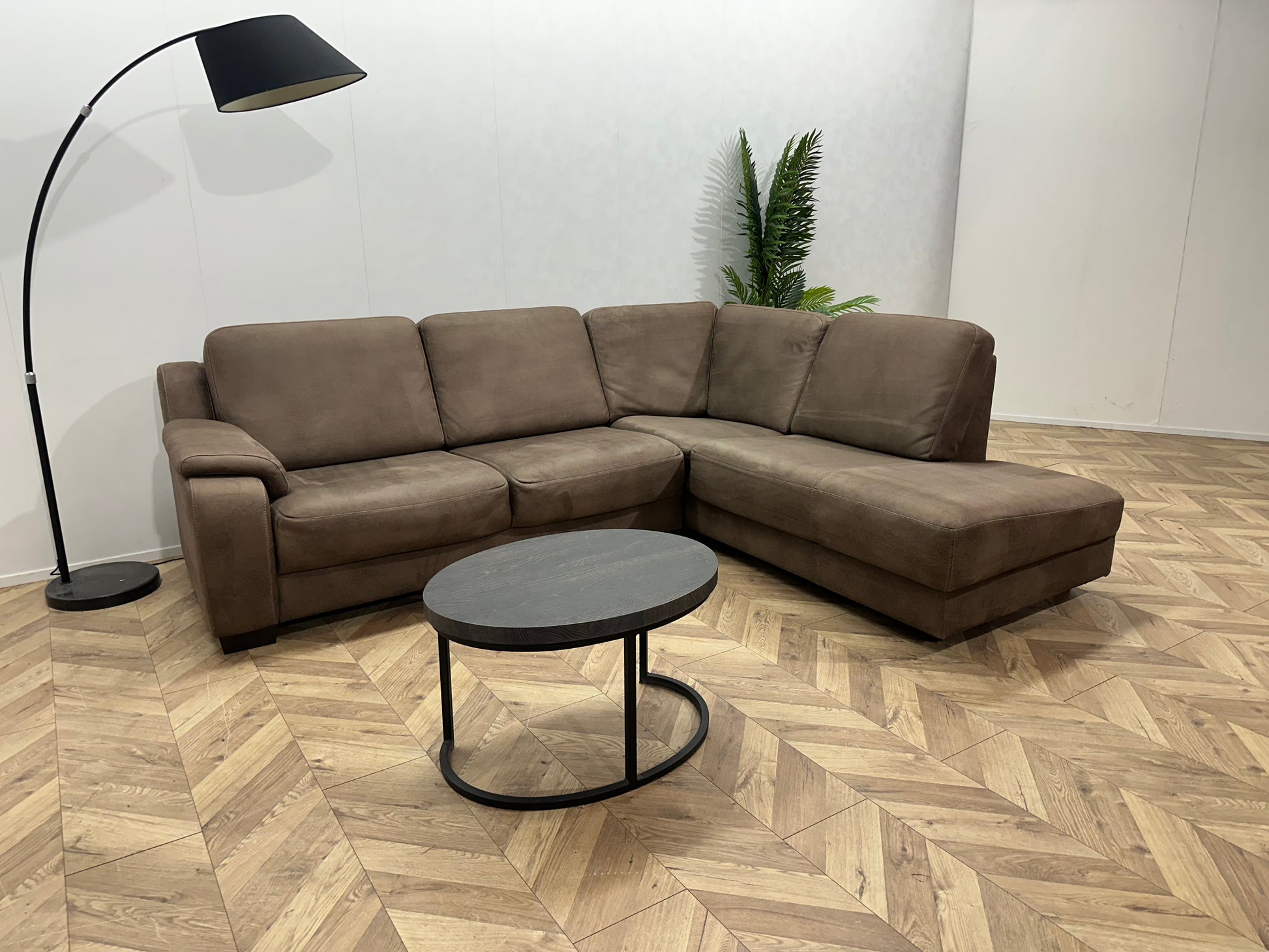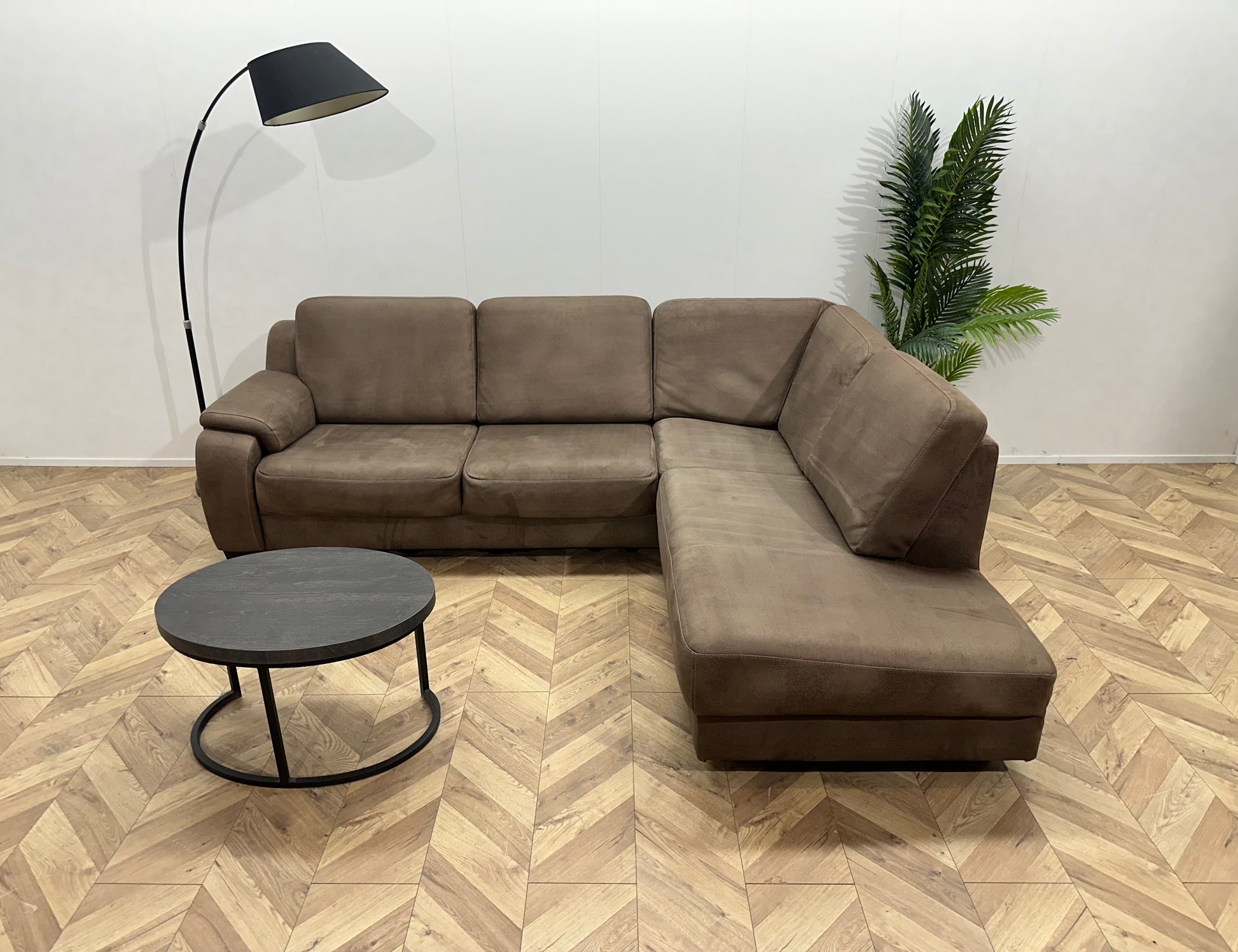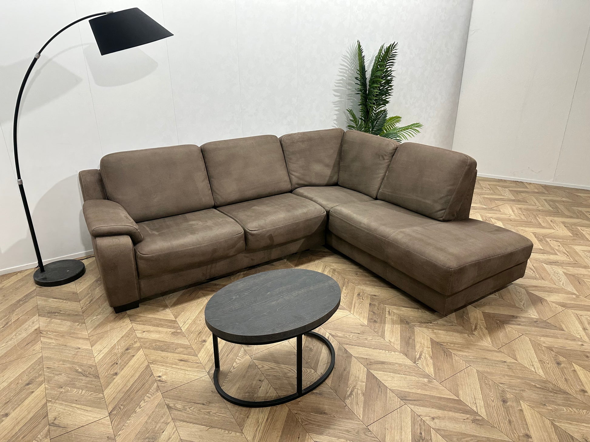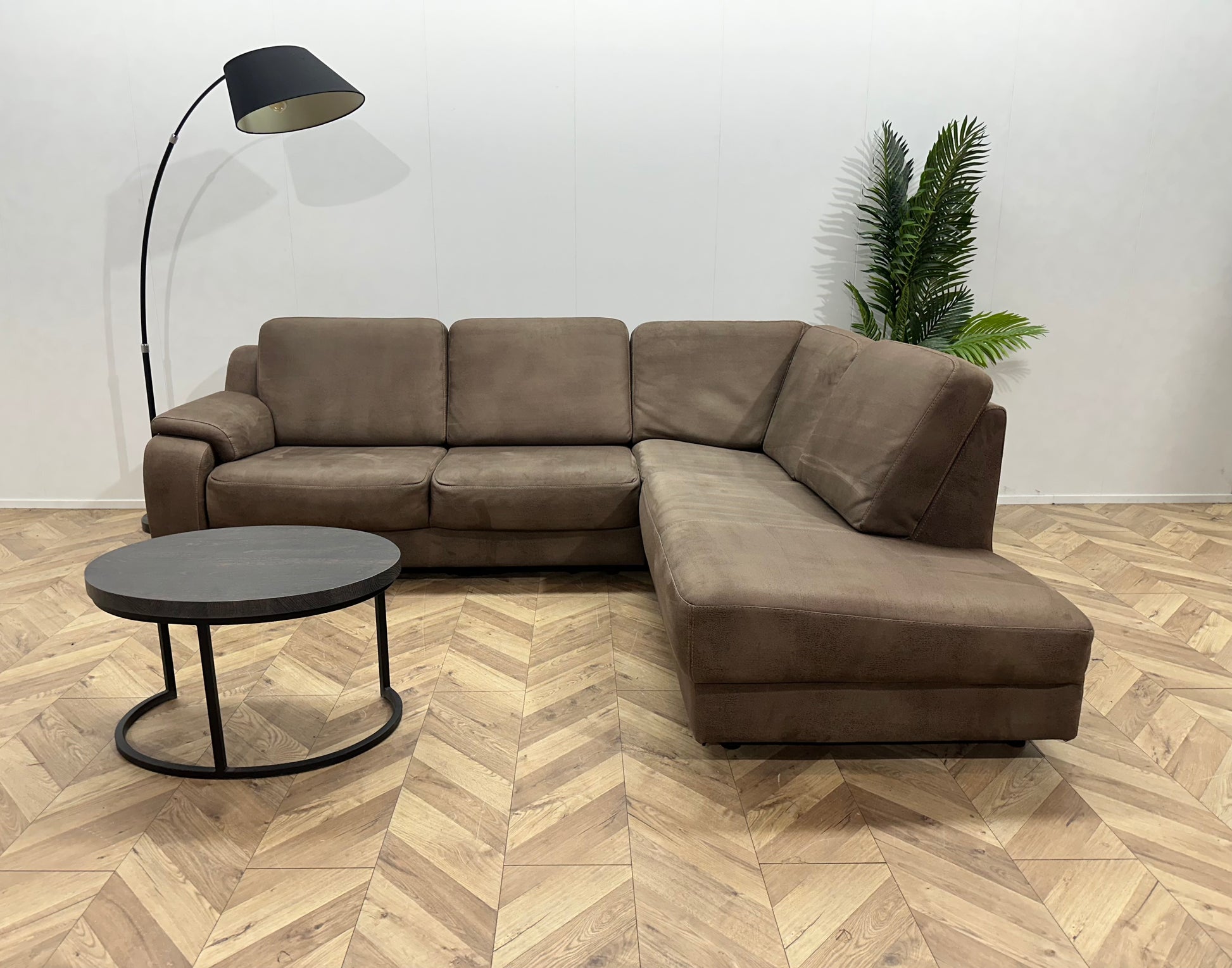 Bruine Suède Lederen Hoekbank ~ Vaste Kussens