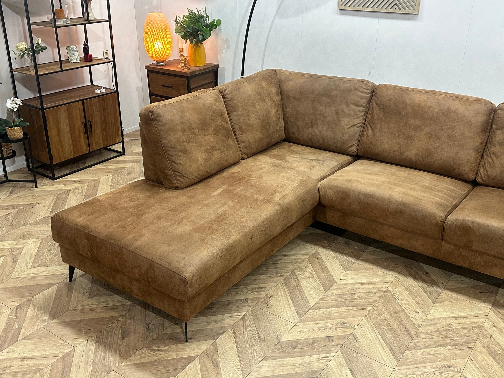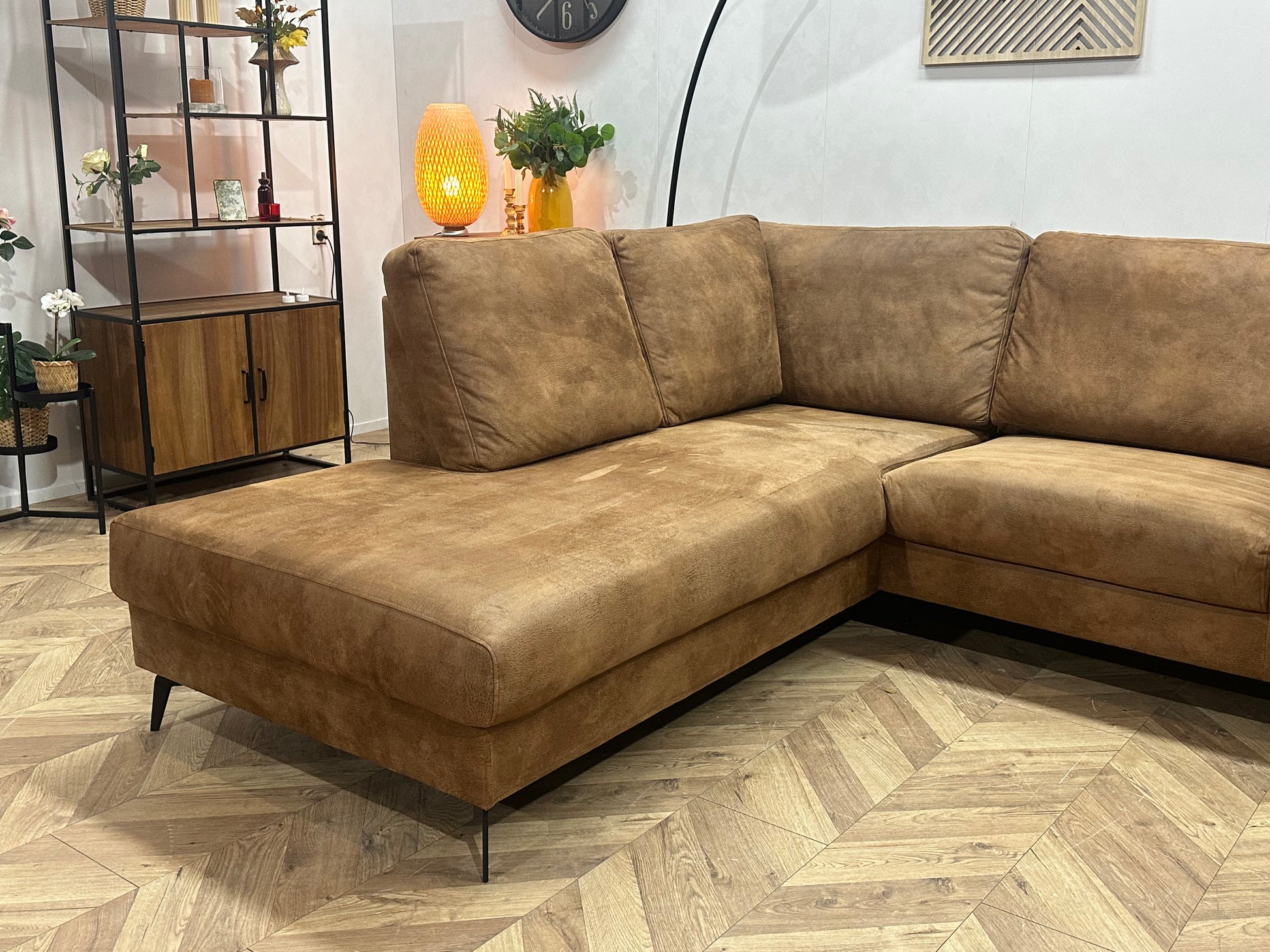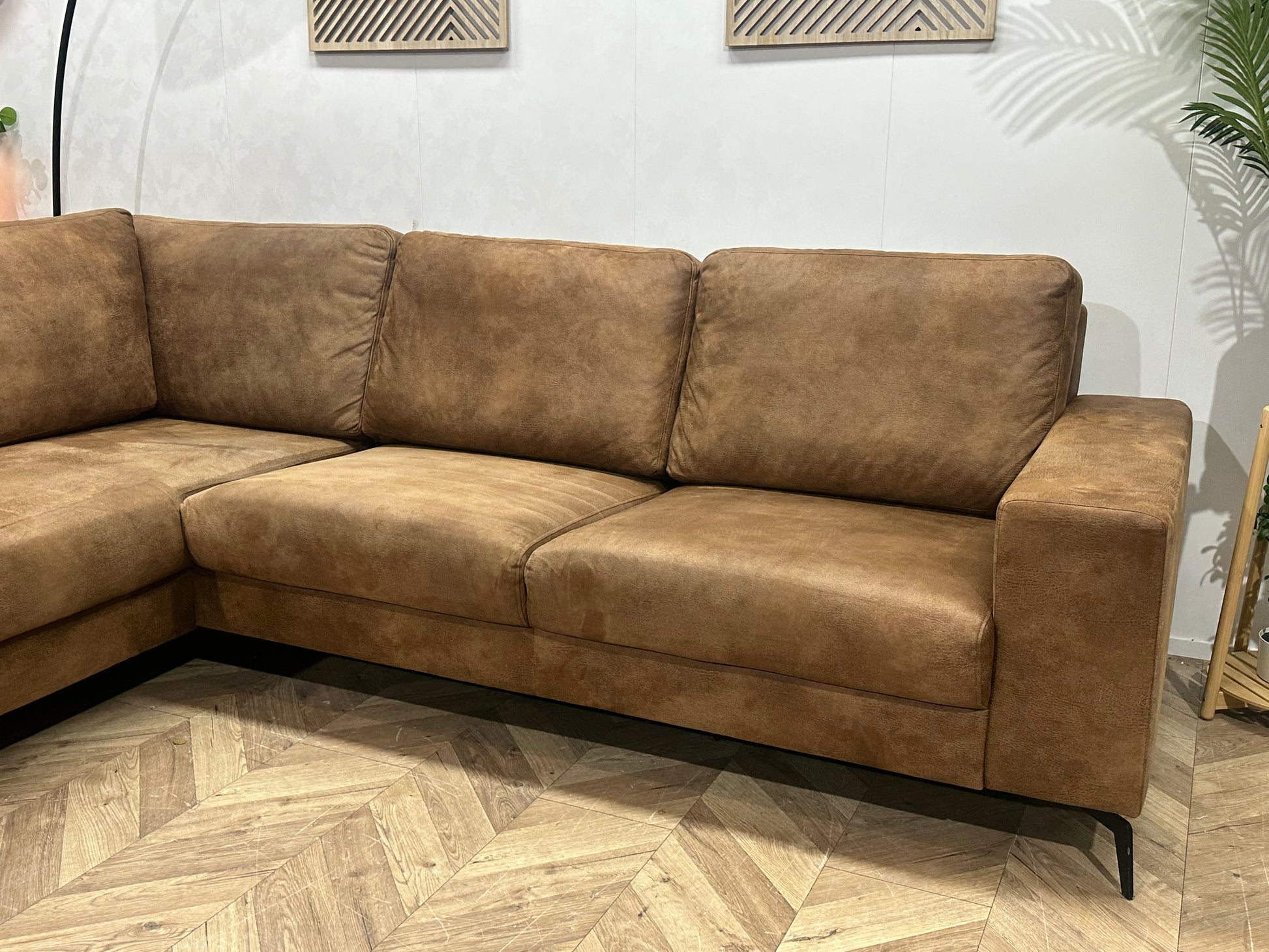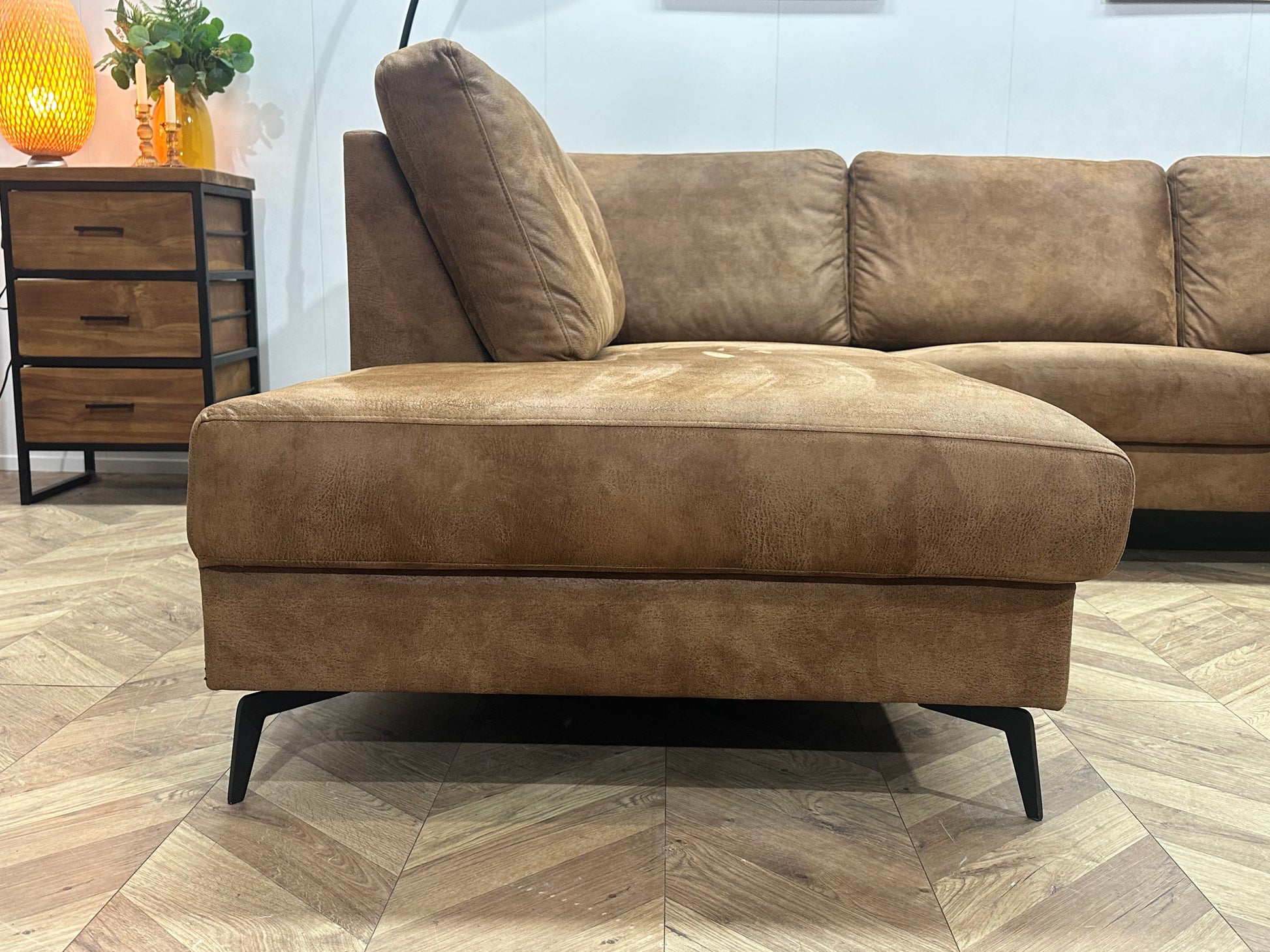 Bruine Suède Stoffen Hoekbank ~ Nieuwstaat