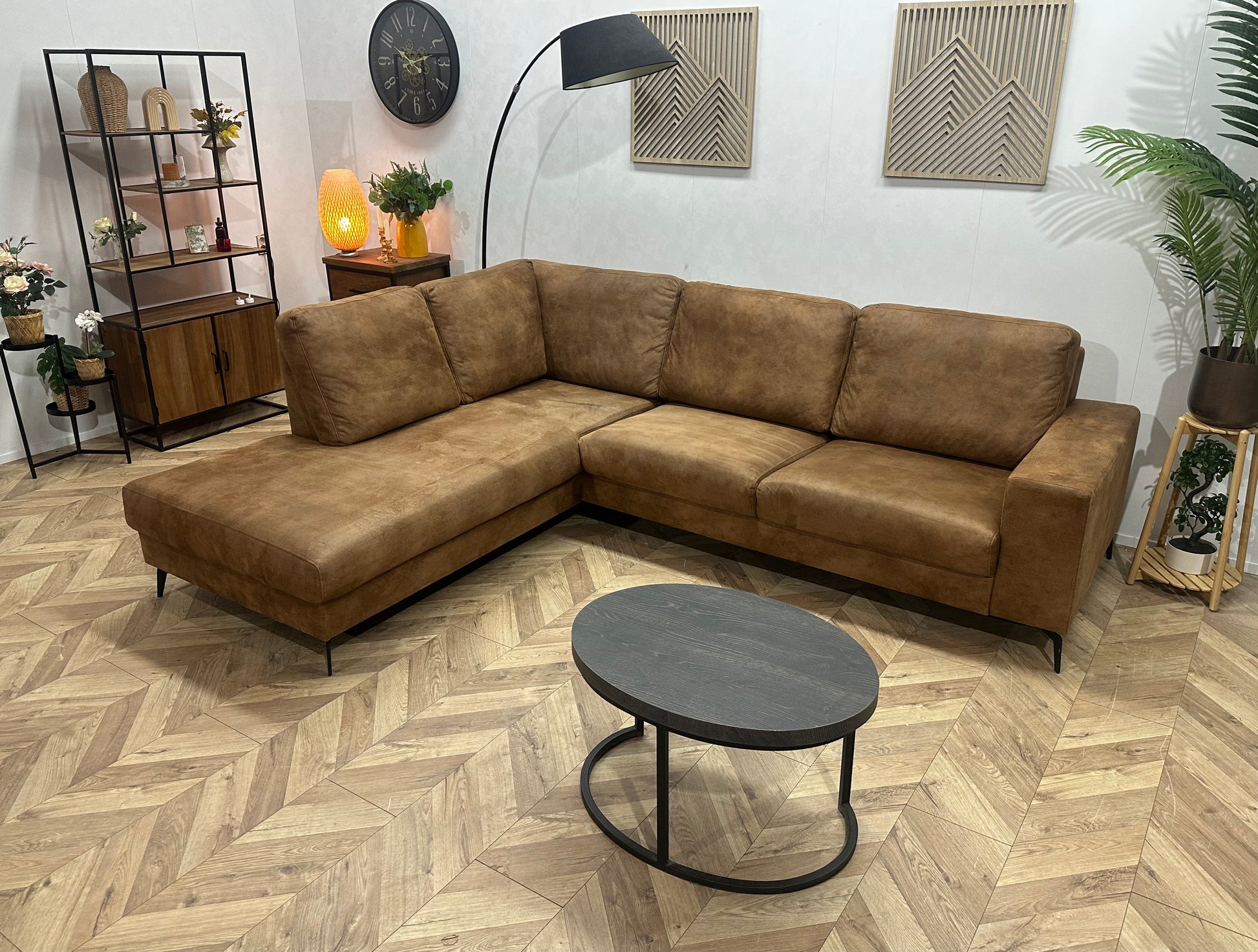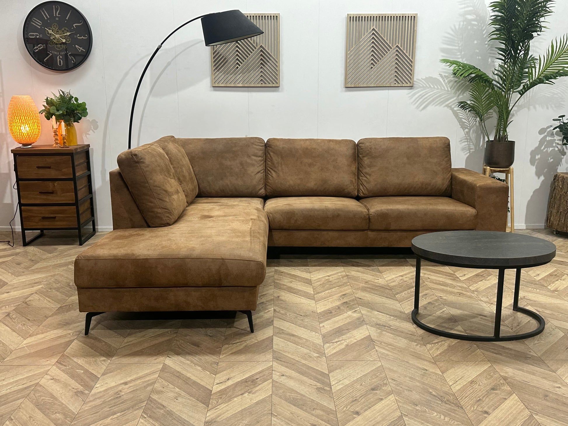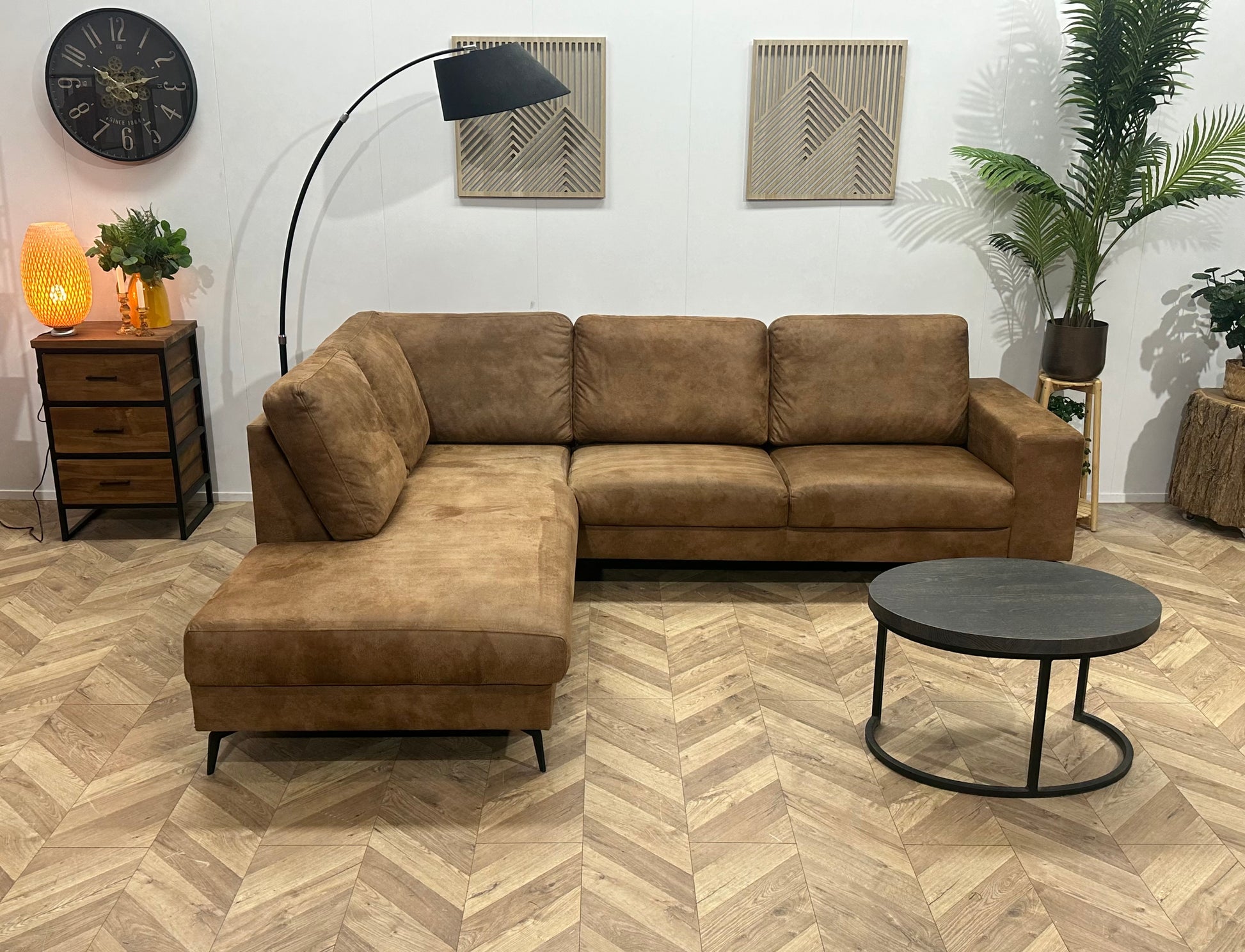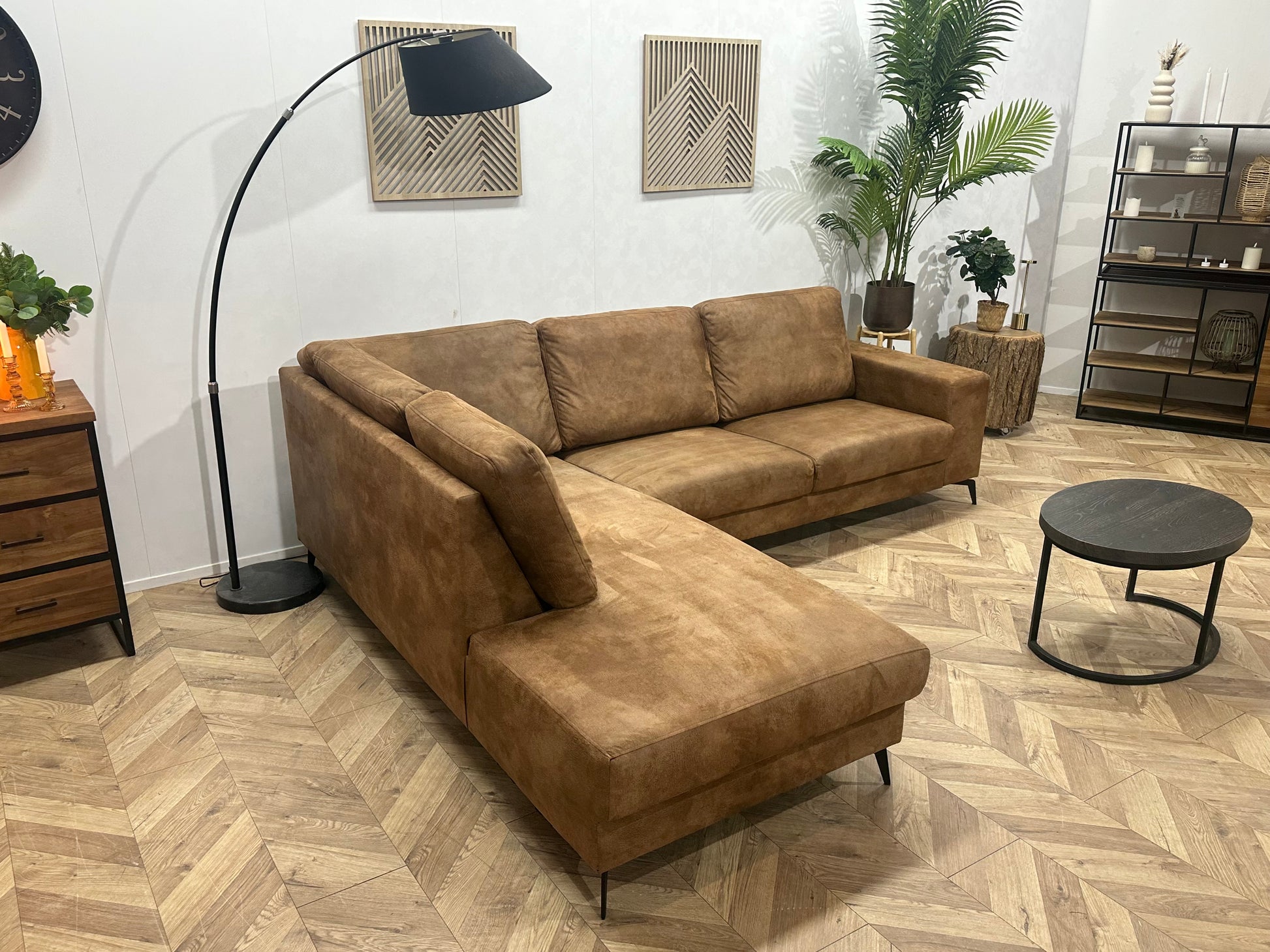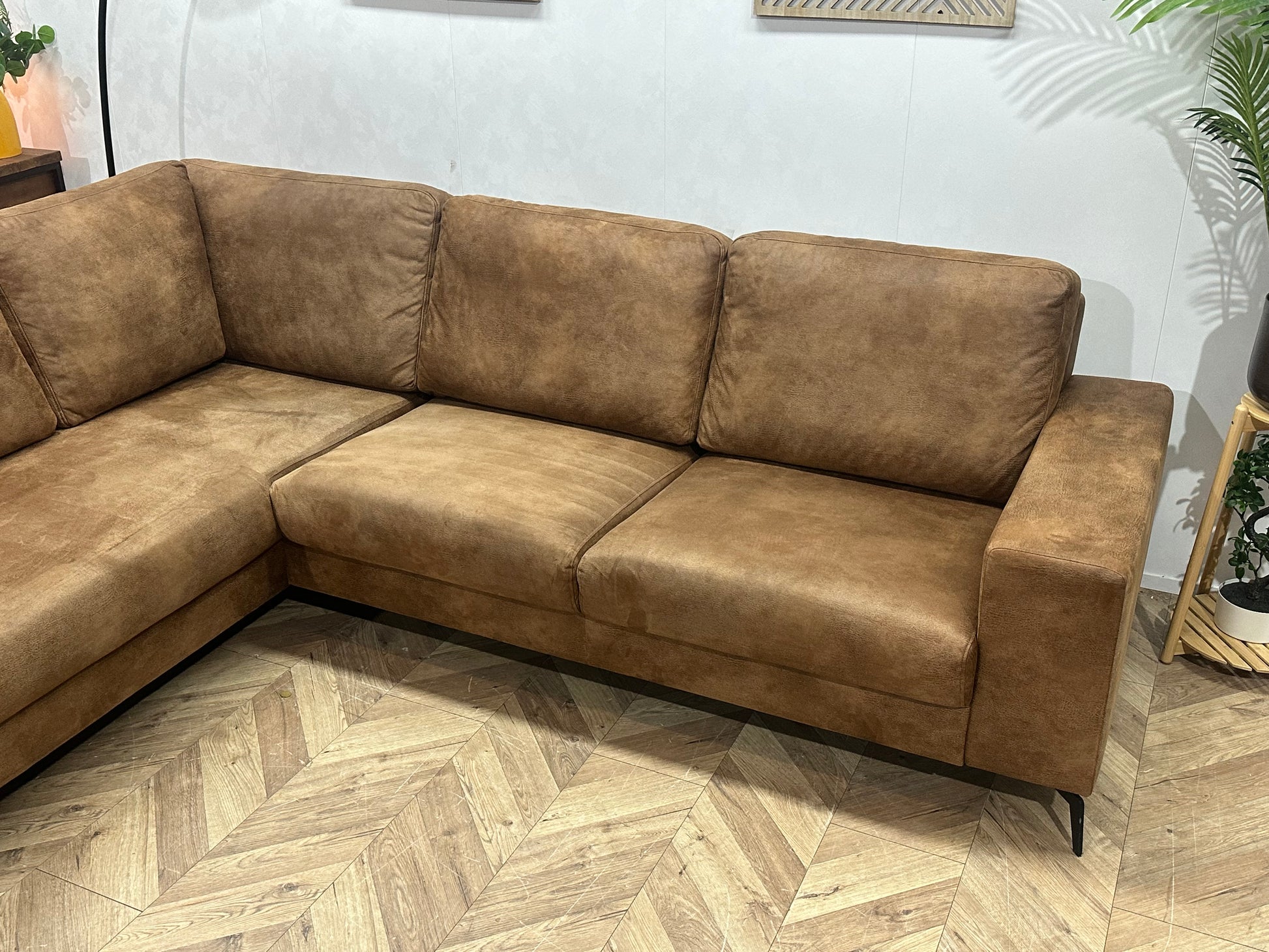 Bruine Suède Stoffen Hoekbank ~ Nieuwstaat